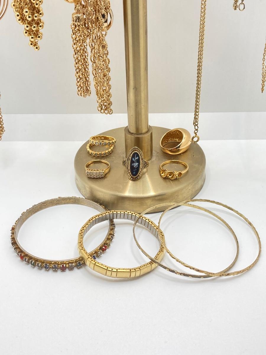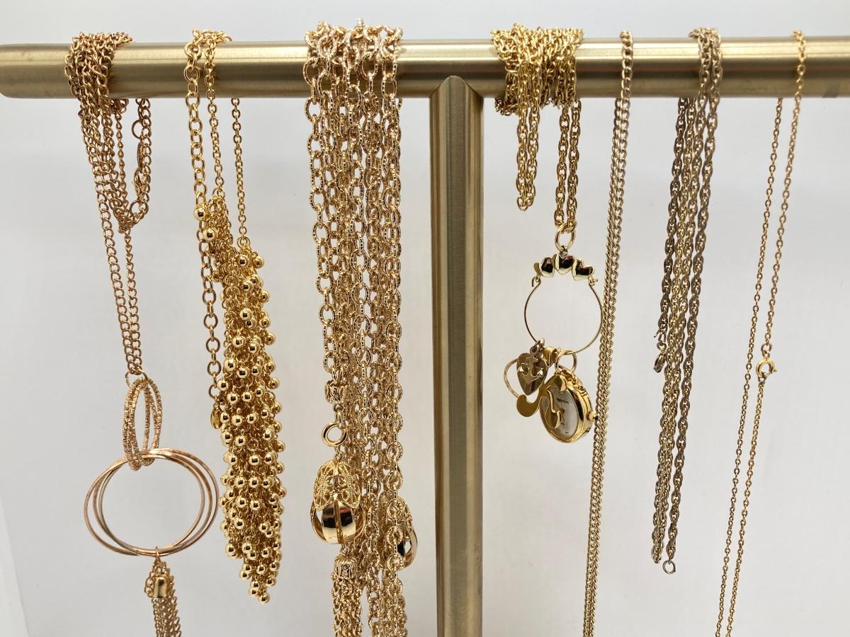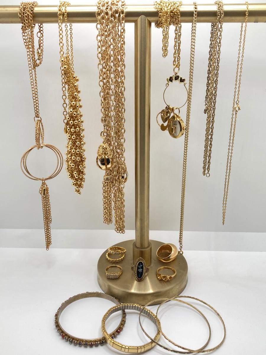 LOT 215: Large Collection of Gold Tone Jewelry - Necklaces and Rings