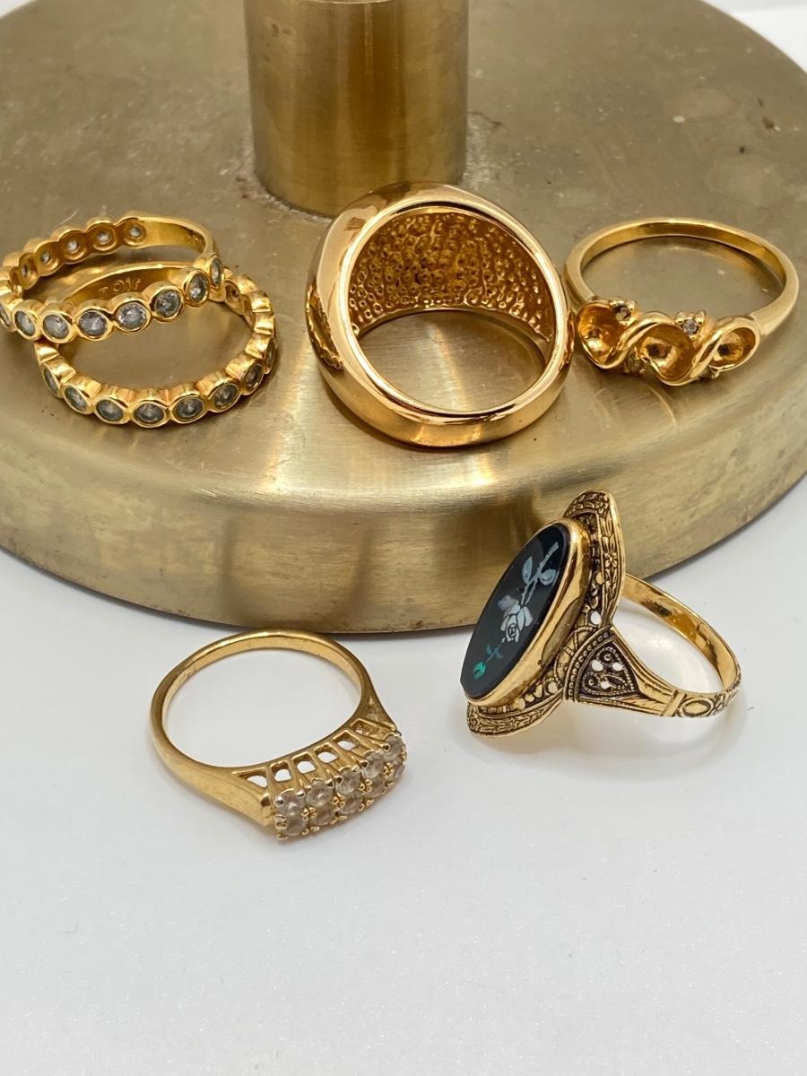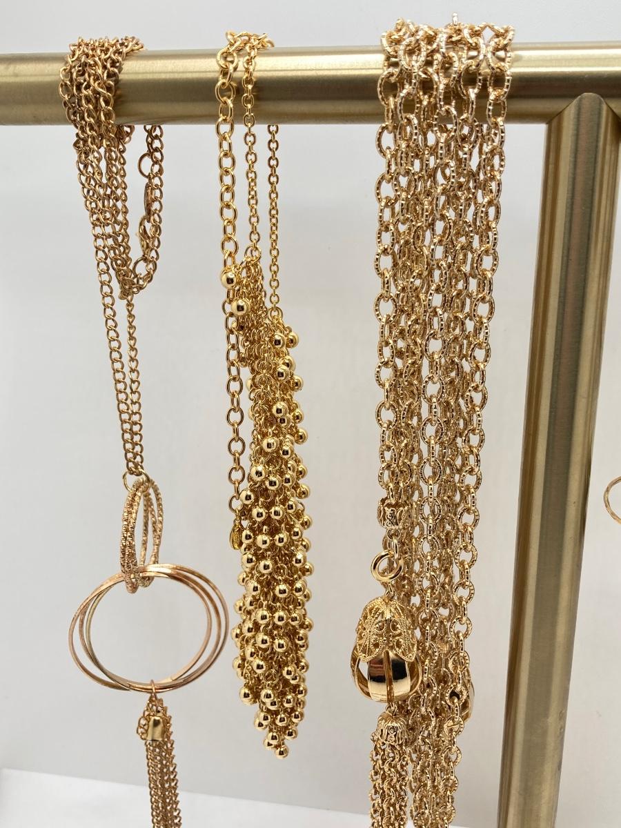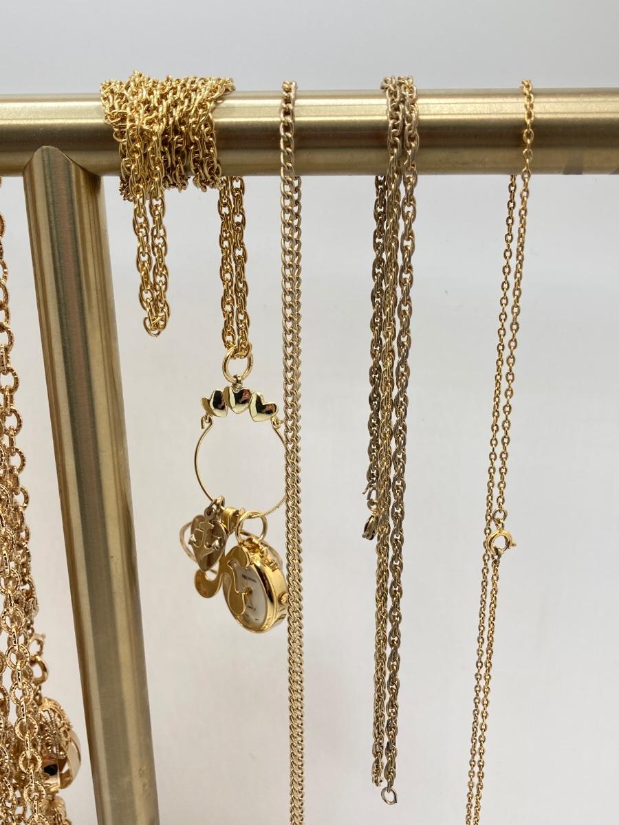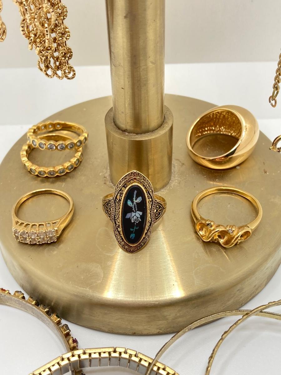 LOT 215: Large Collection of Gold Tone Jewelry - Necklaces and Rings