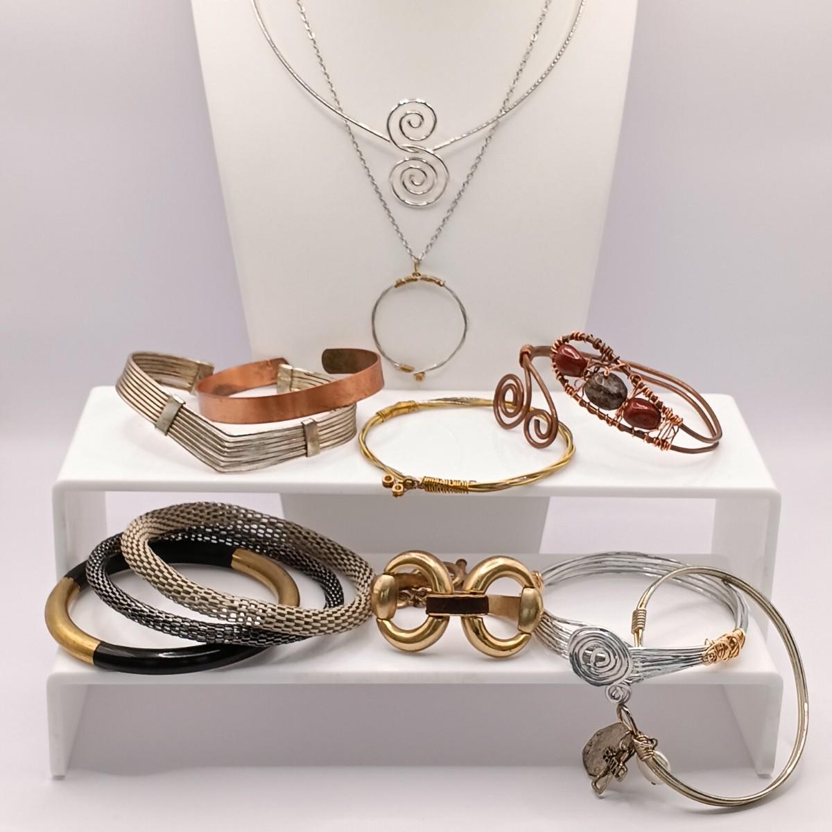LOT 221: Wire Wrapped Necklaces and Bracelets w/ Mesh Bangles & More