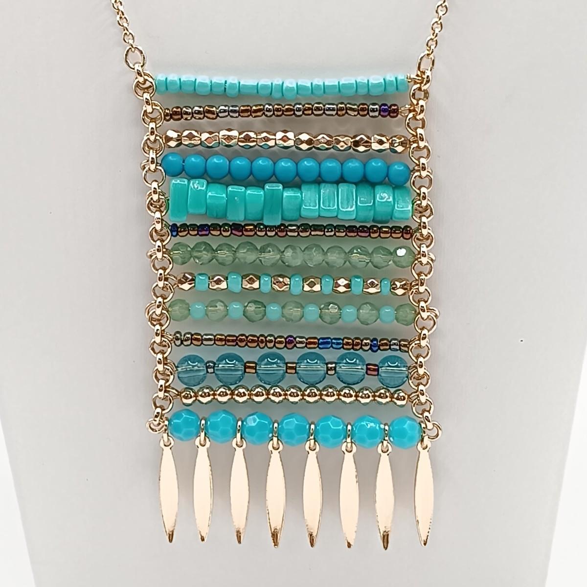 LOT 229: Stacked Turquoise Style Bead Necklace, Metal Mesh Necklace, Goldtone Earrings & More