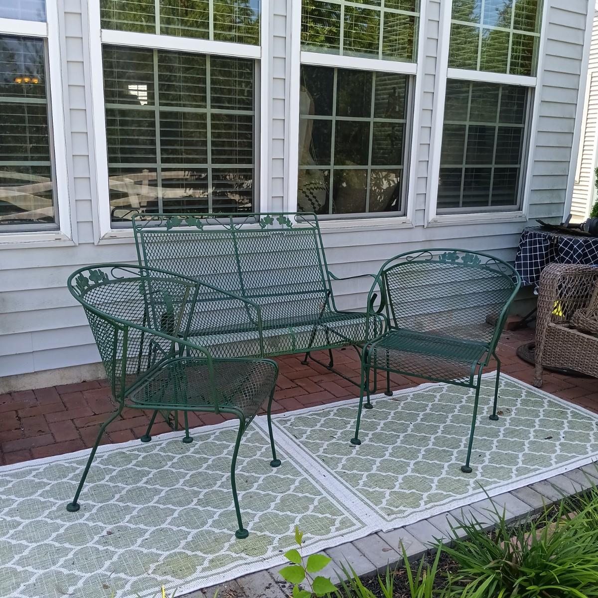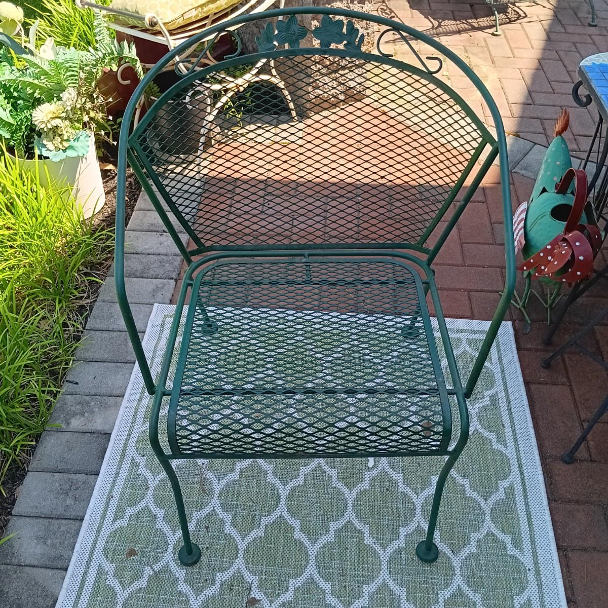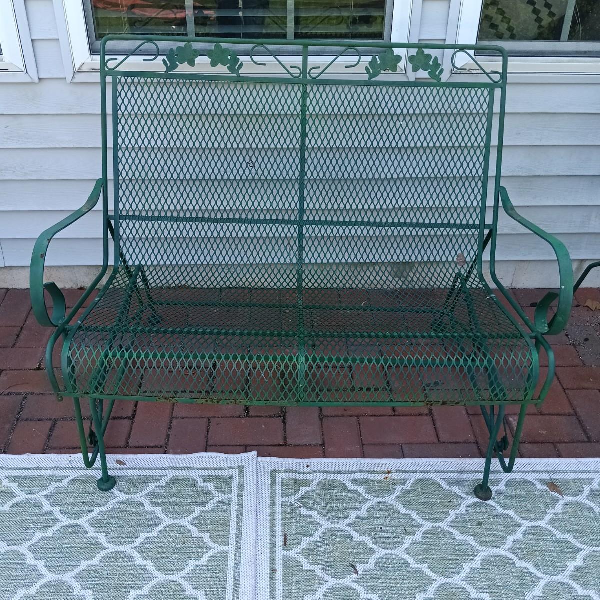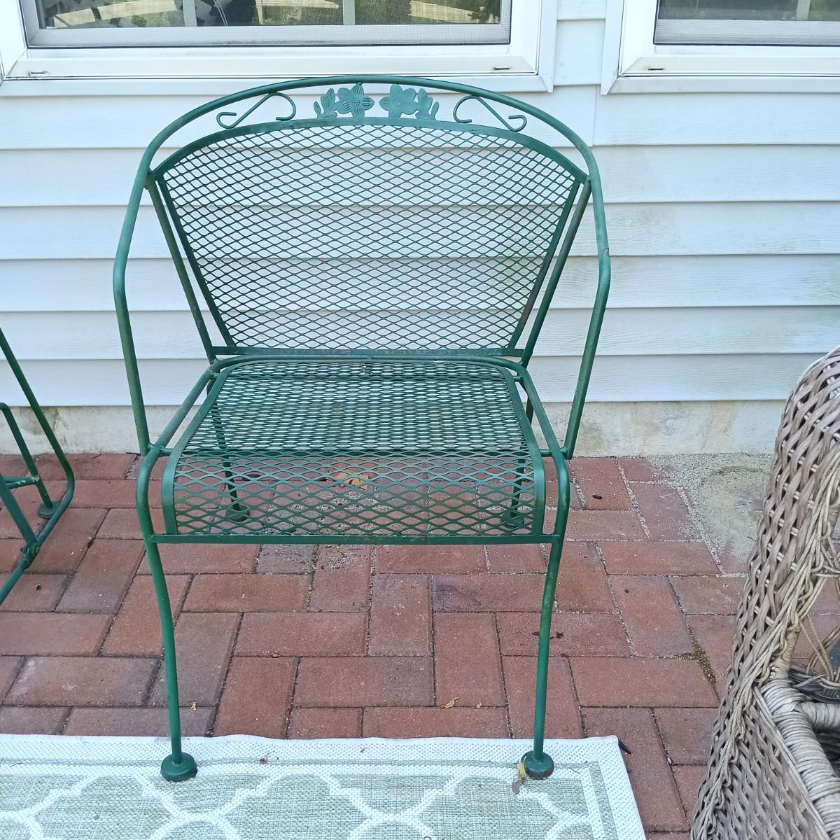 LOT 234: Green Wrought Iron Chairs with Glider