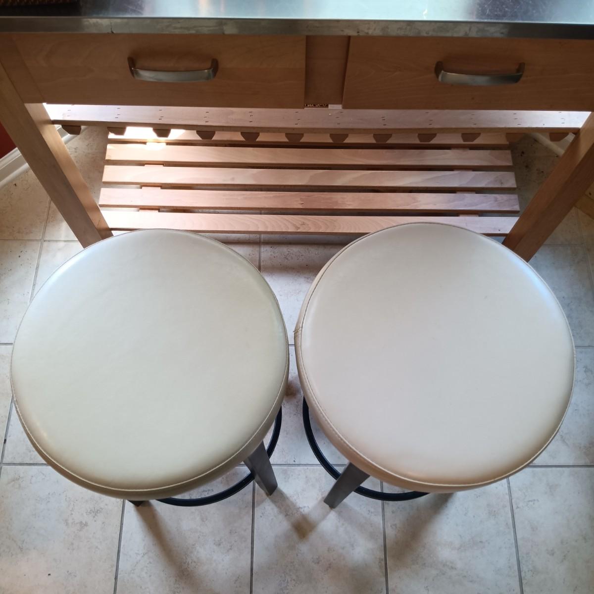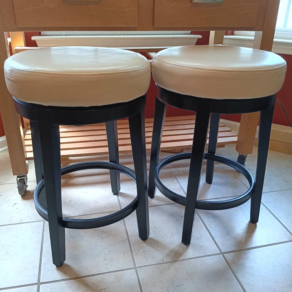 LOT 241: Set of Feaux Leather Swivel Bar Stool
