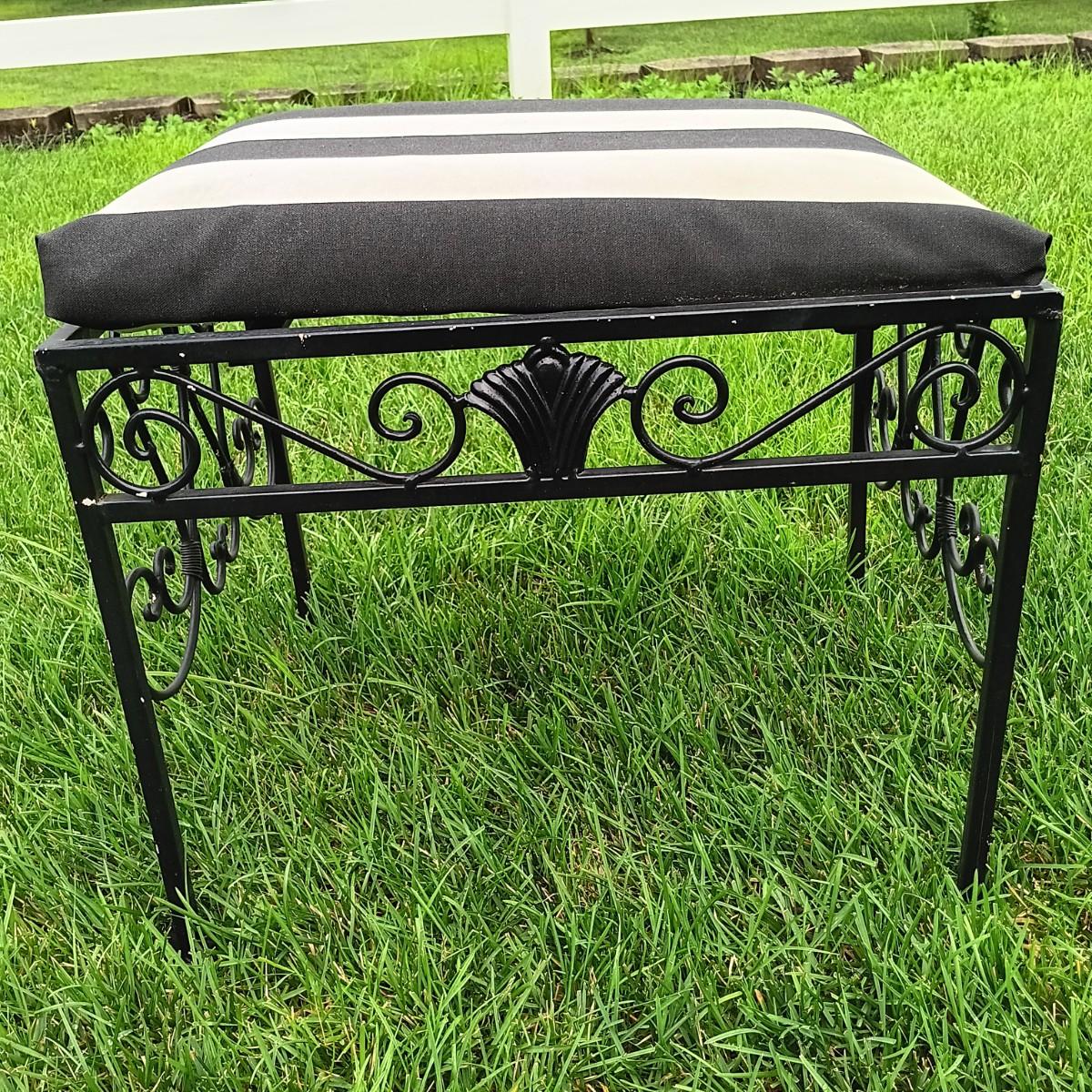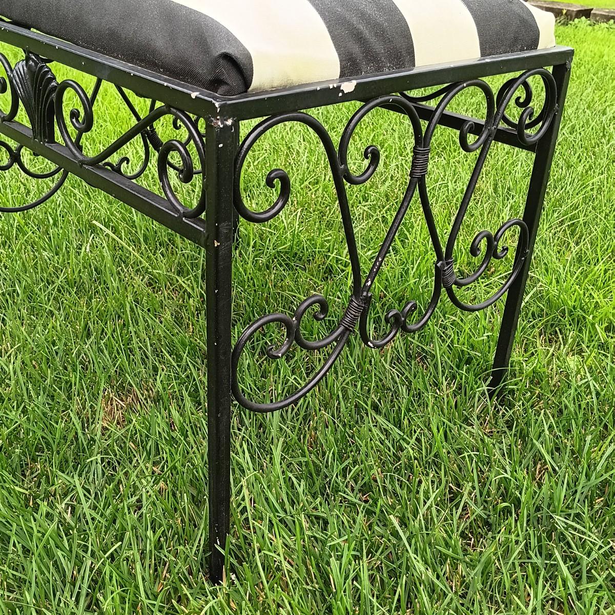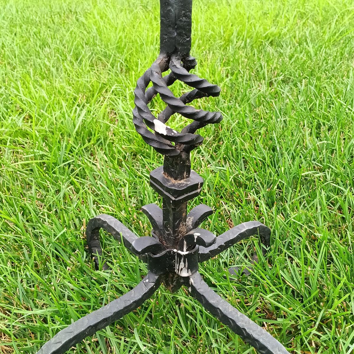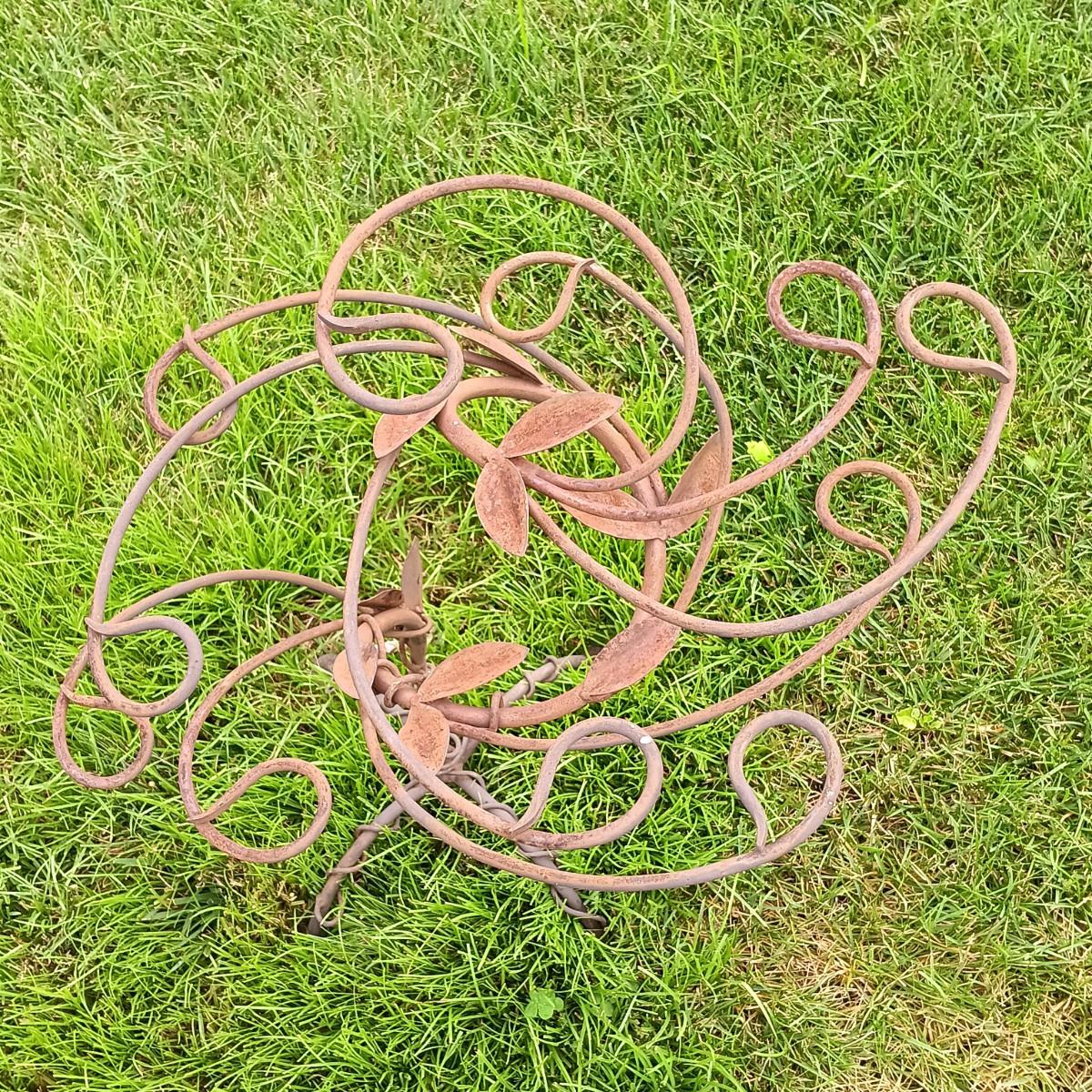 LOT 243: Wrought Iron Patio Stool, Side Table, Candlestick Holder & Garden Art