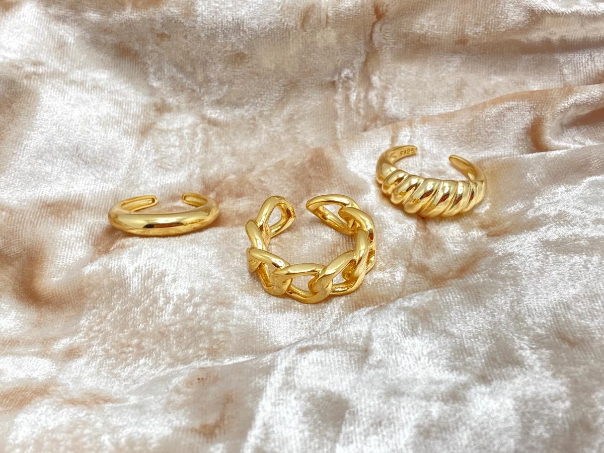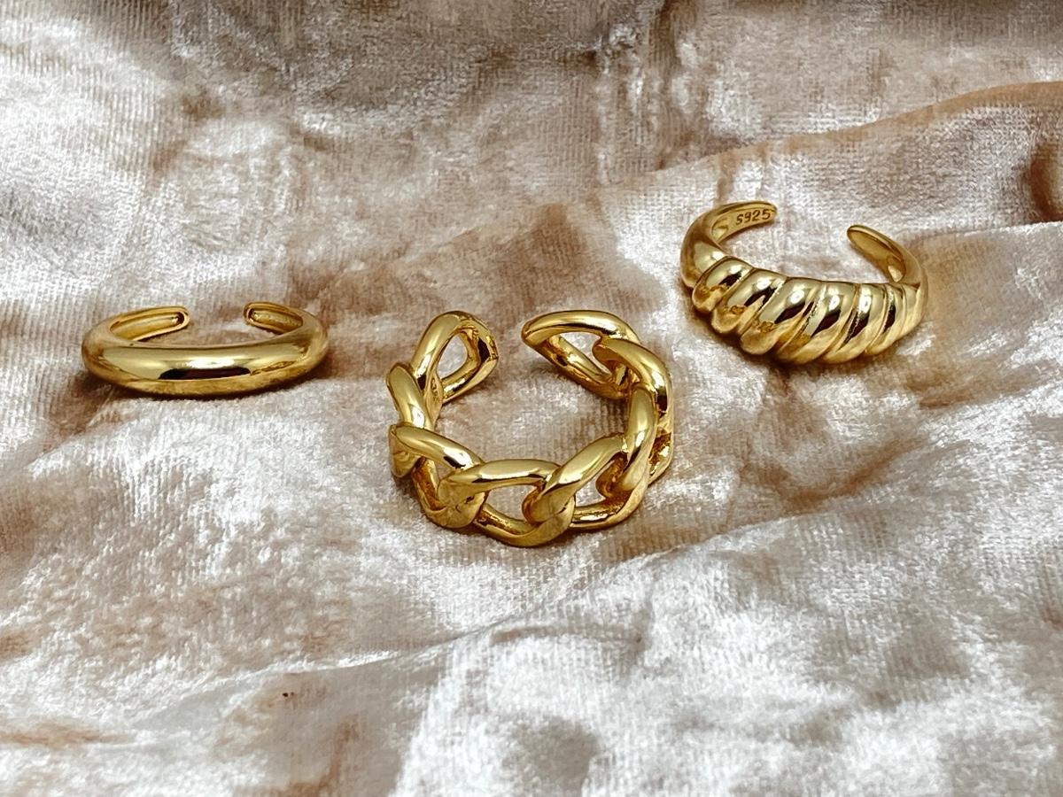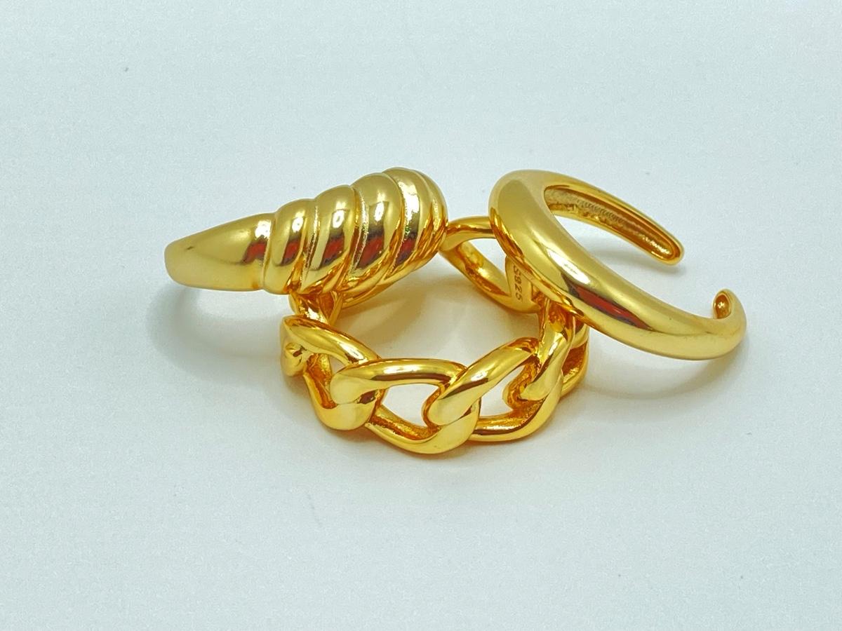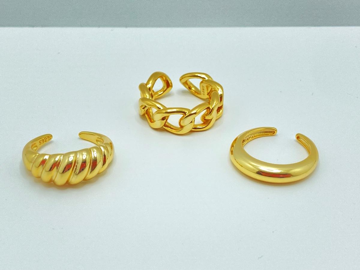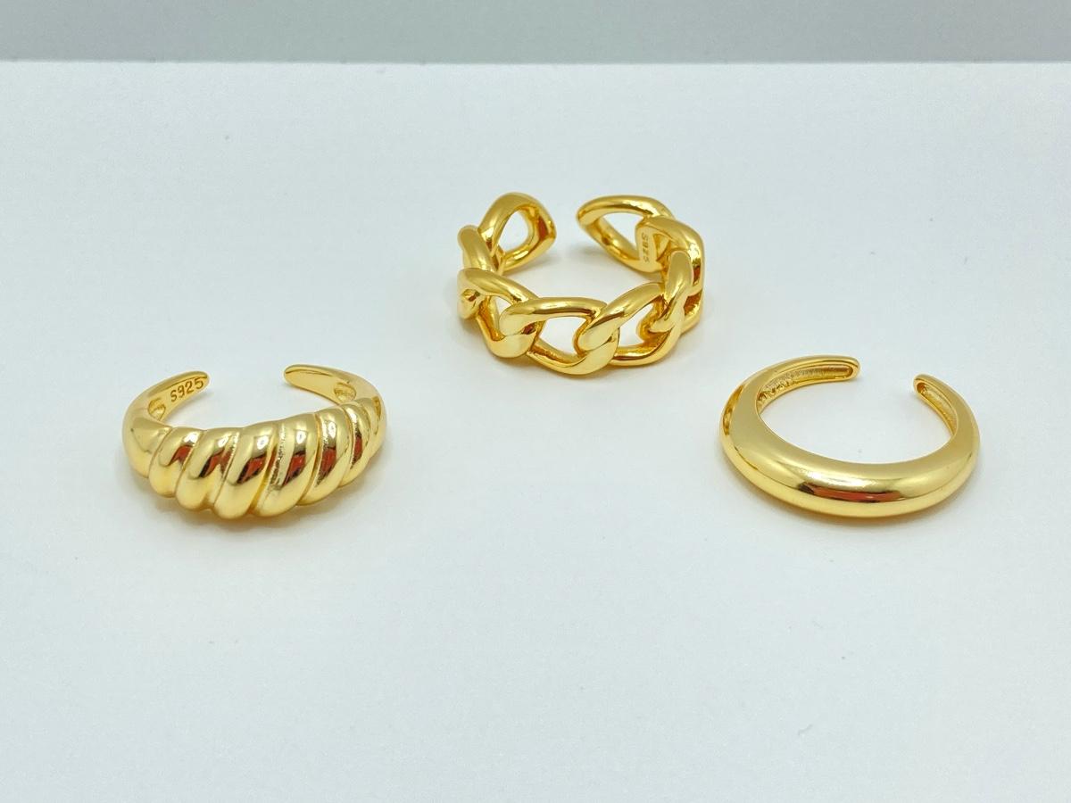 LOT 246: Set of Three Open Back Rings - Gold Overlay over S925