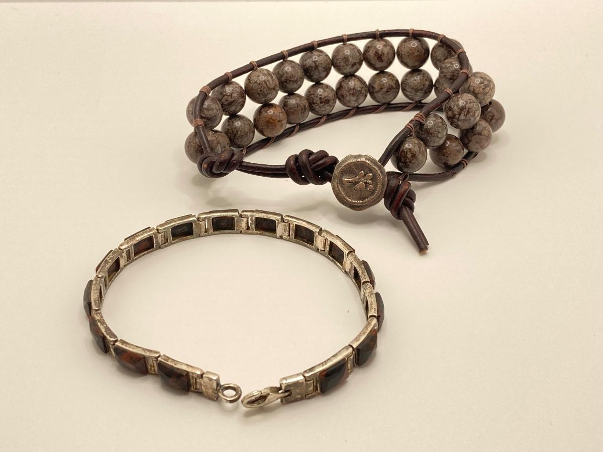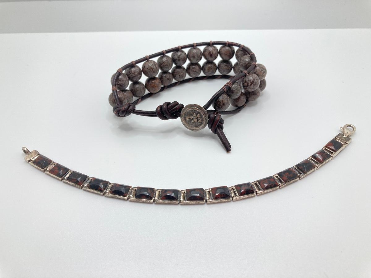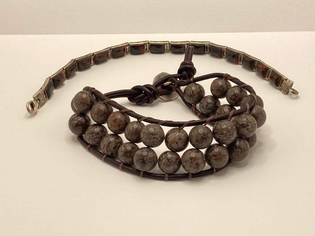 LOT 248: Pair of Bracelets - 925 with Stones and Hand Crafted Braided Beaded Leather