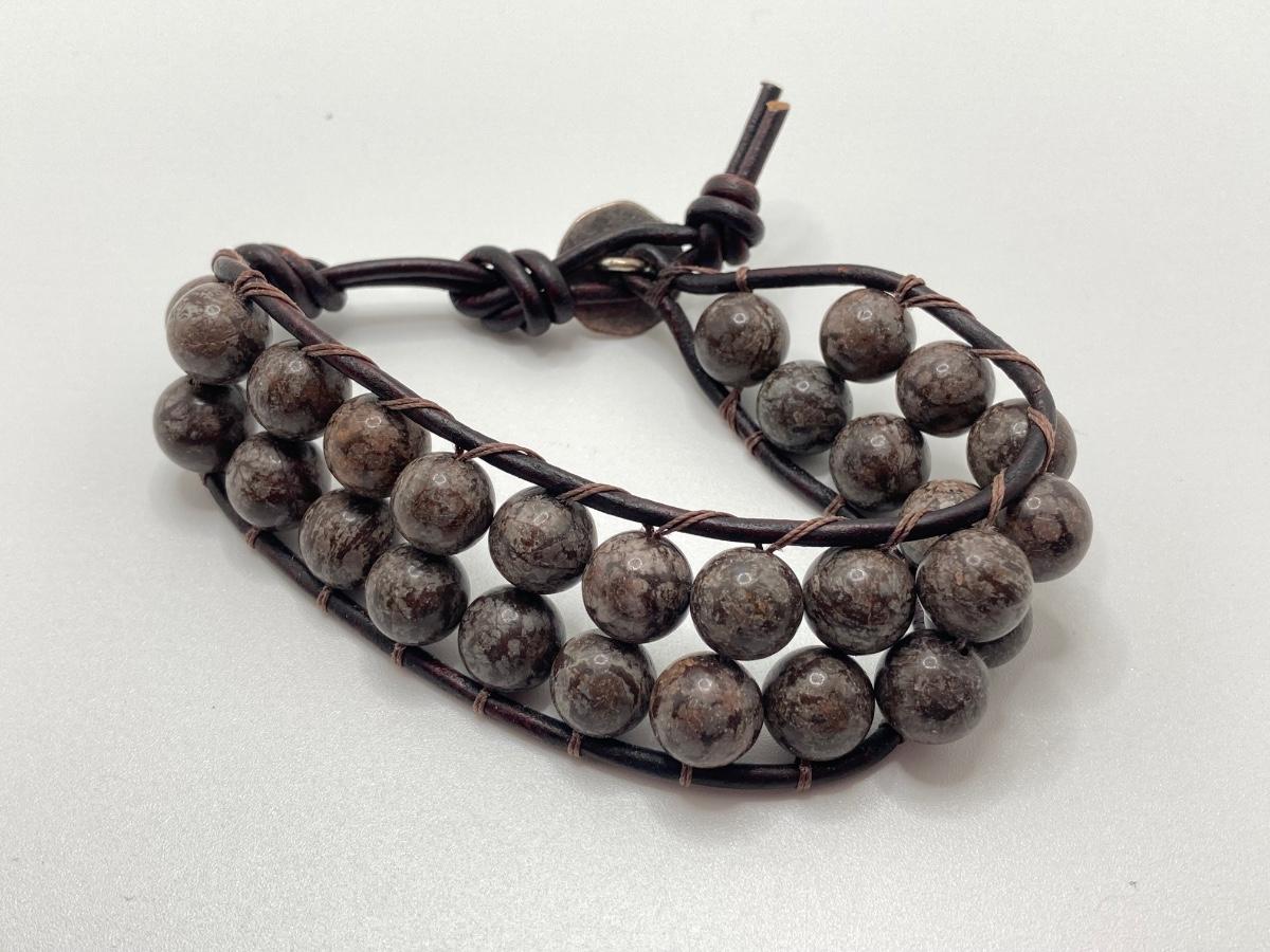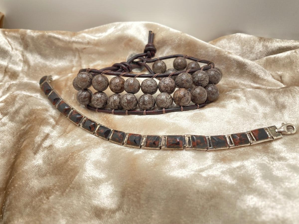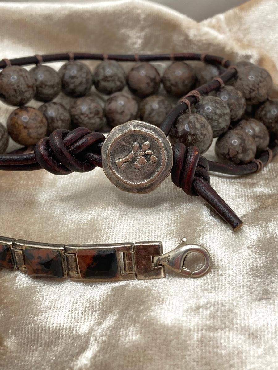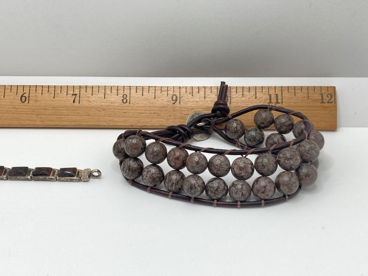 LOT 248: Pair of Bracelets - 925 with Stones and Hand Crafted Braided Beaded Leather