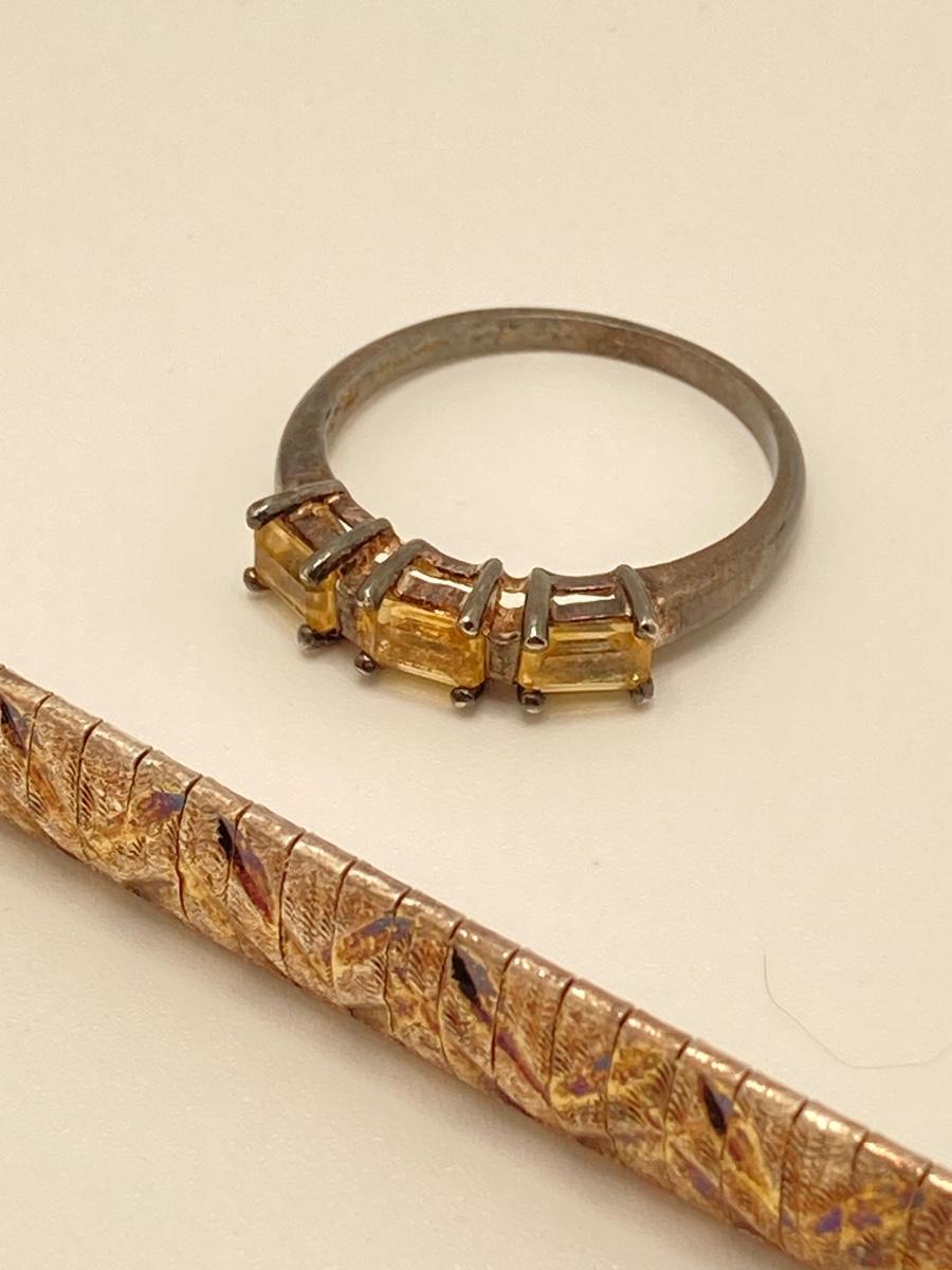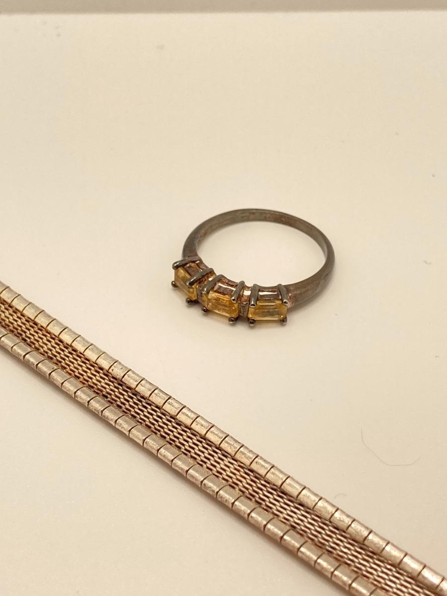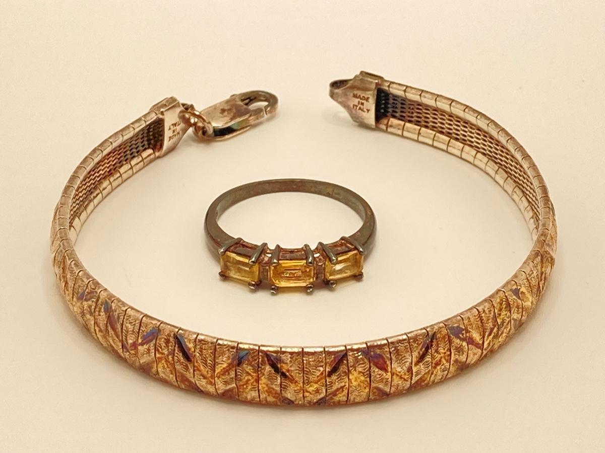 LOT 249: Sterling Ring with Three Citrine gemstones and 925 Milor Italy Diamond Cut Bracelet