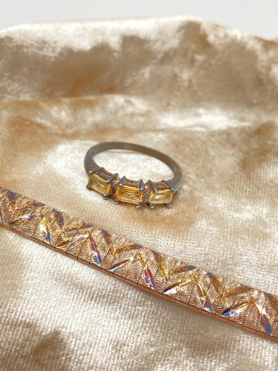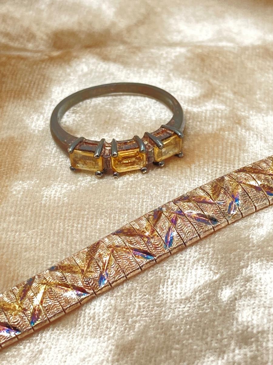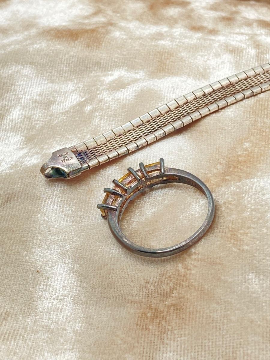 LOT 249: Sterling Ring with Three Citrine gemstones and 925 Milor Italy Diamond Cut Bracelet