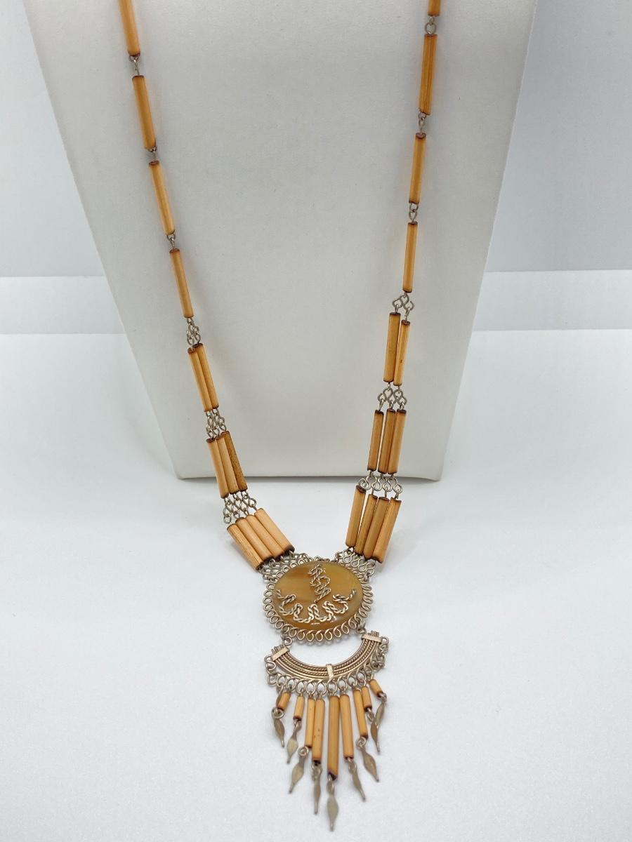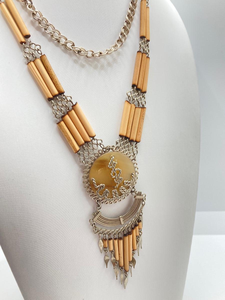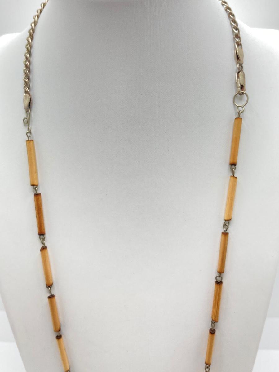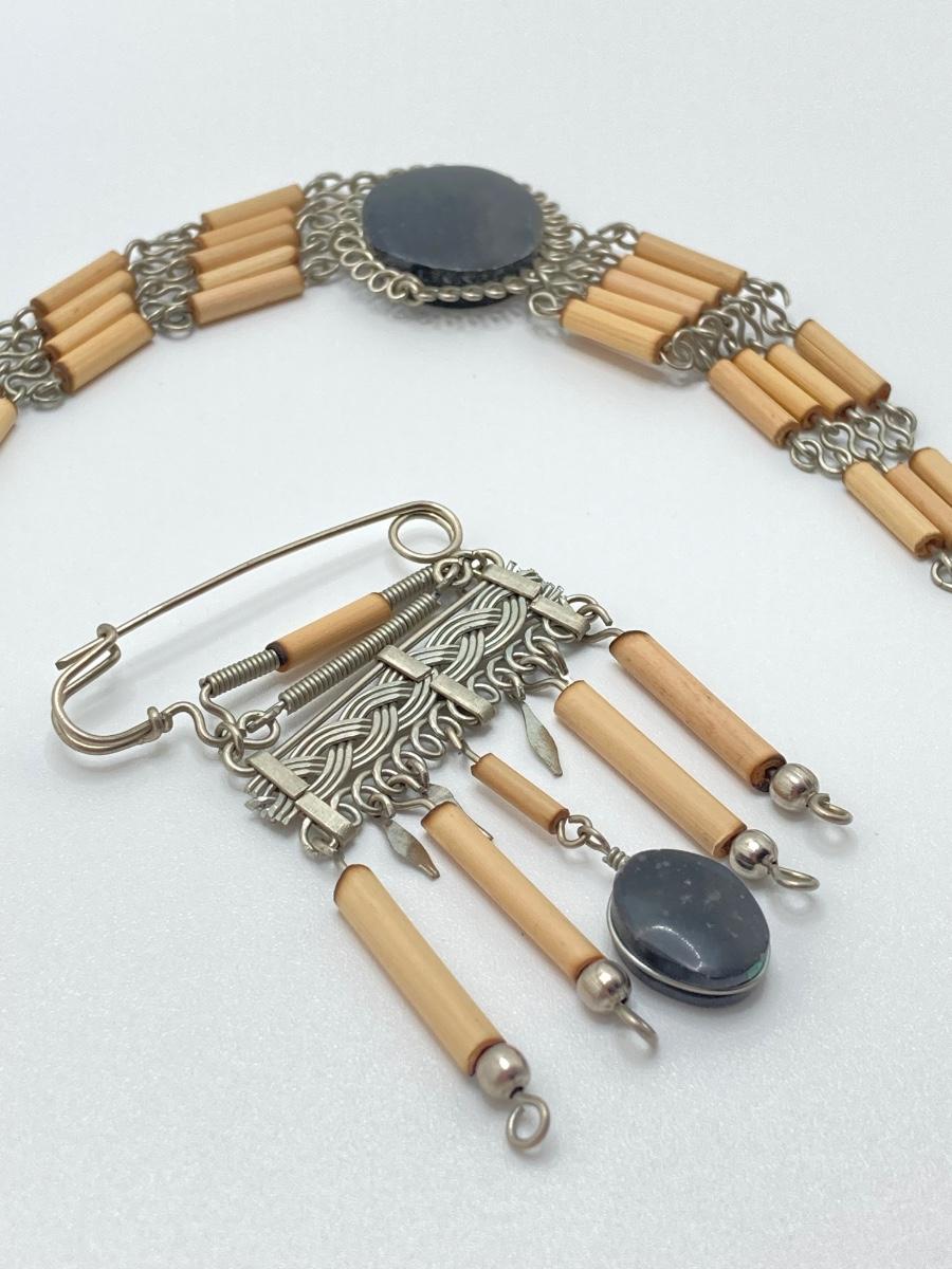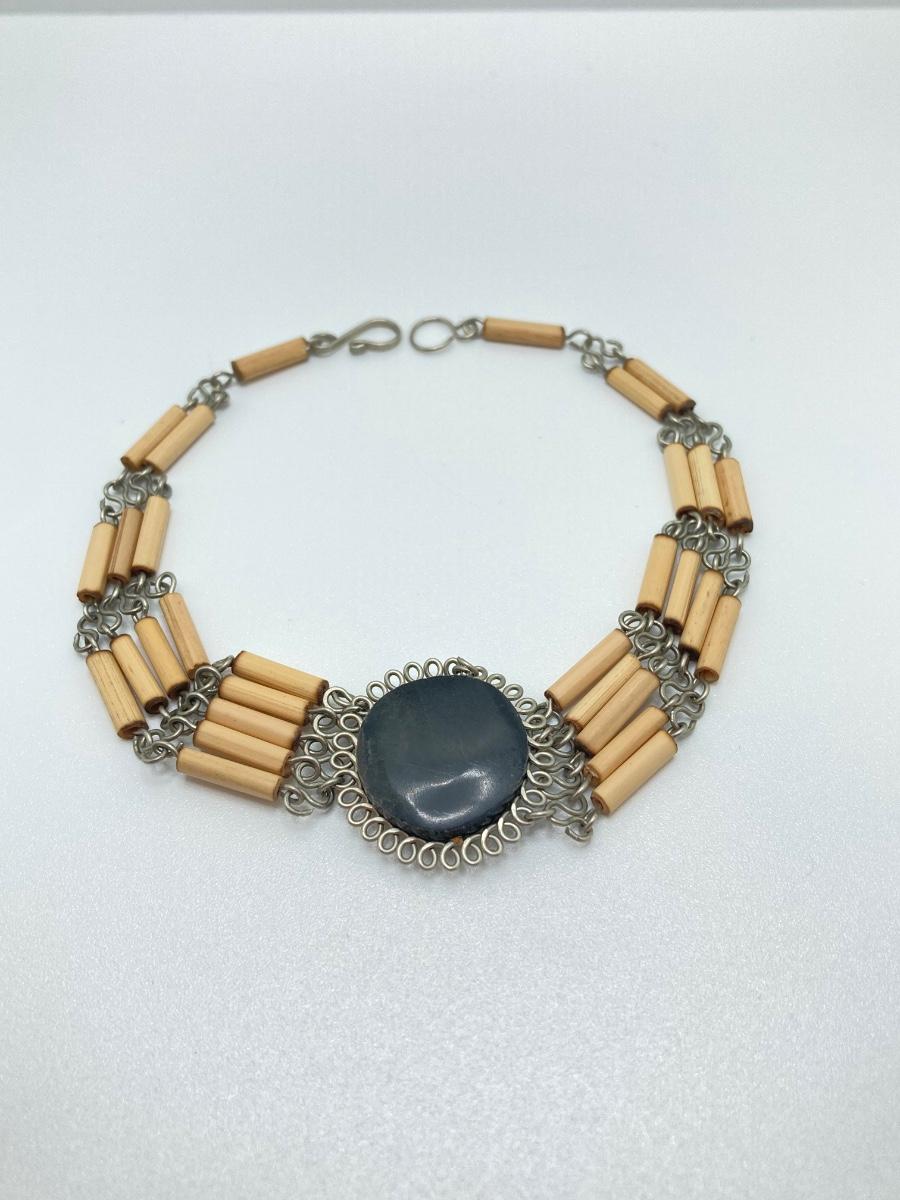 LOT 257: Three Piece Bamboo Link Wire Wrapped Gemstone Jewelry Set with 925 Italy Necklace