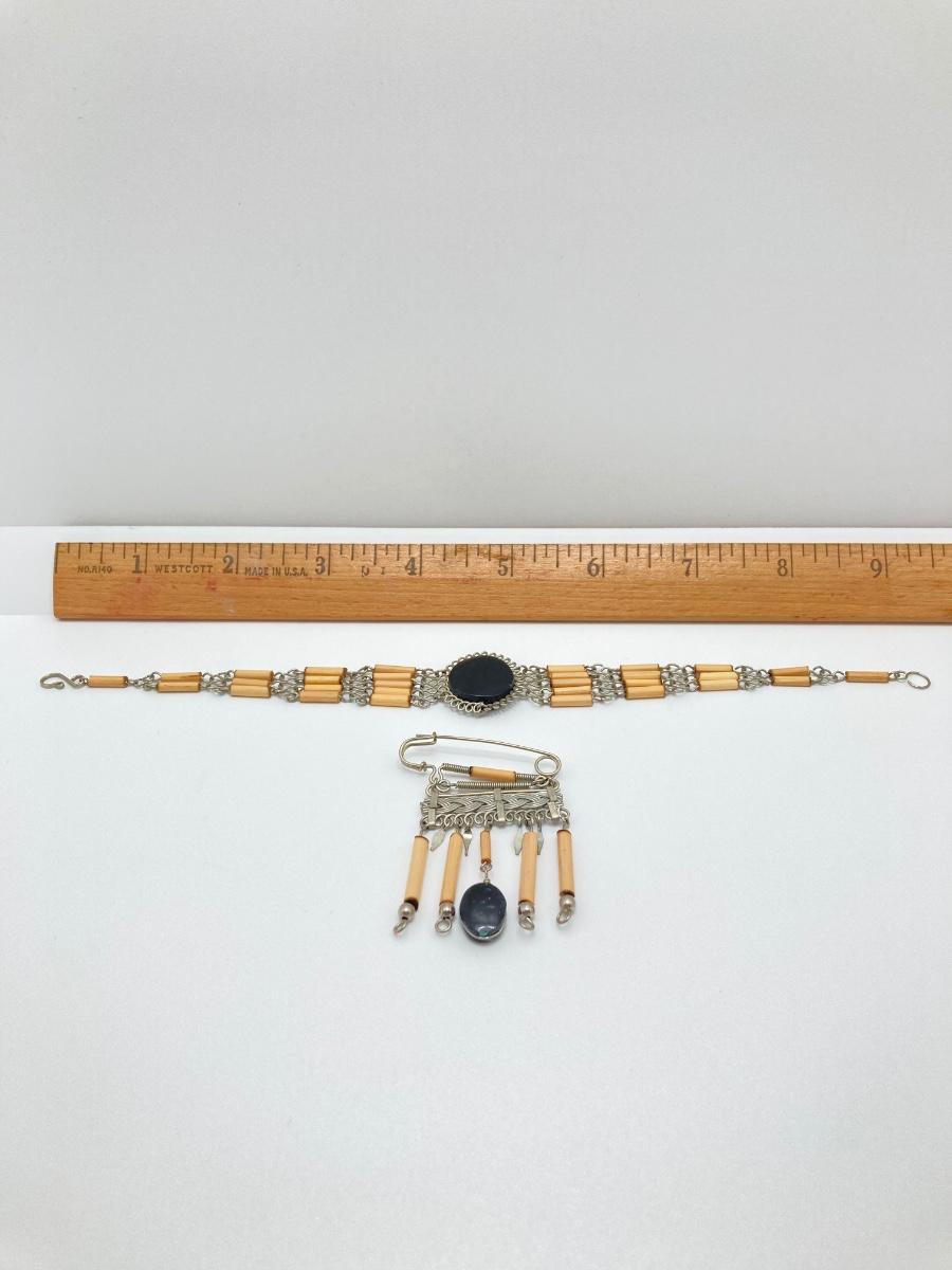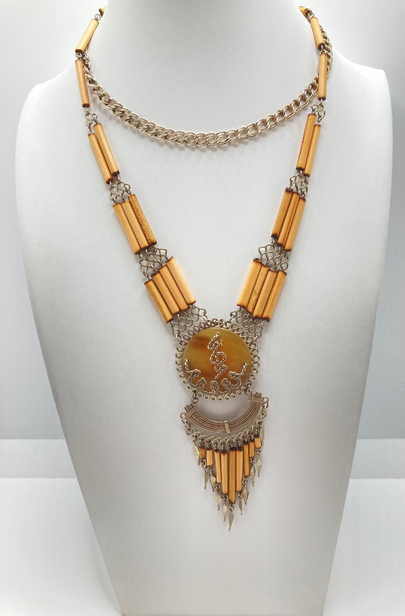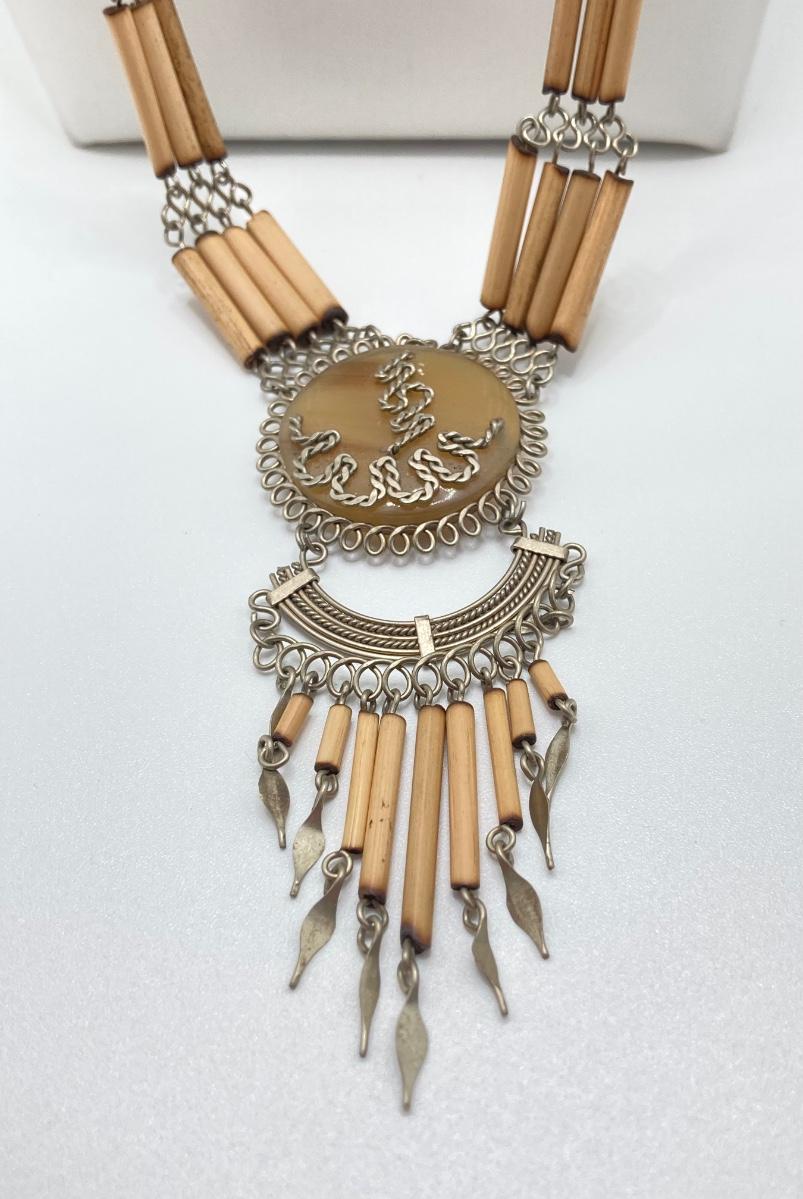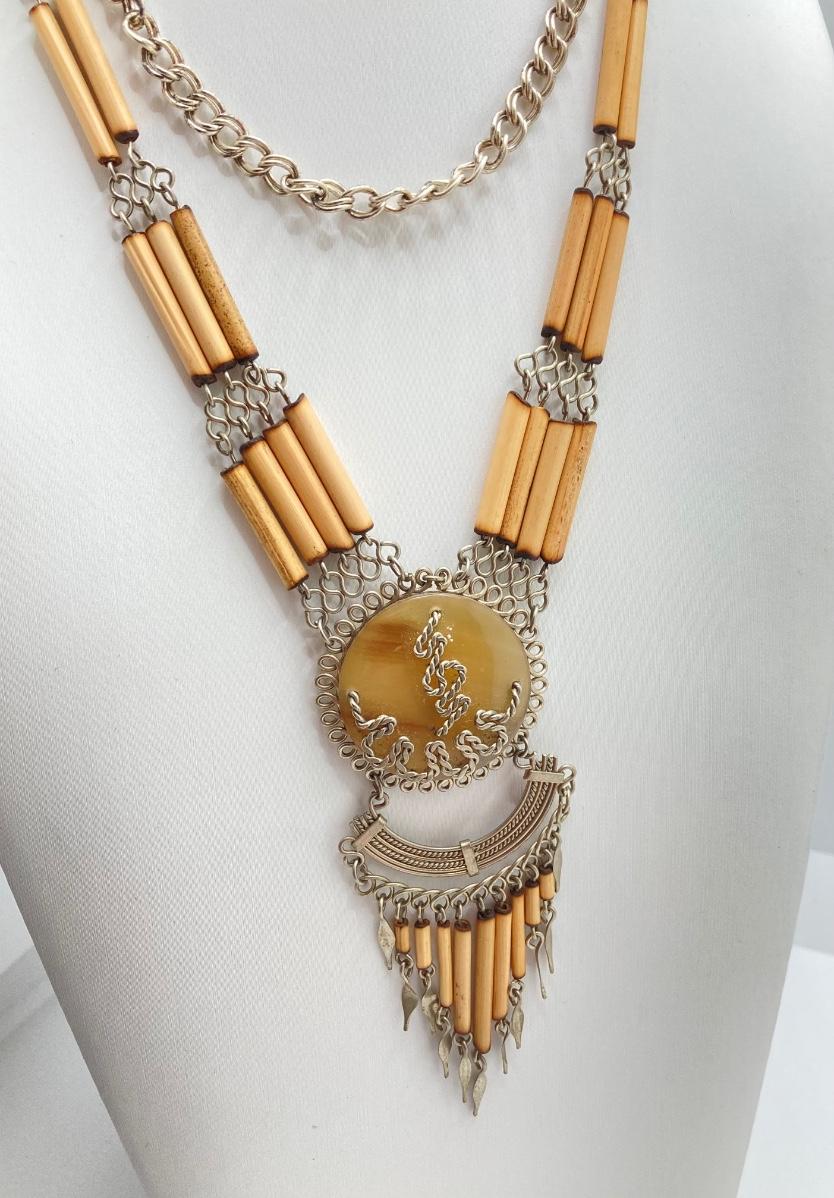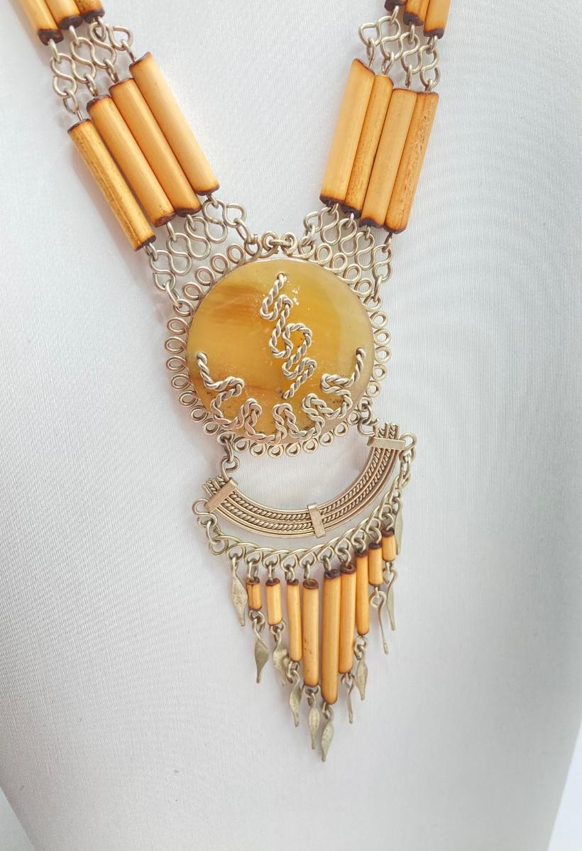 LOT 257: Three Piece Bamboo Link Wire Wrapped Gemstone Jewelry Set with 925 Italy Necklace