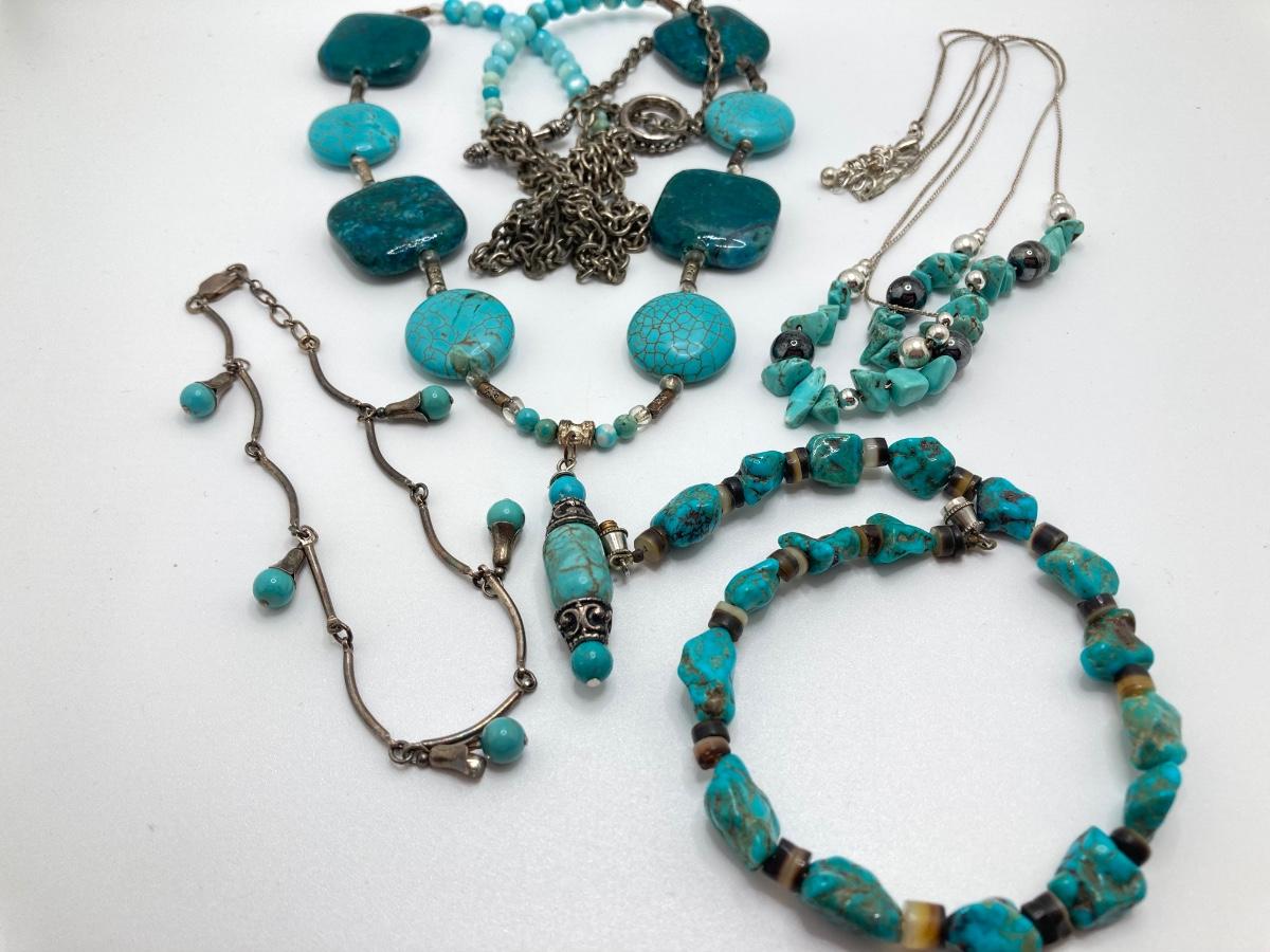 LOT 261: Turquoise Themed Collection - Sterling Bracelet and More