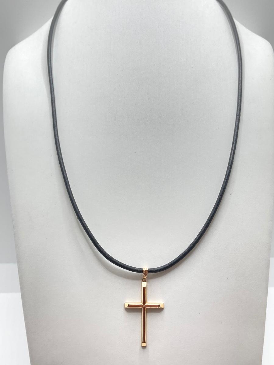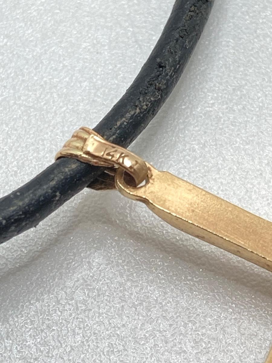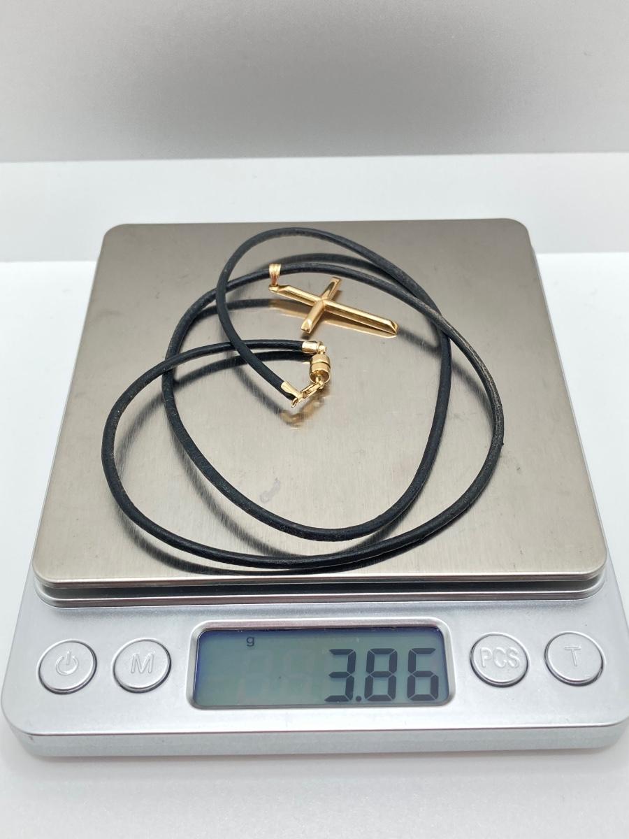 14k PPC, Tw 3.86g including Cross, Leather Cord, 585 Lobster Clasp and 1/20 14k Magnetic Clasp