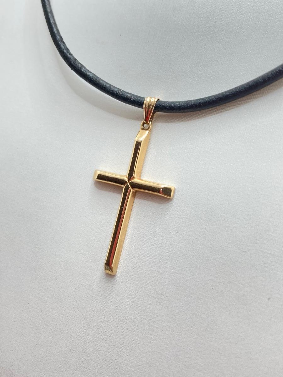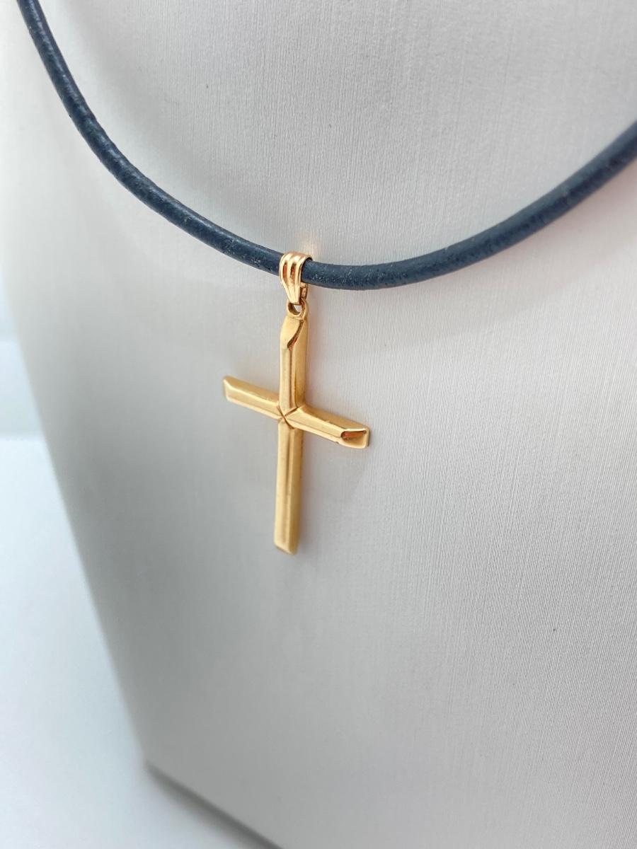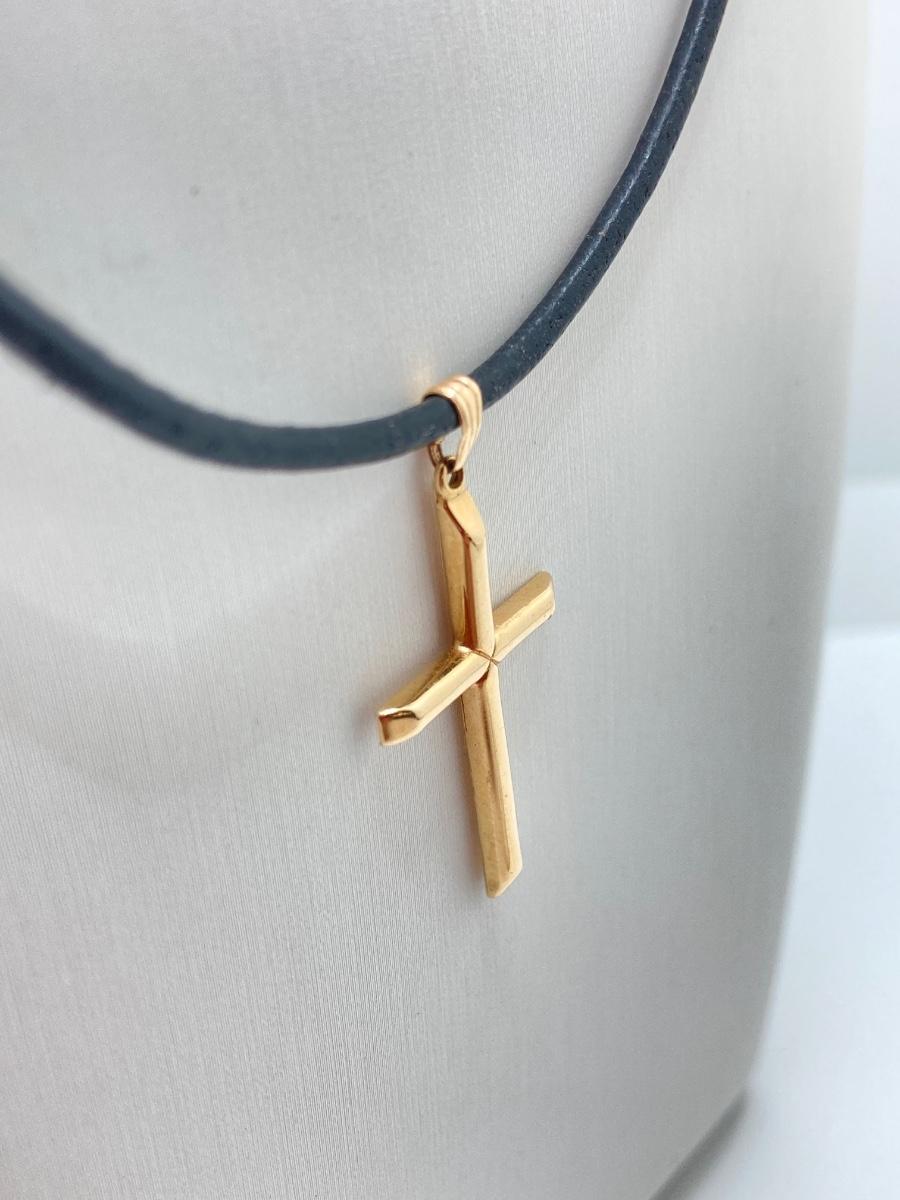 14k PPC, Tw 3.86g including Cross, Leather Cord, 585 Lobster Clasp and 1/20 14k Magnetic Clasp