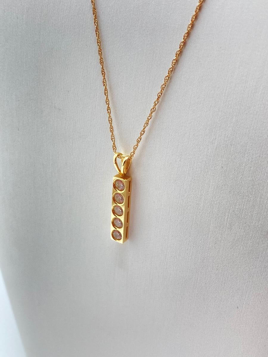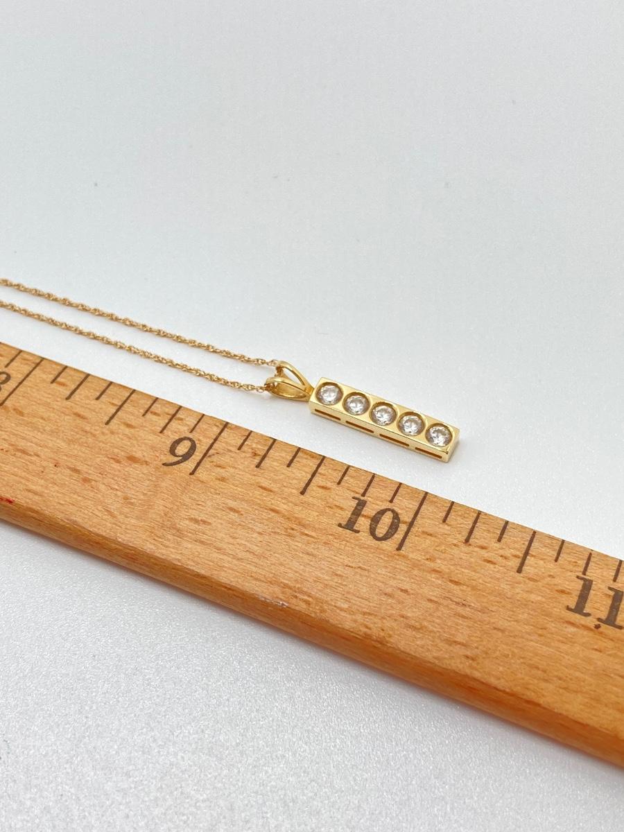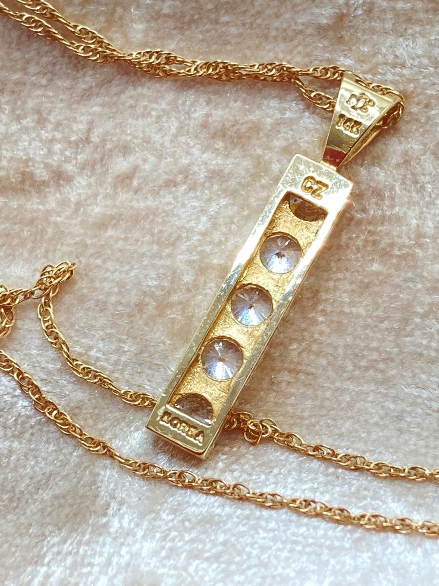 LOT 276: Korea Gold Necklace with Four CZ Stone Pendant - 14KT, TW 2.11g, 20"