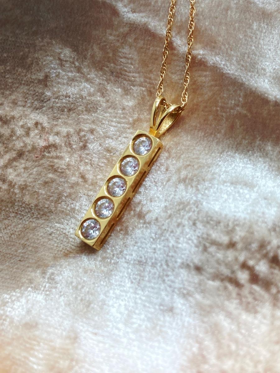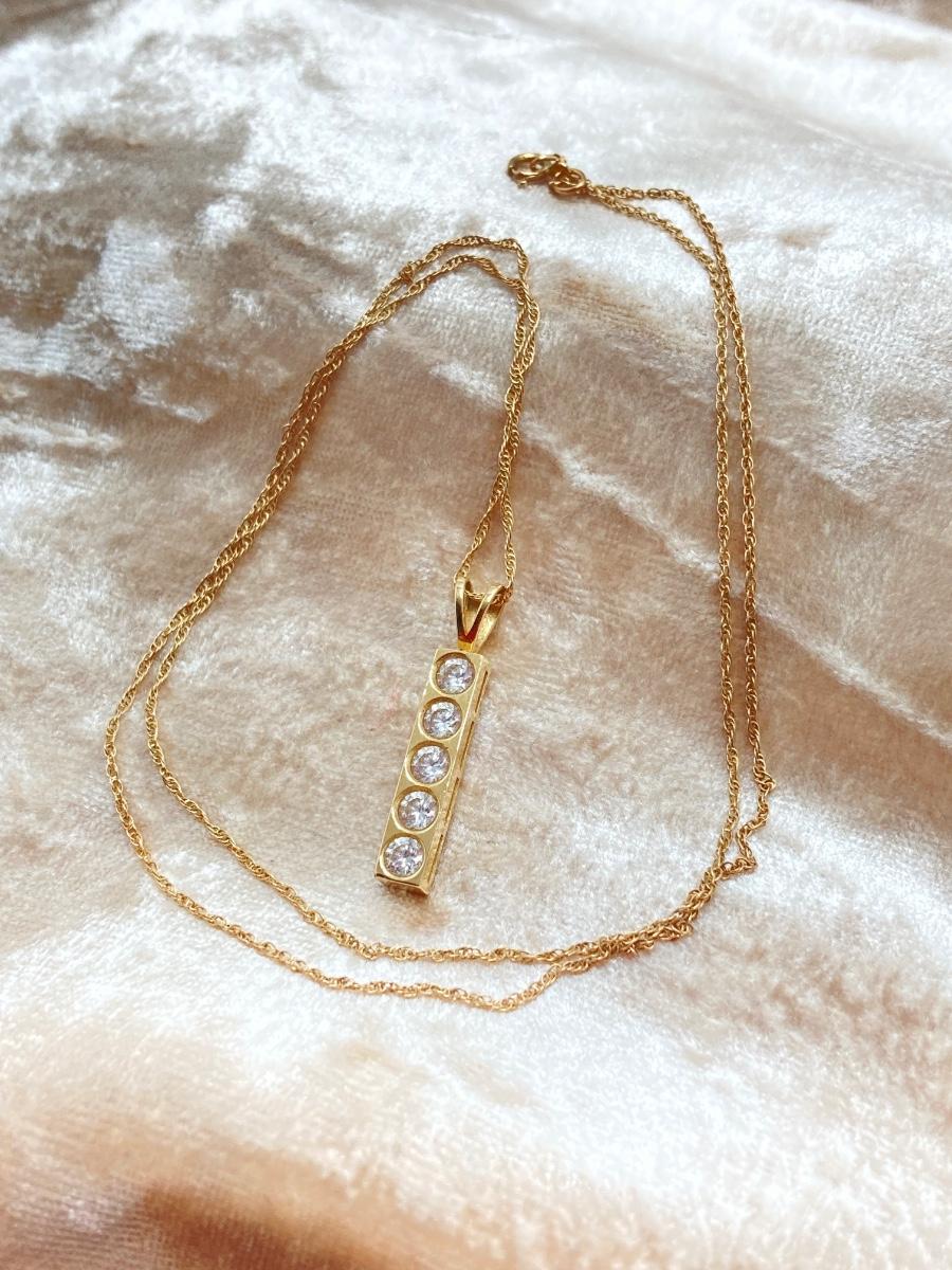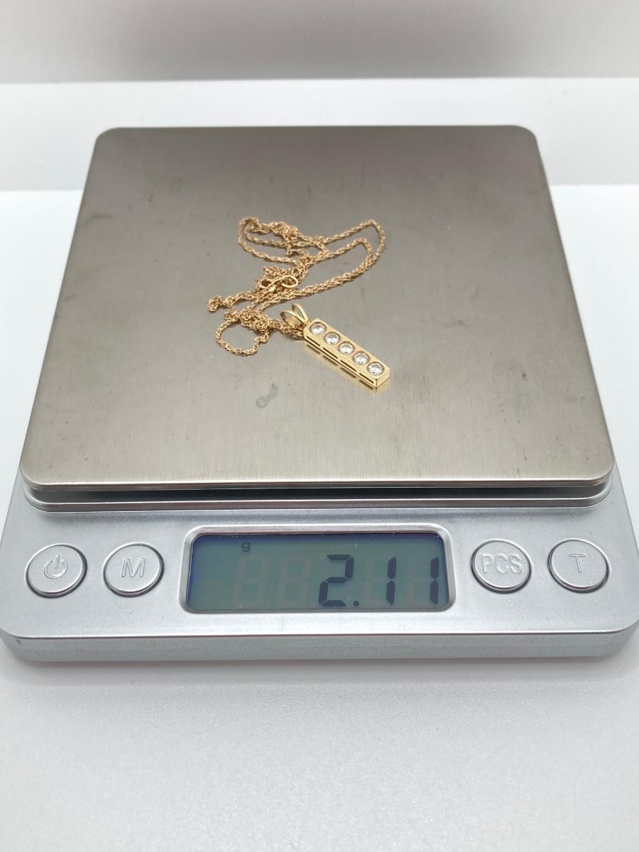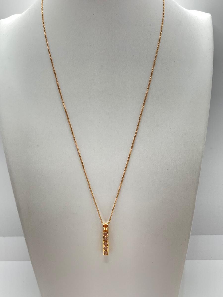 LOT 276: Korea Gold Necklace with Four CZ Stone Pendant - 14KT, TW 2.11g, 20"