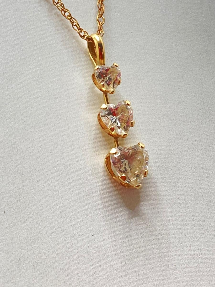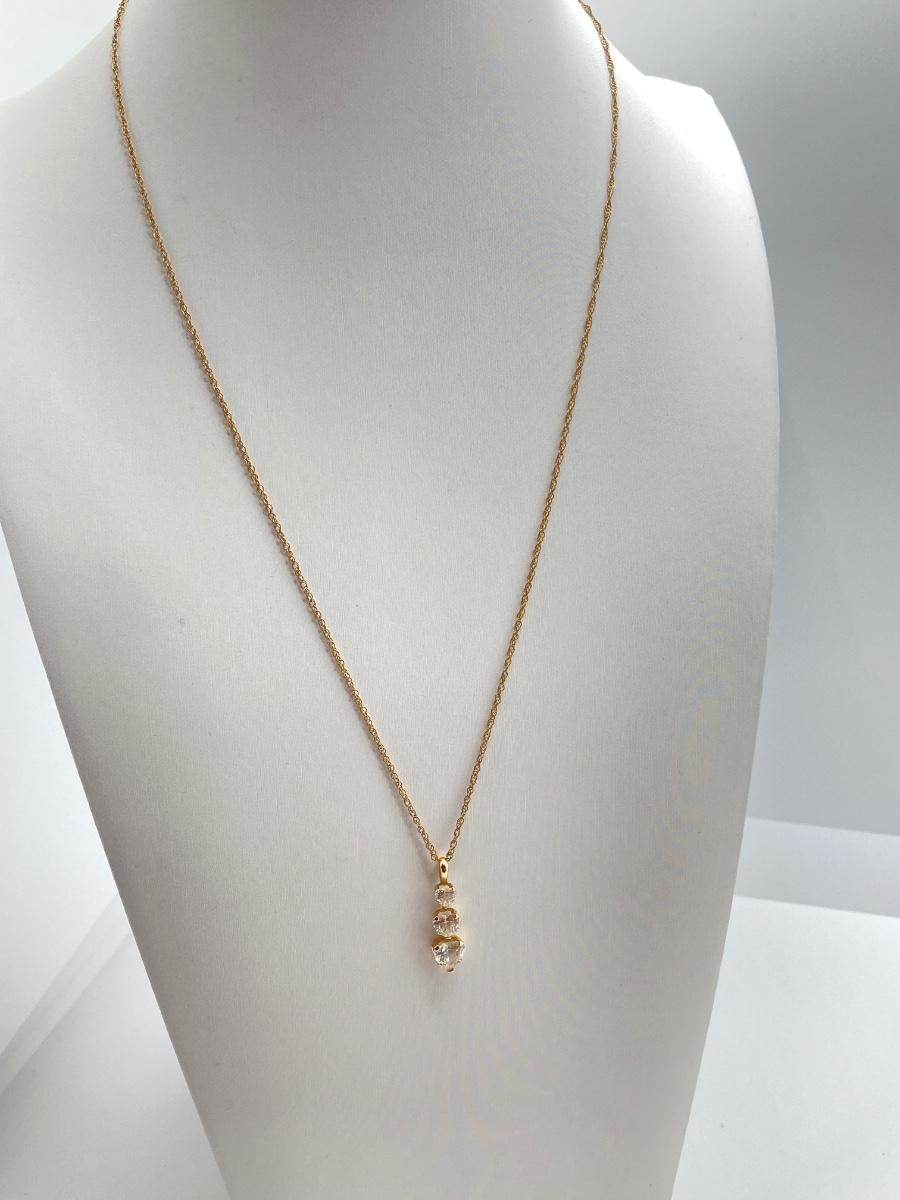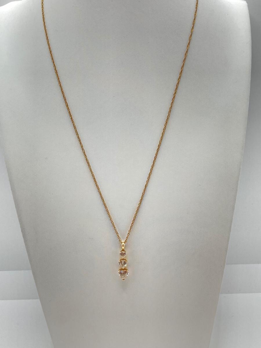 LOT 277: JCM Gold Cubic Zirconia Pendant with Gold Filled Chain, 14KT, TW 0.85g, 18"