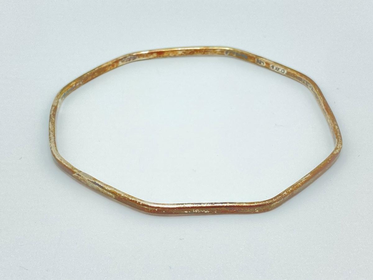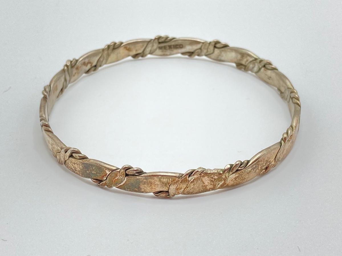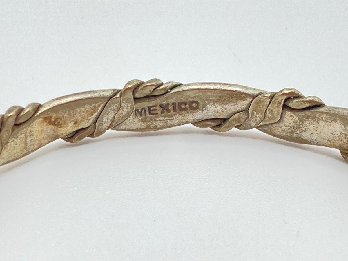 LOT 280: Sterling Jewelry - Two Mexico Bangle Bracelets TW 26.73g and AS Israel Ring - TW 4.63g Sz 7