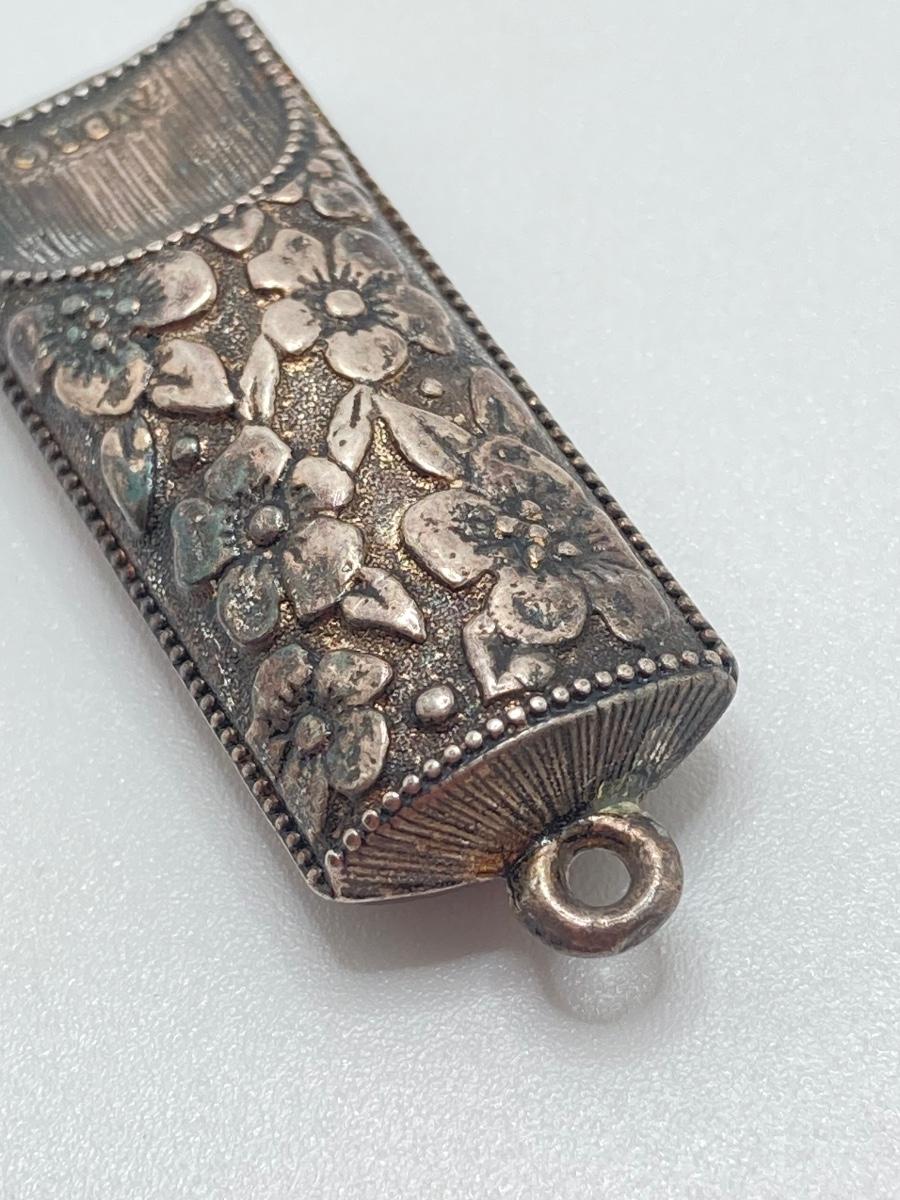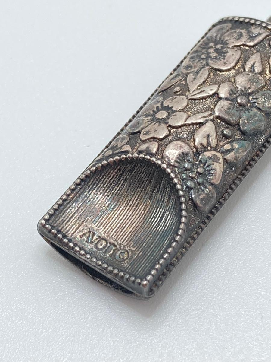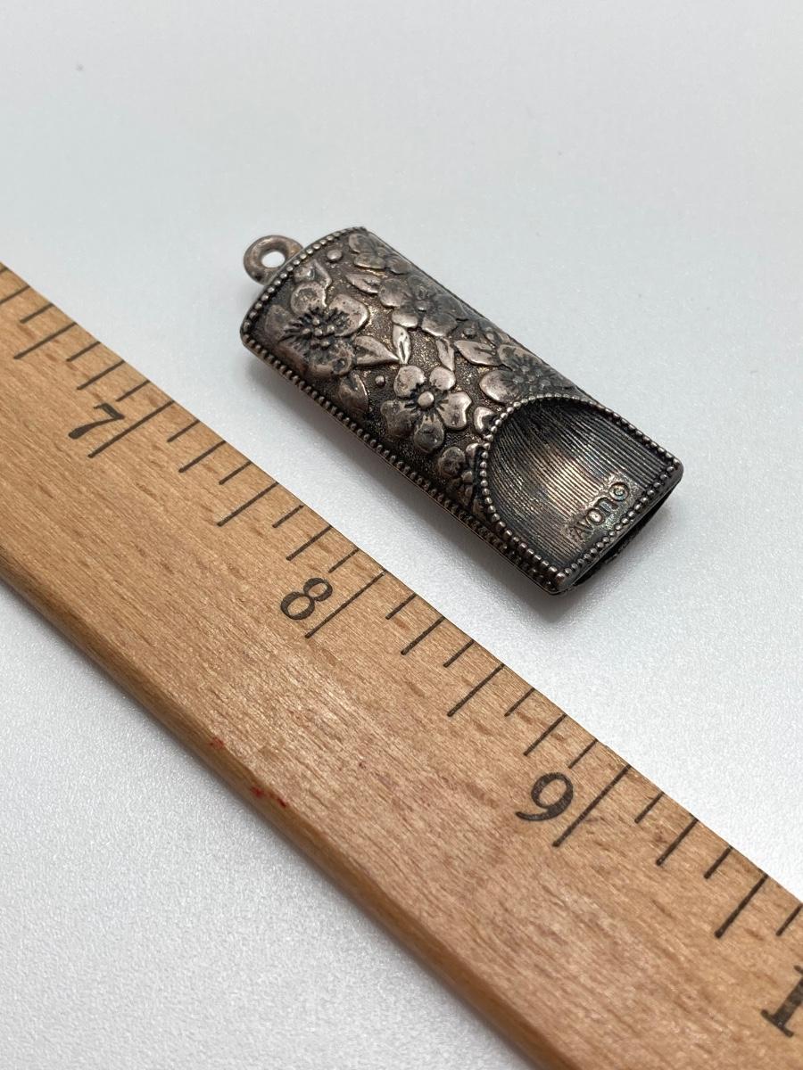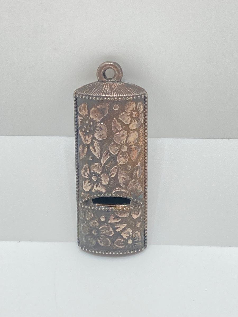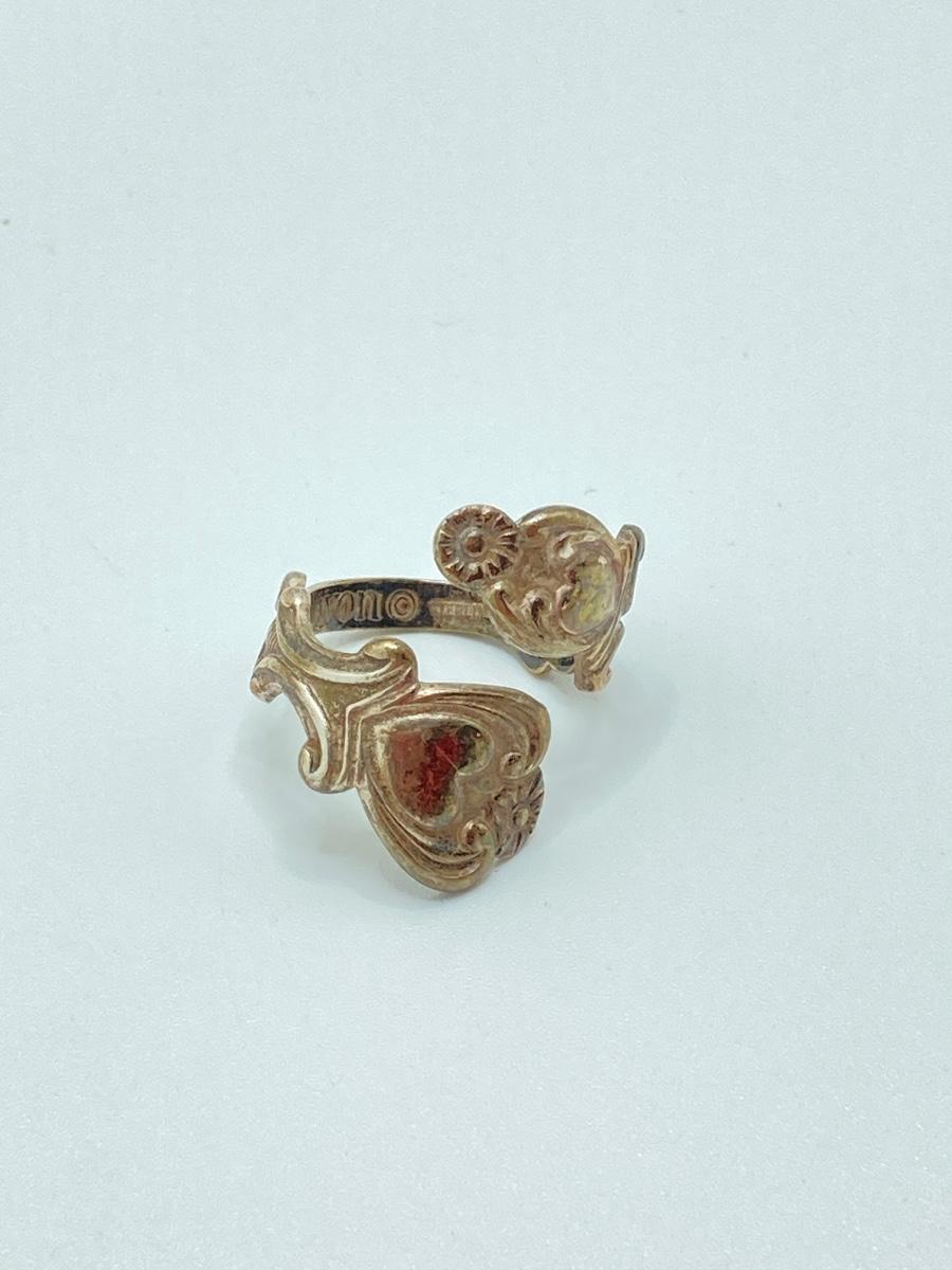 LOT 282: Avon Sterling Silver “Treasured Heart” Spoon Ring 197t and Avon 1975 Silver Note Repousse Floral Whistle Pendant
