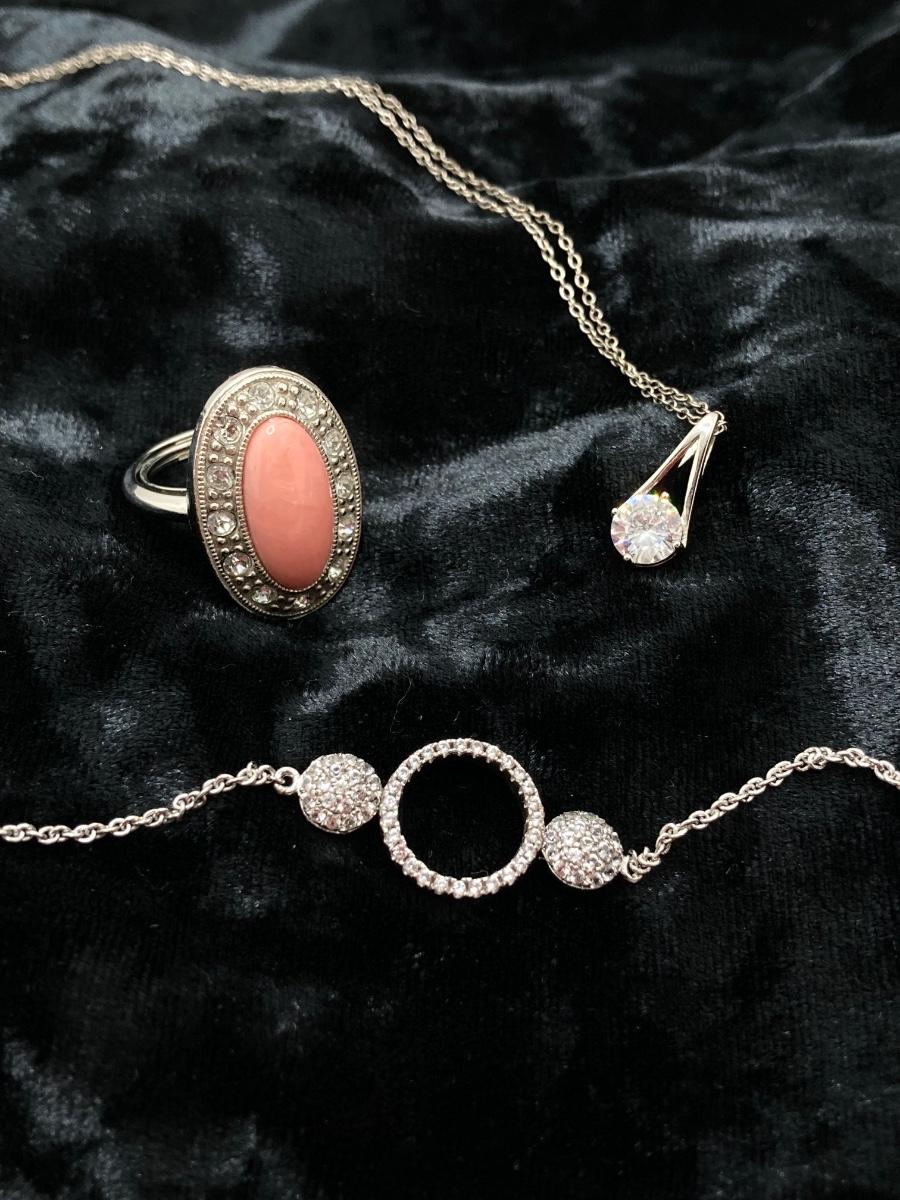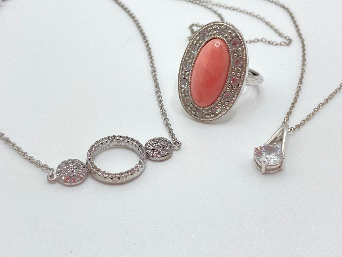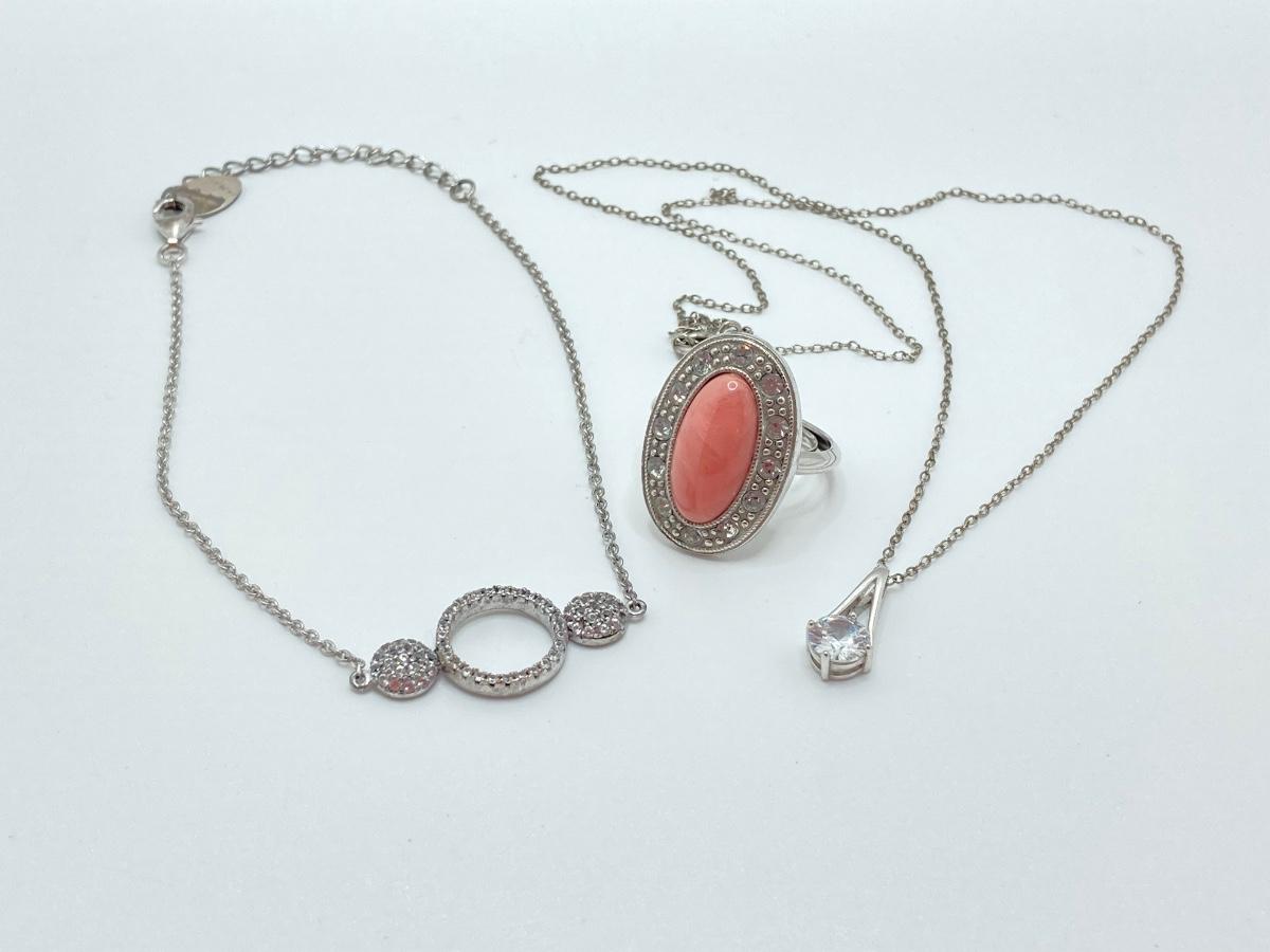 LOT 283: Avon Adjustable Ring, Sterling Bracelet and Sterling Cubic Zirconia Pendant Necklace