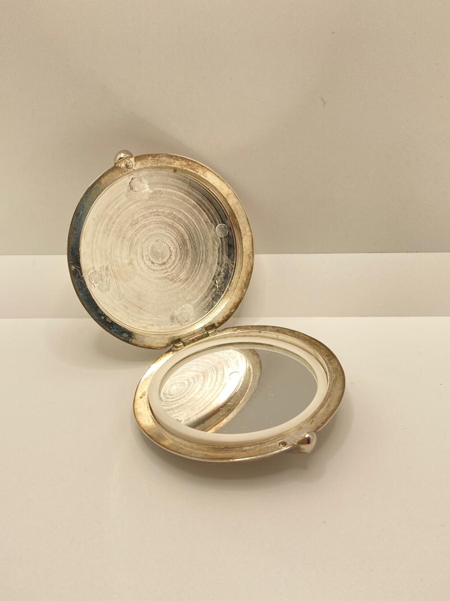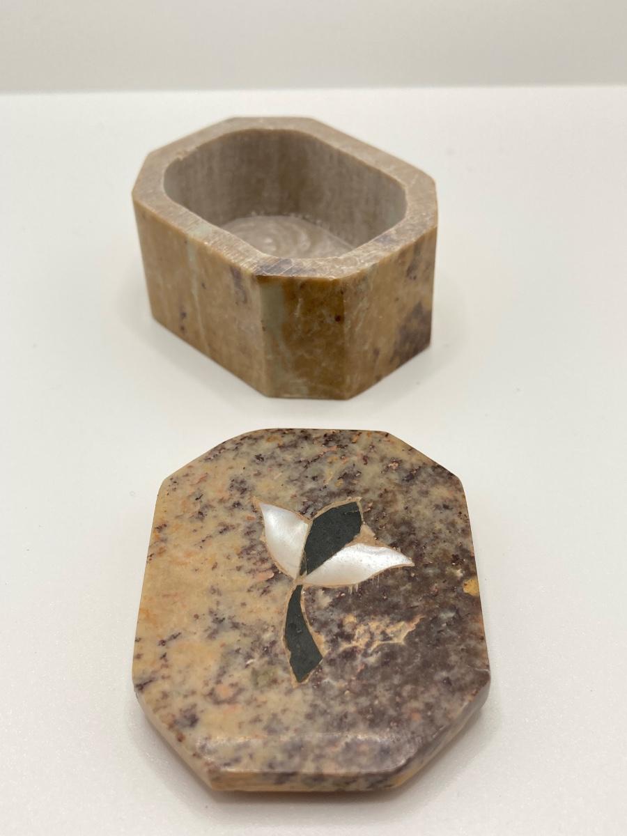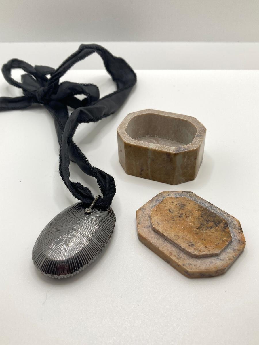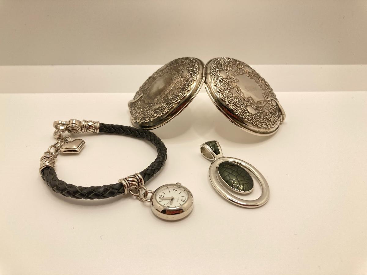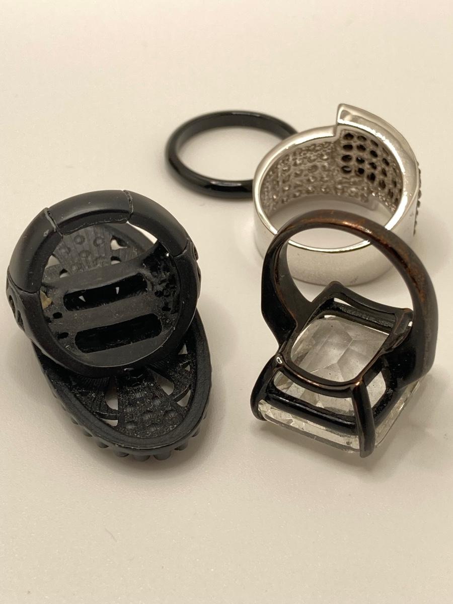 LOT 284: Collection of Fashion Rings, Compact, Inlay Trinket Box, Lia Sophia Pendant and More