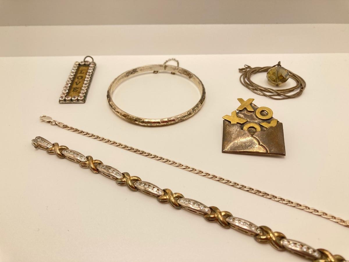 LOT 287: Large Collection of Jewelry - Sterling TW 26.46g and More - X CZ Bracelet, XO Brooch / Pin, Inspirational Pendant Necklace and More