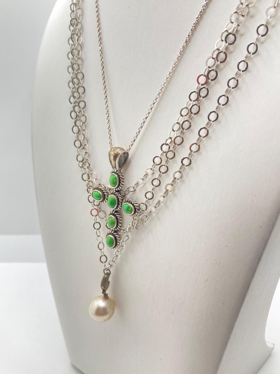 LOT 288: Two Sterling Pendant Necklaces and Sterling Bracelet