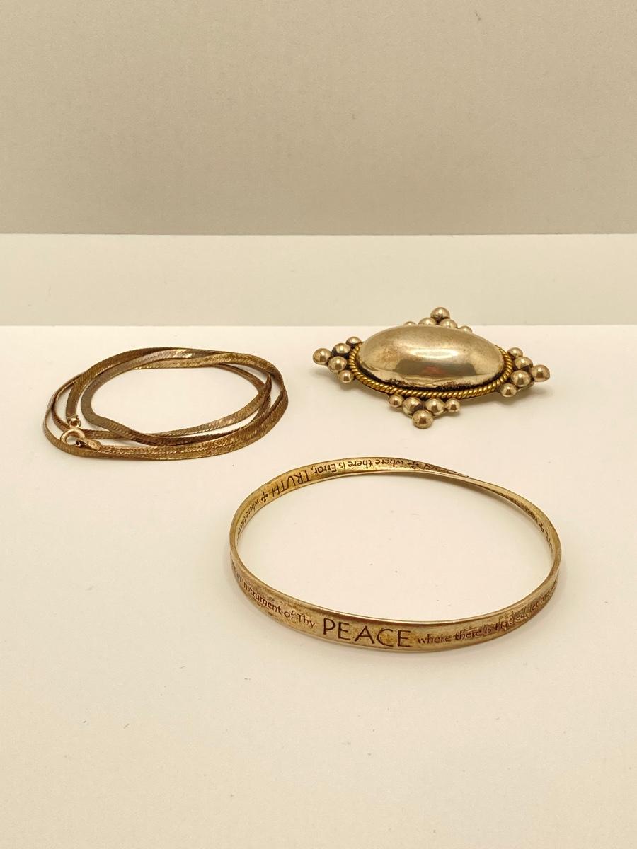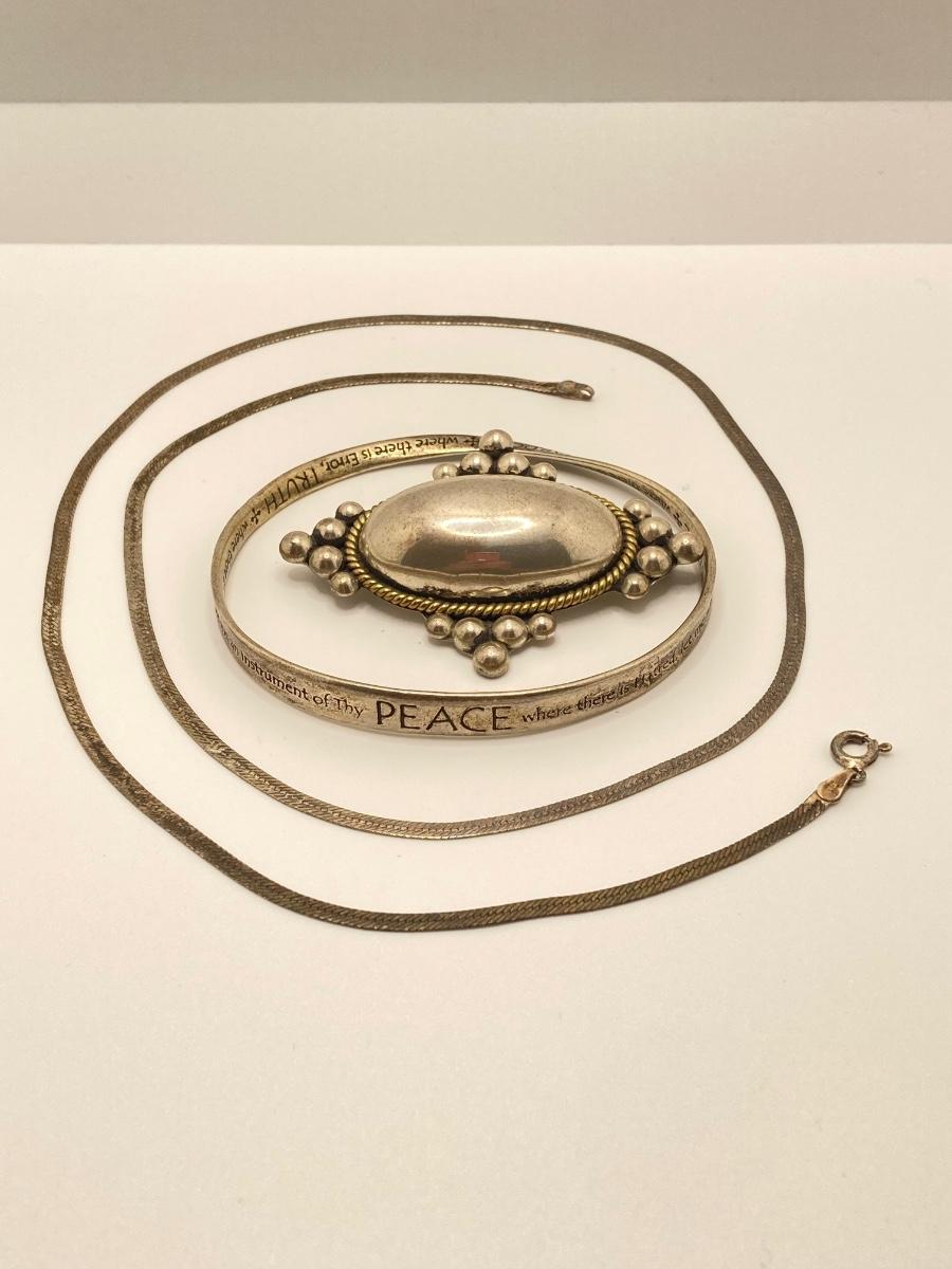 LOT 289: Collection of Sterling Jewelry - Necklace, Inspirational Bangle Bracelet and Taxco Pendant Brooch - TW 42.21g