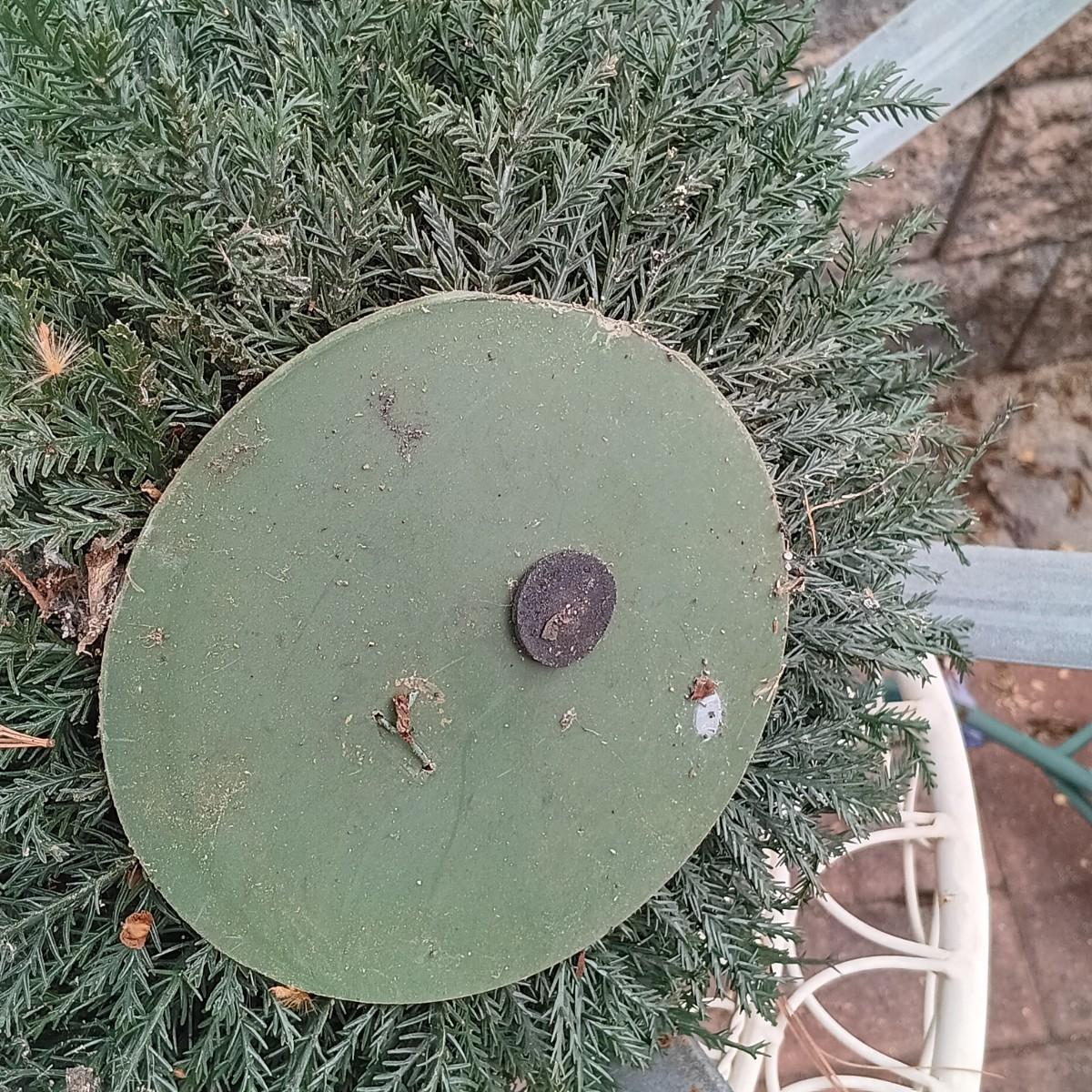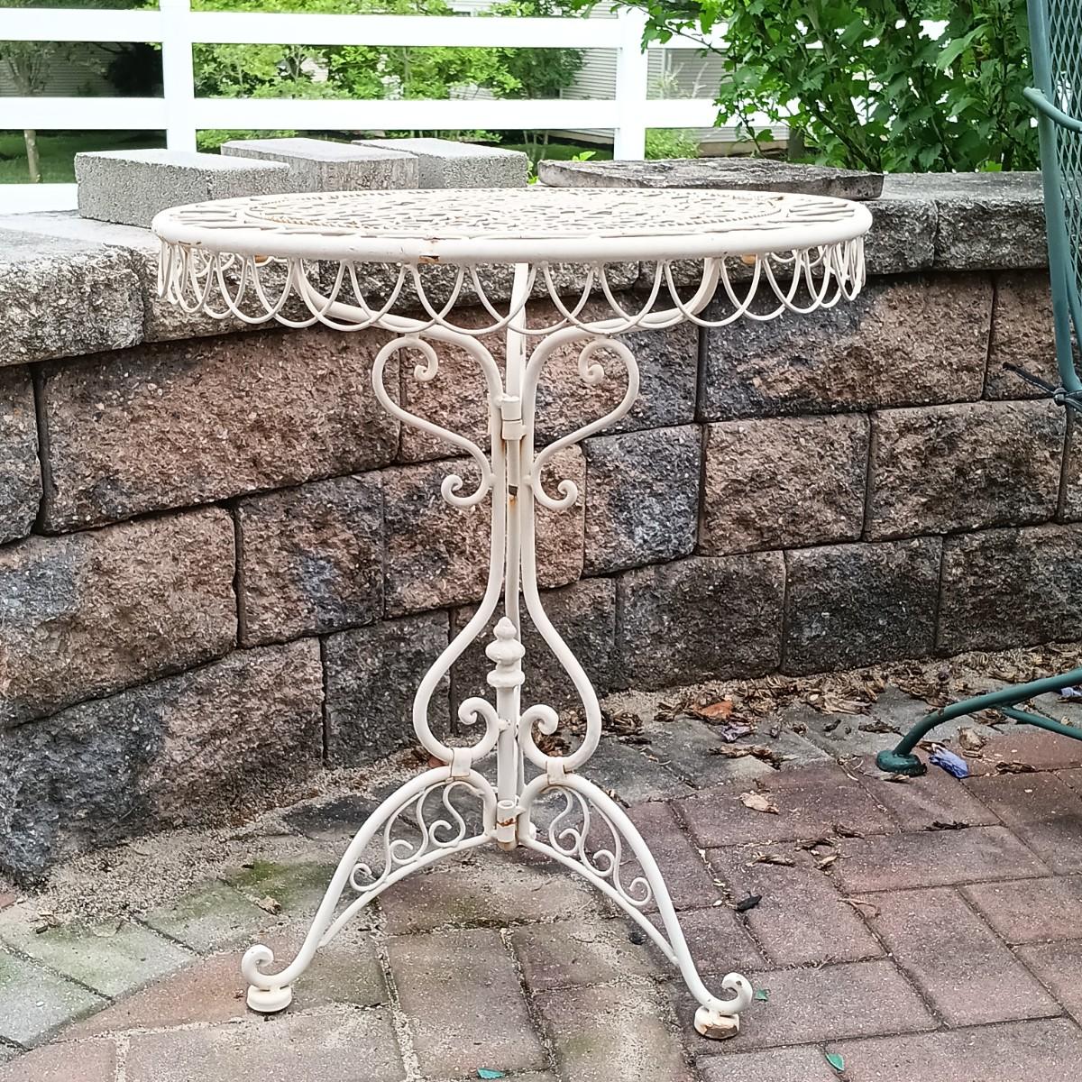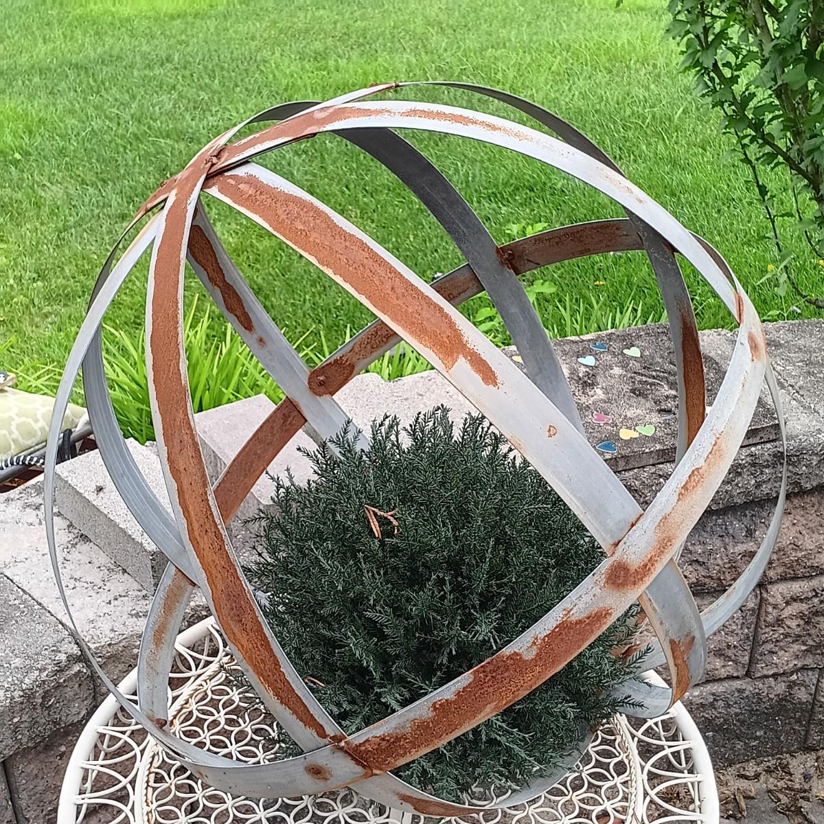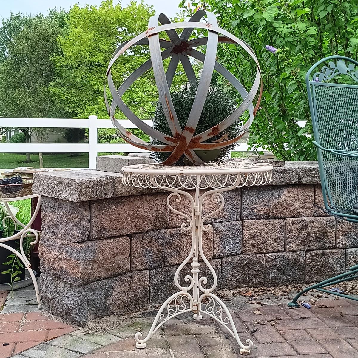 LOT 306: Garden Table with Metal Sphere and Small Feaux Shrubbery
