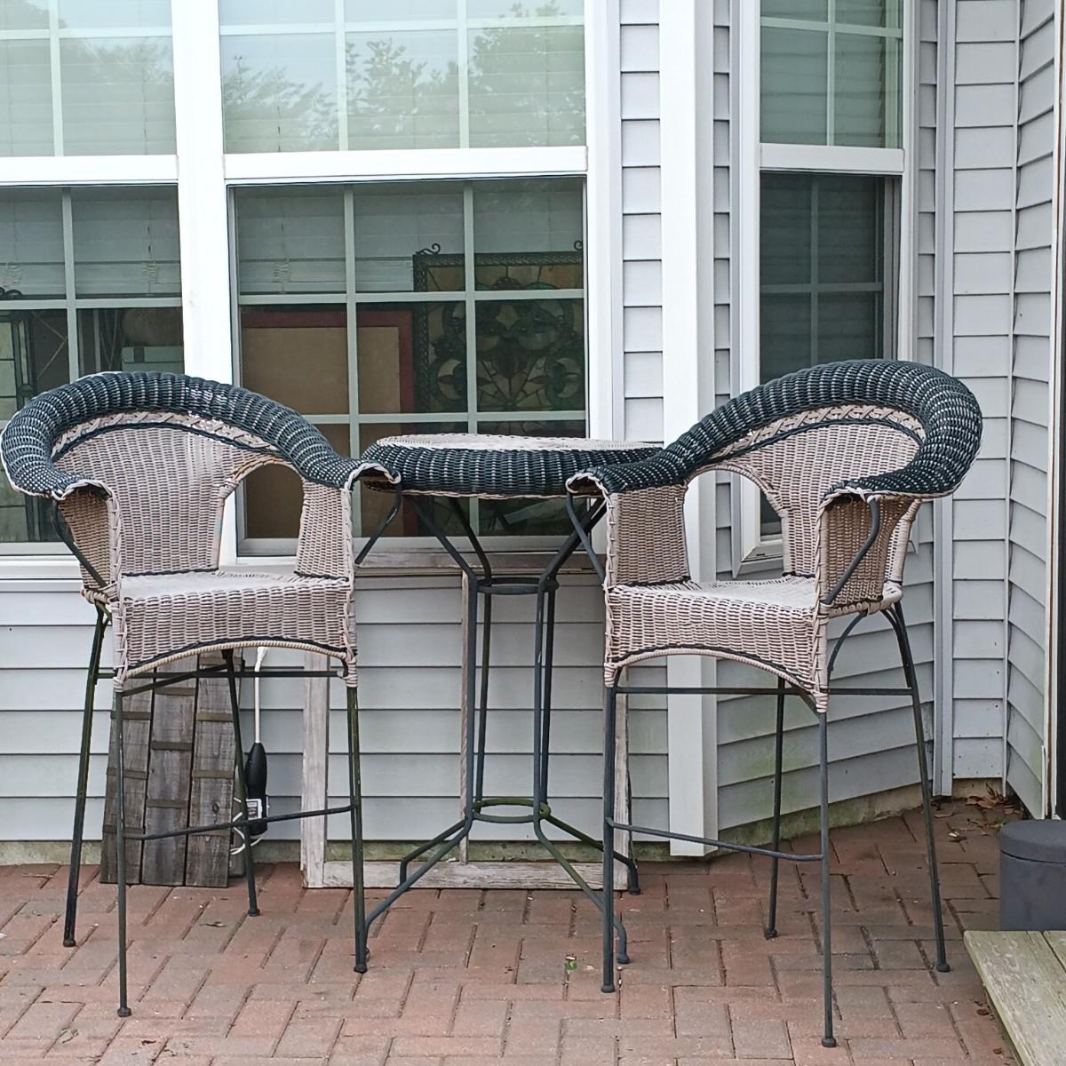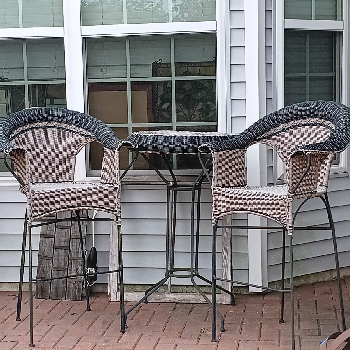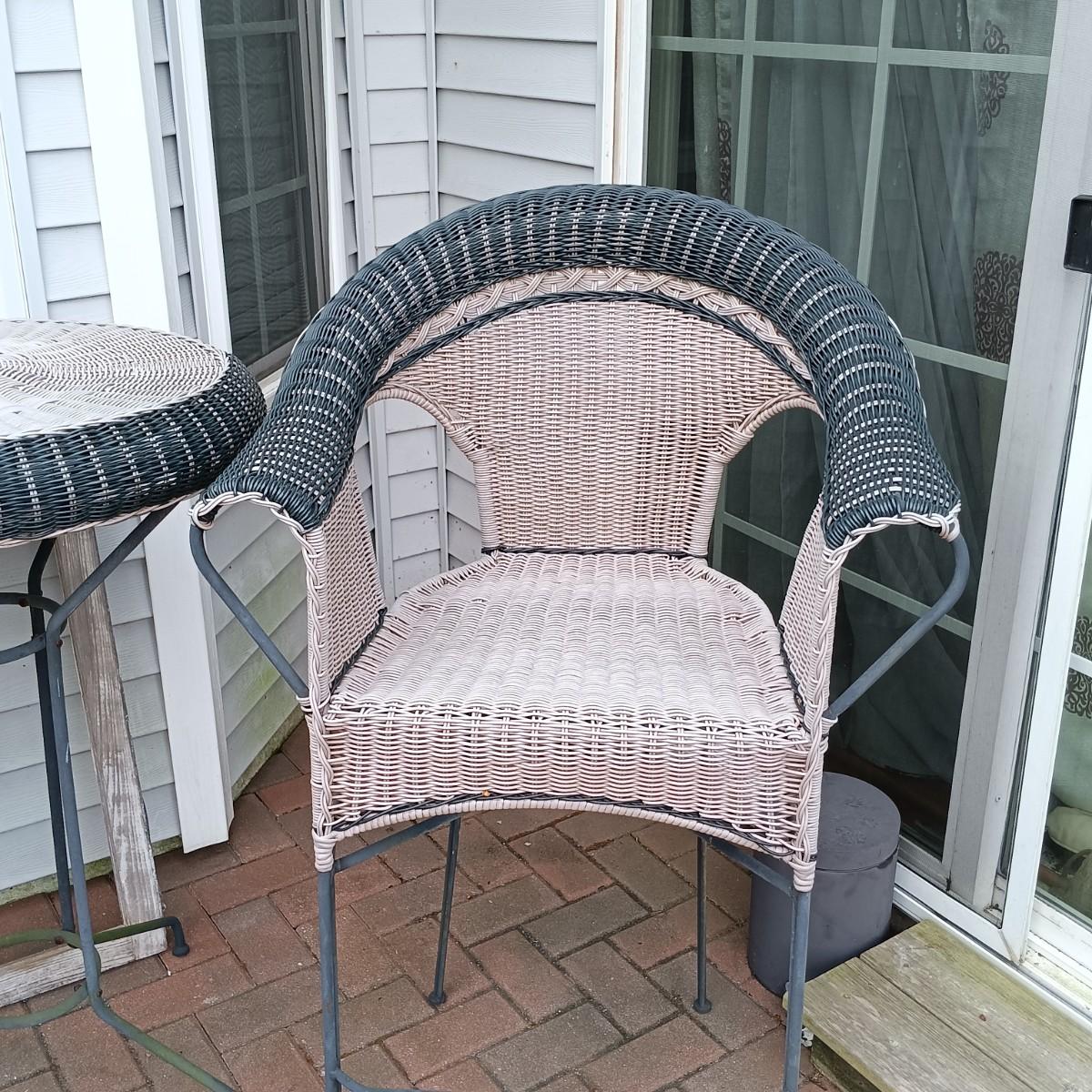 LOT 308: Wicker Style Bistro Patio Chairs and Table