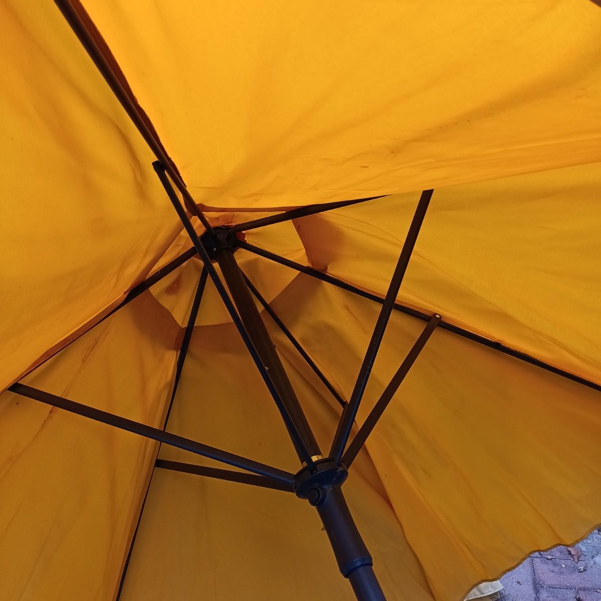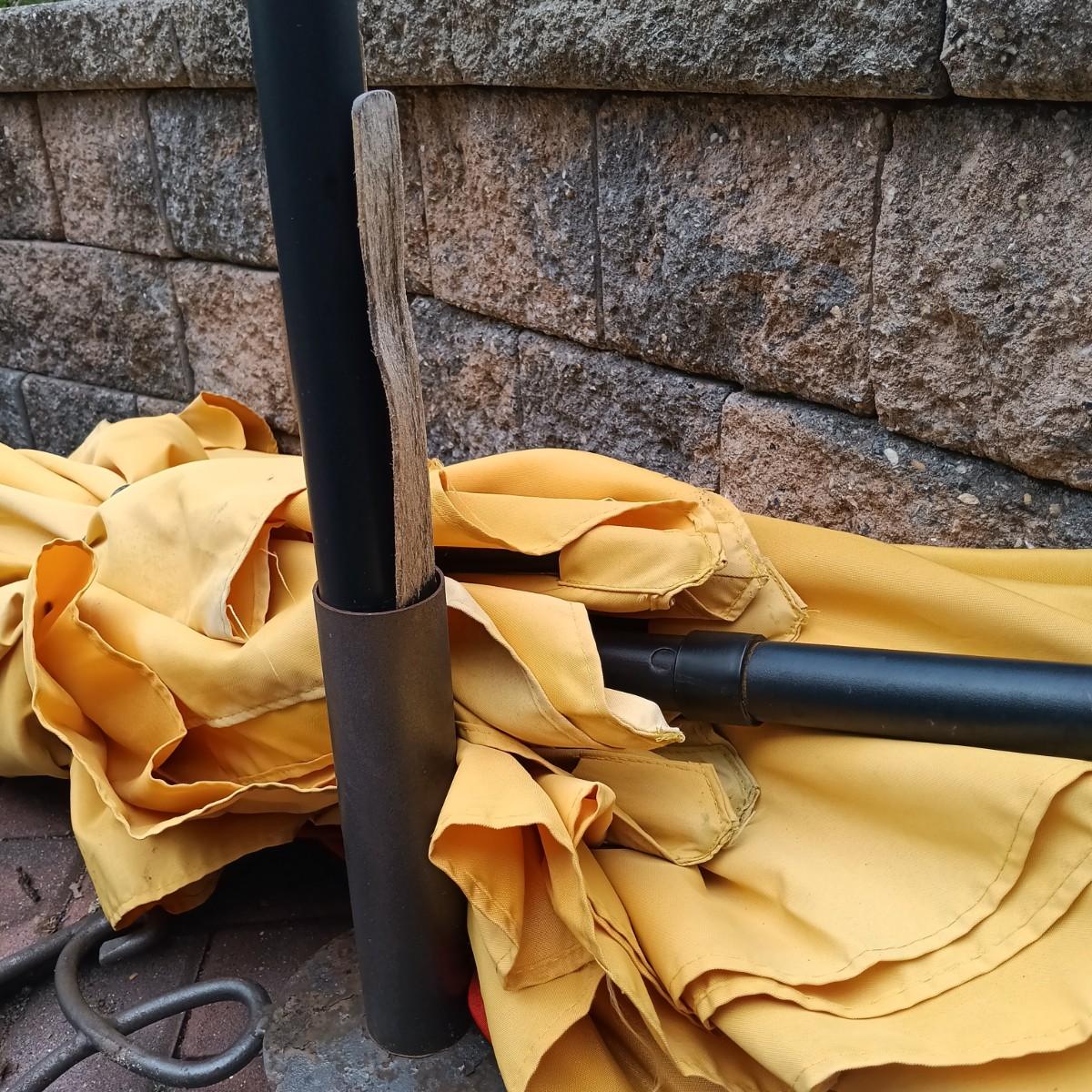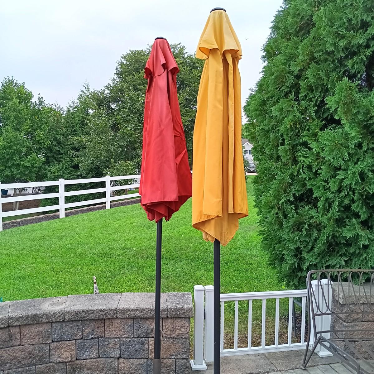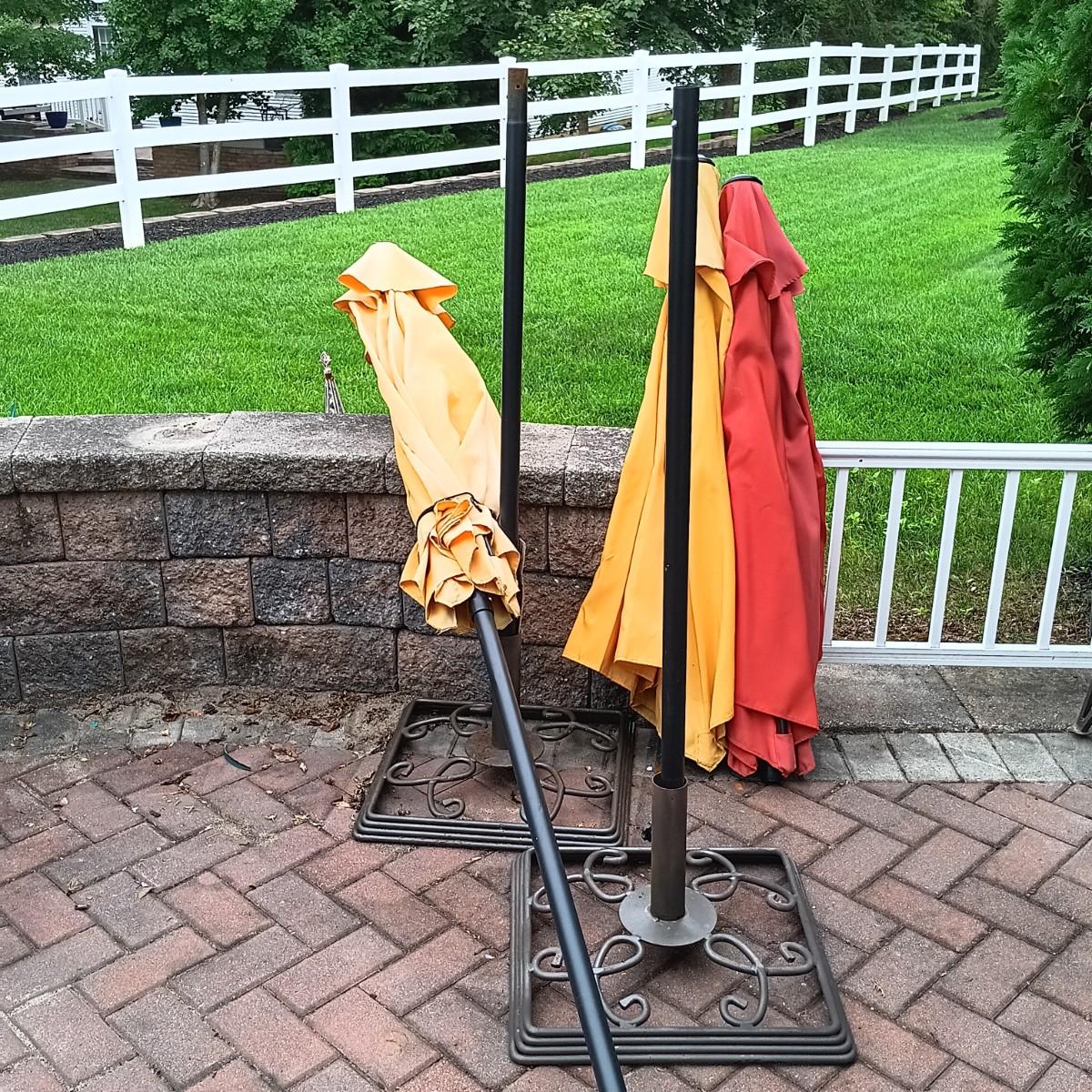 LOT 310: Set of 3 Patio Umbrellas and 2 Metal Stands