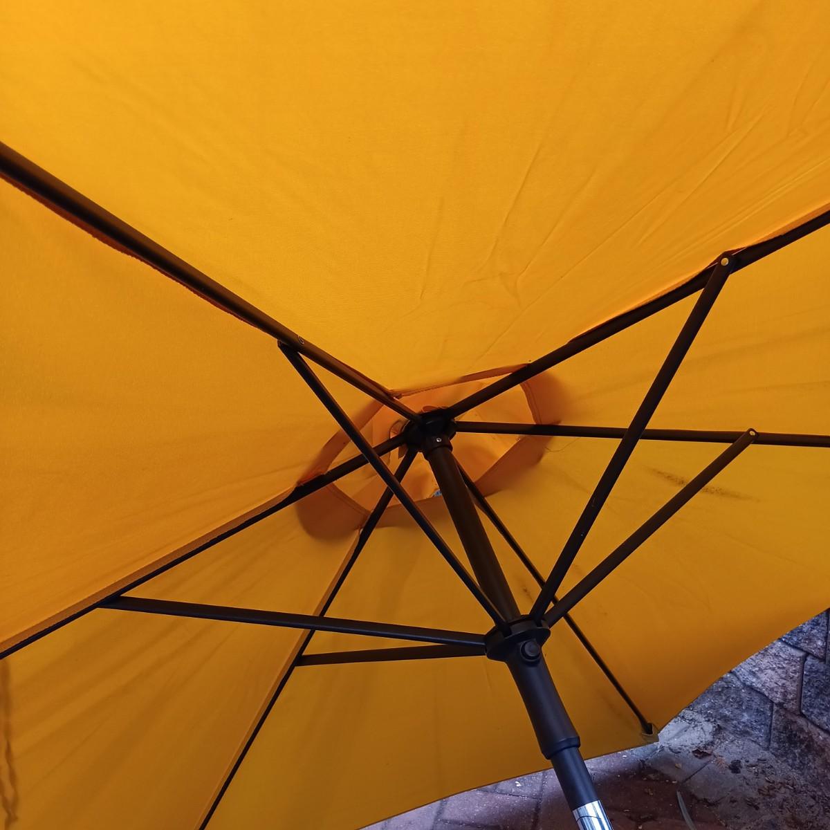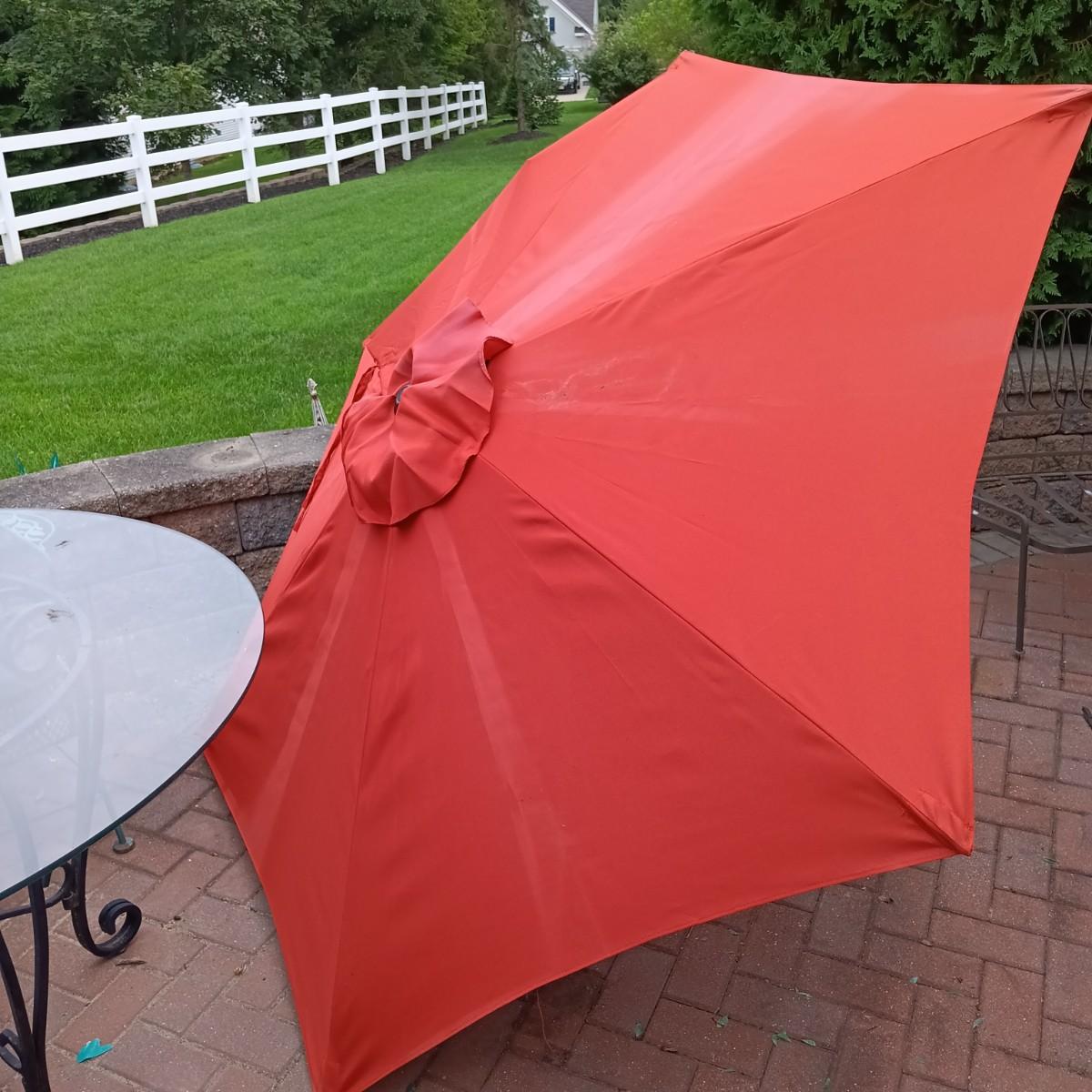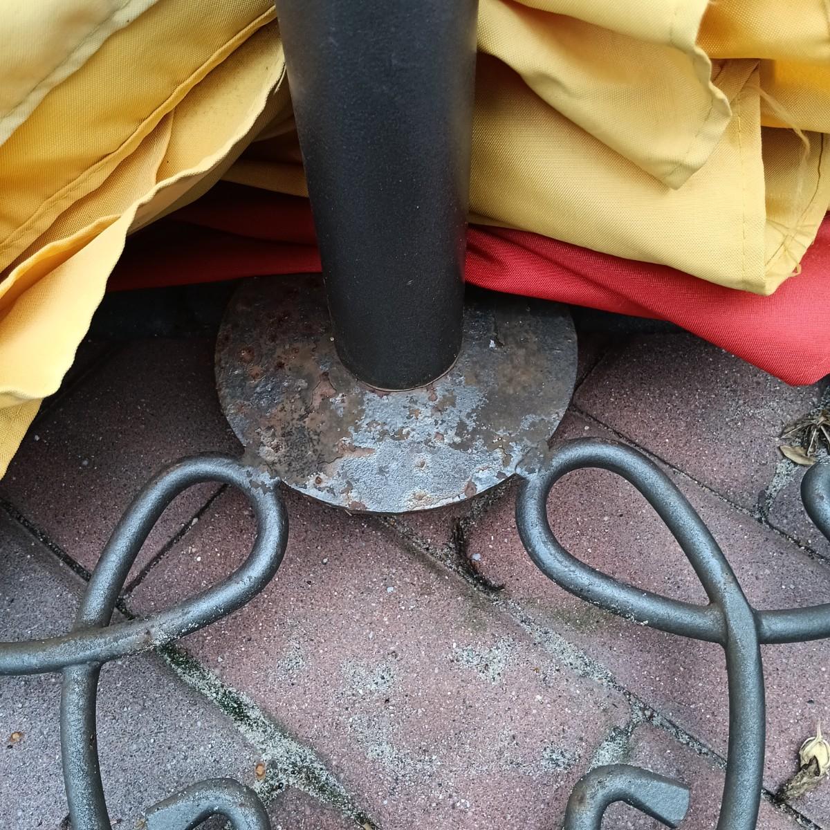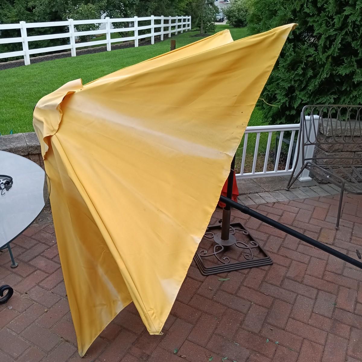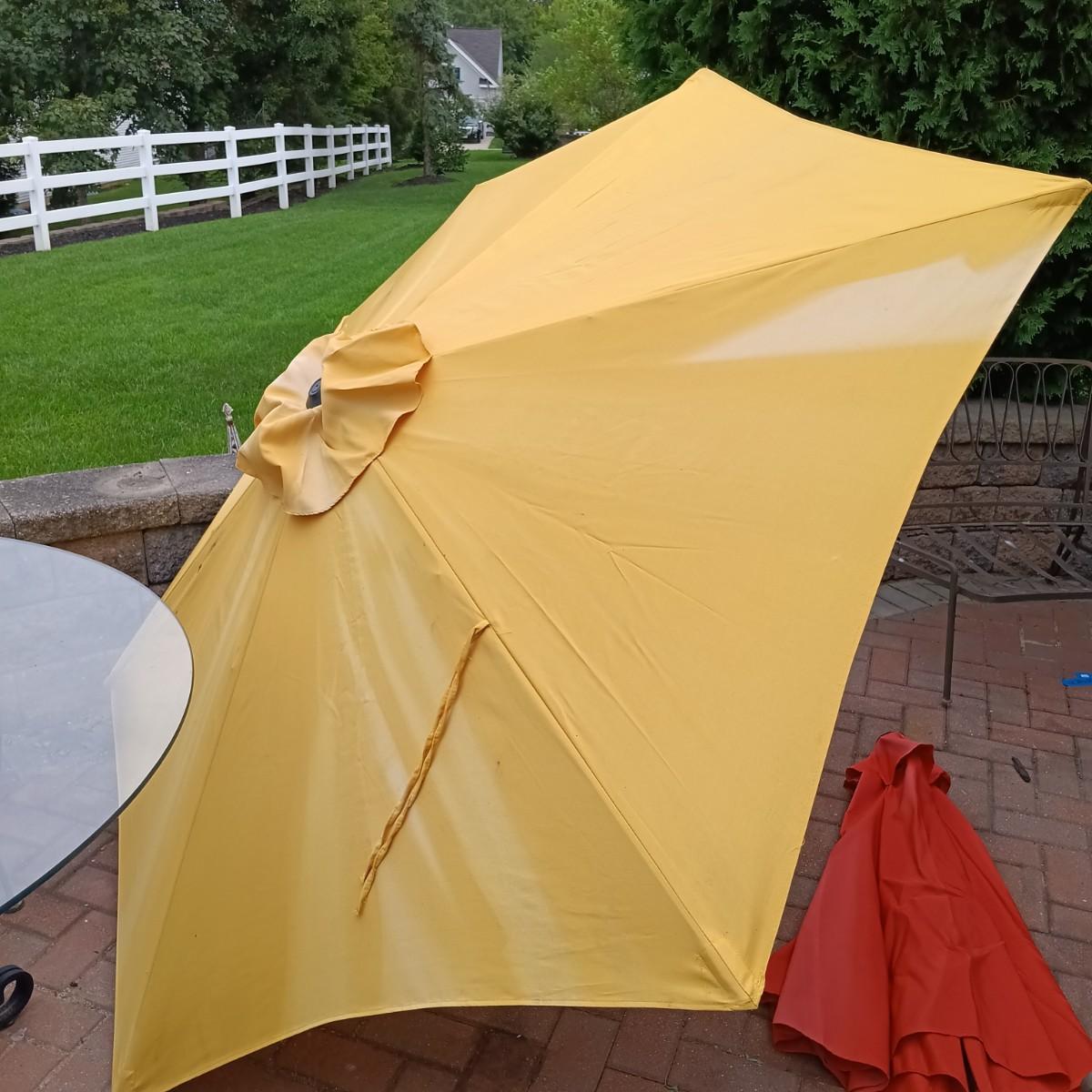 LOT 310: Set of 3 Patio Umbrellas and 2 Metal Stands