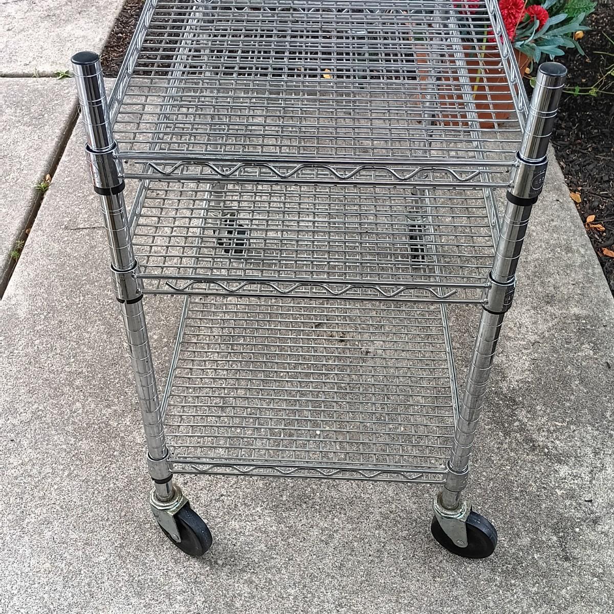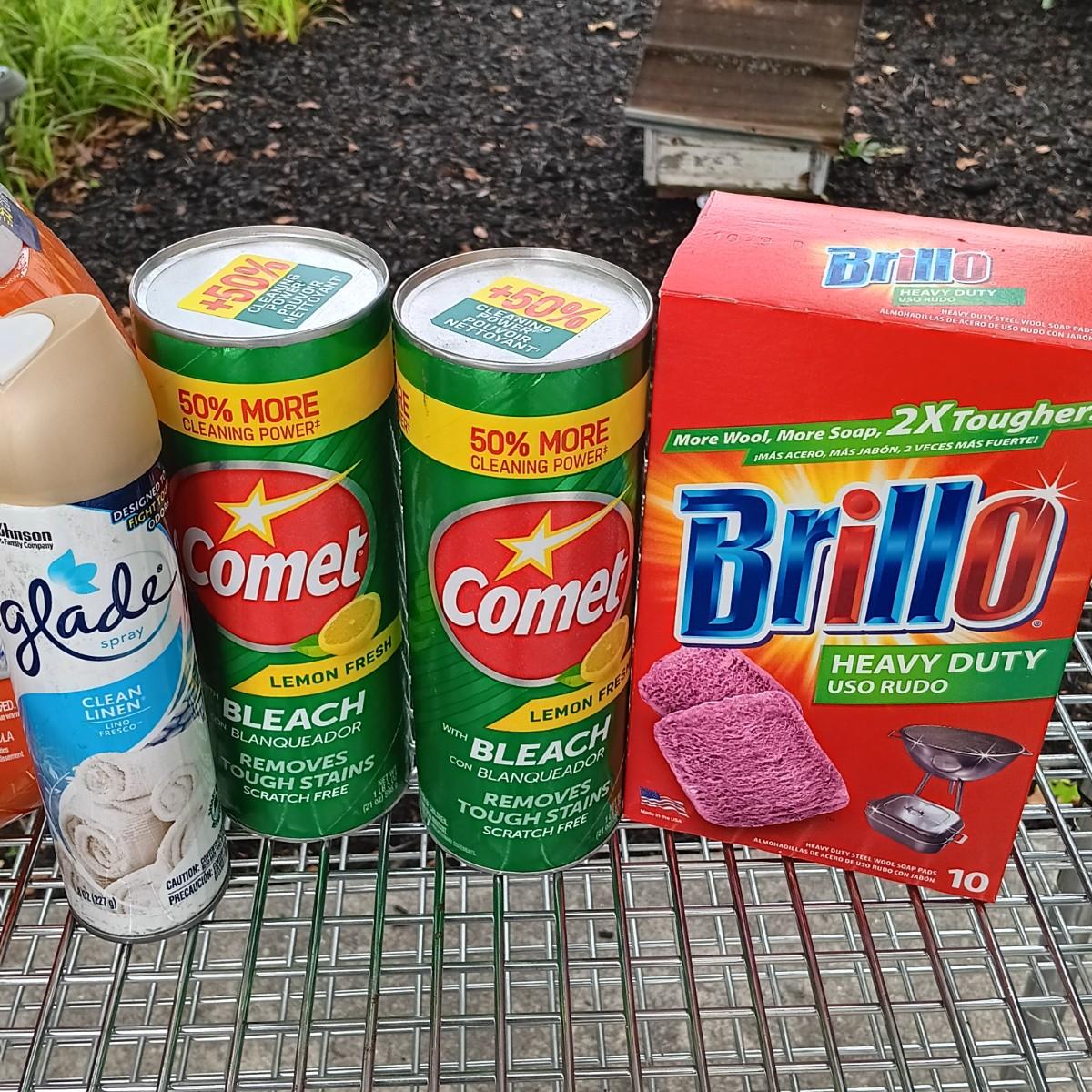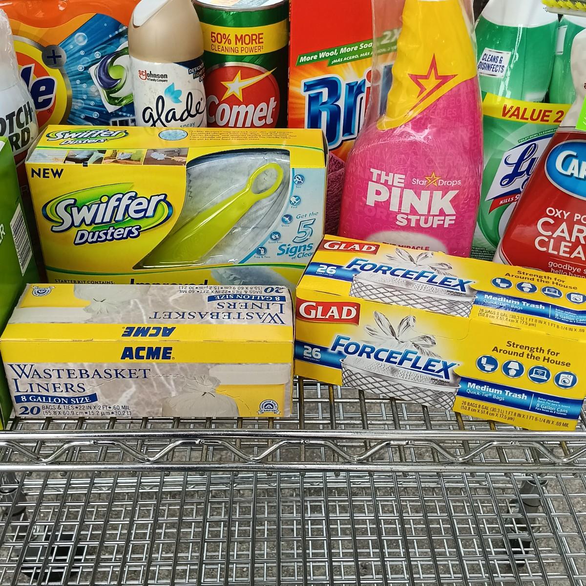 LOT 313: Rolling Metal Cart with New in Box / Old Stock Cleaning Products