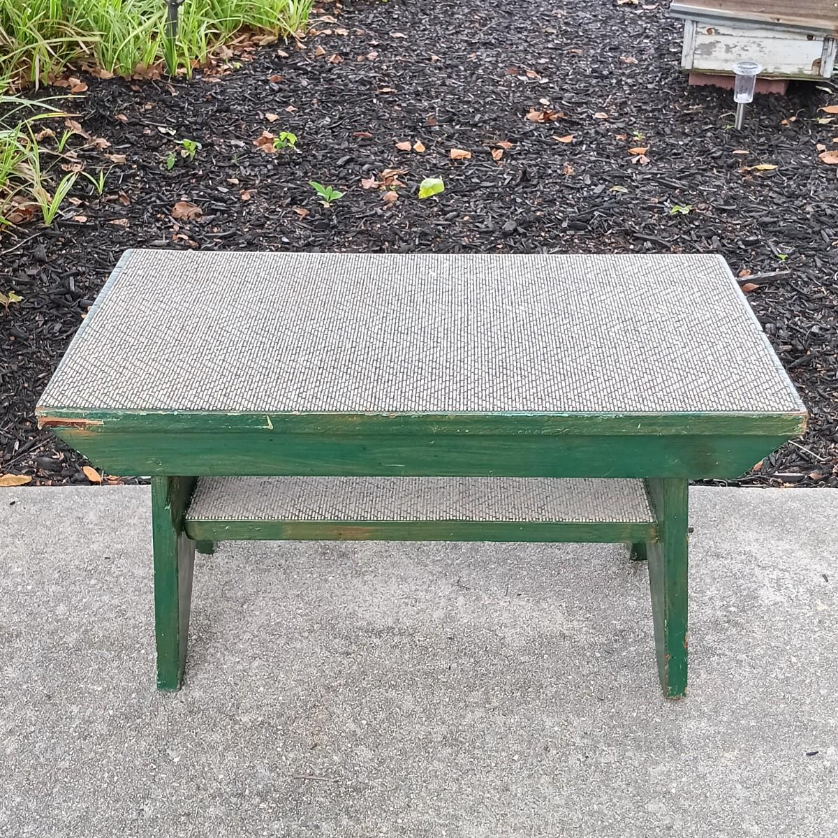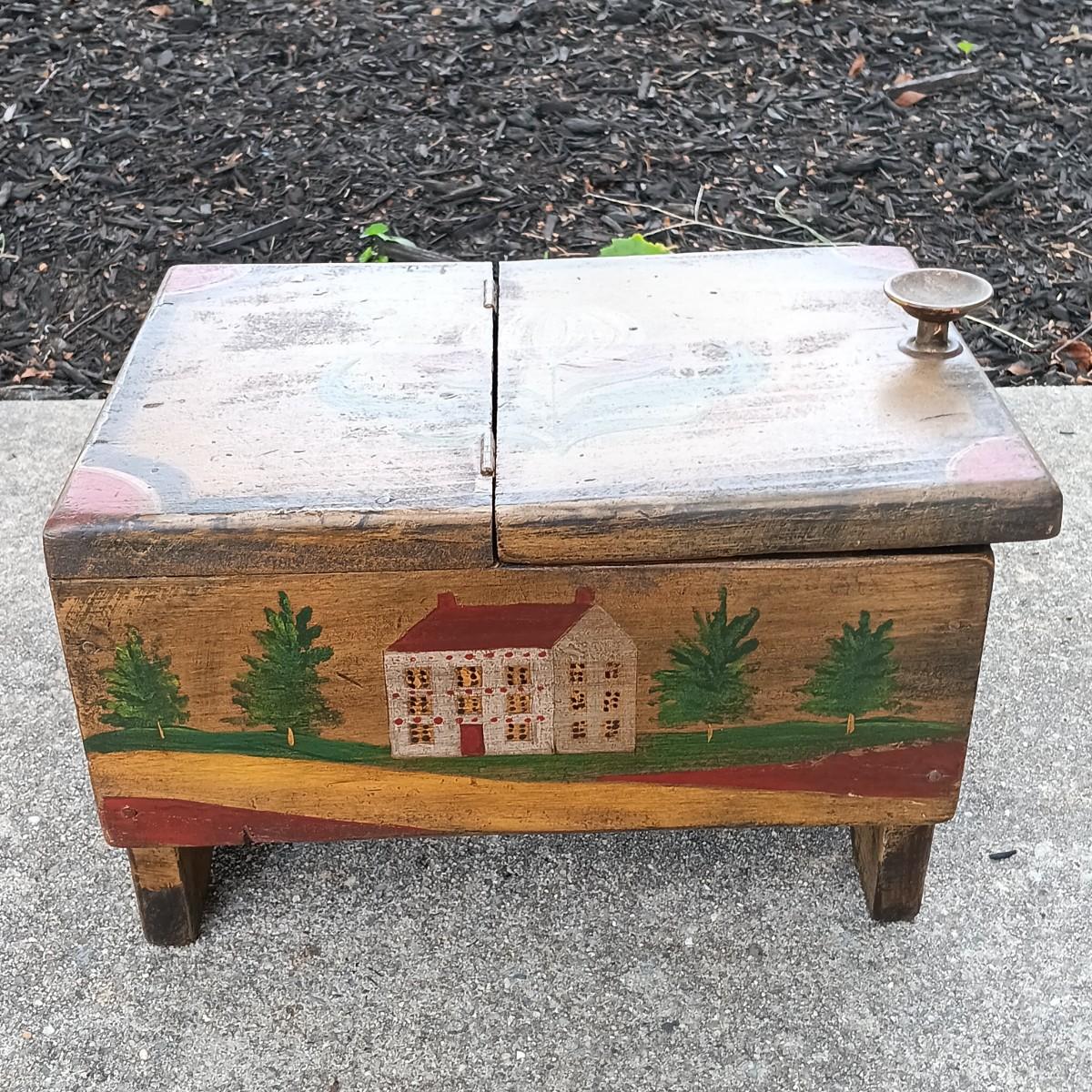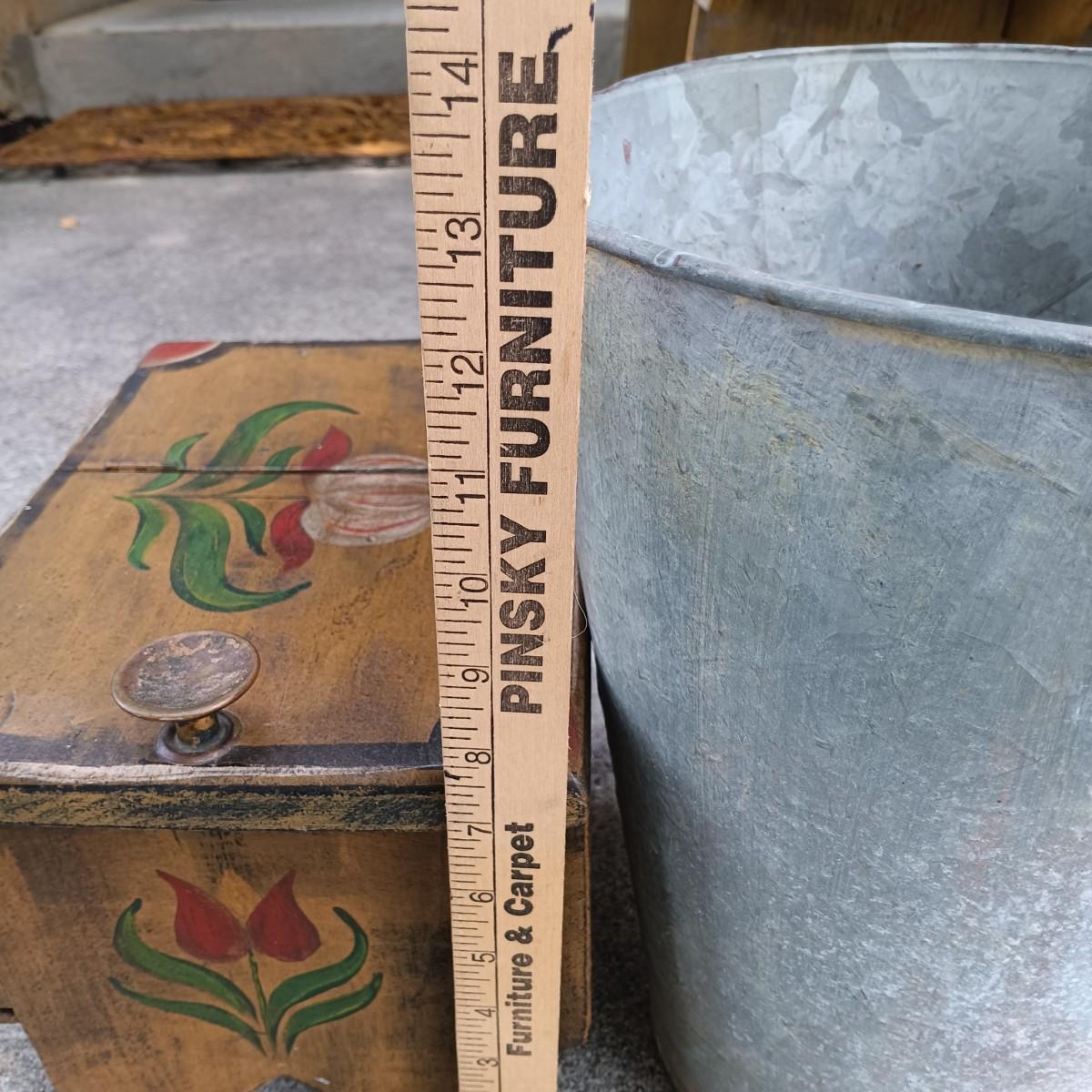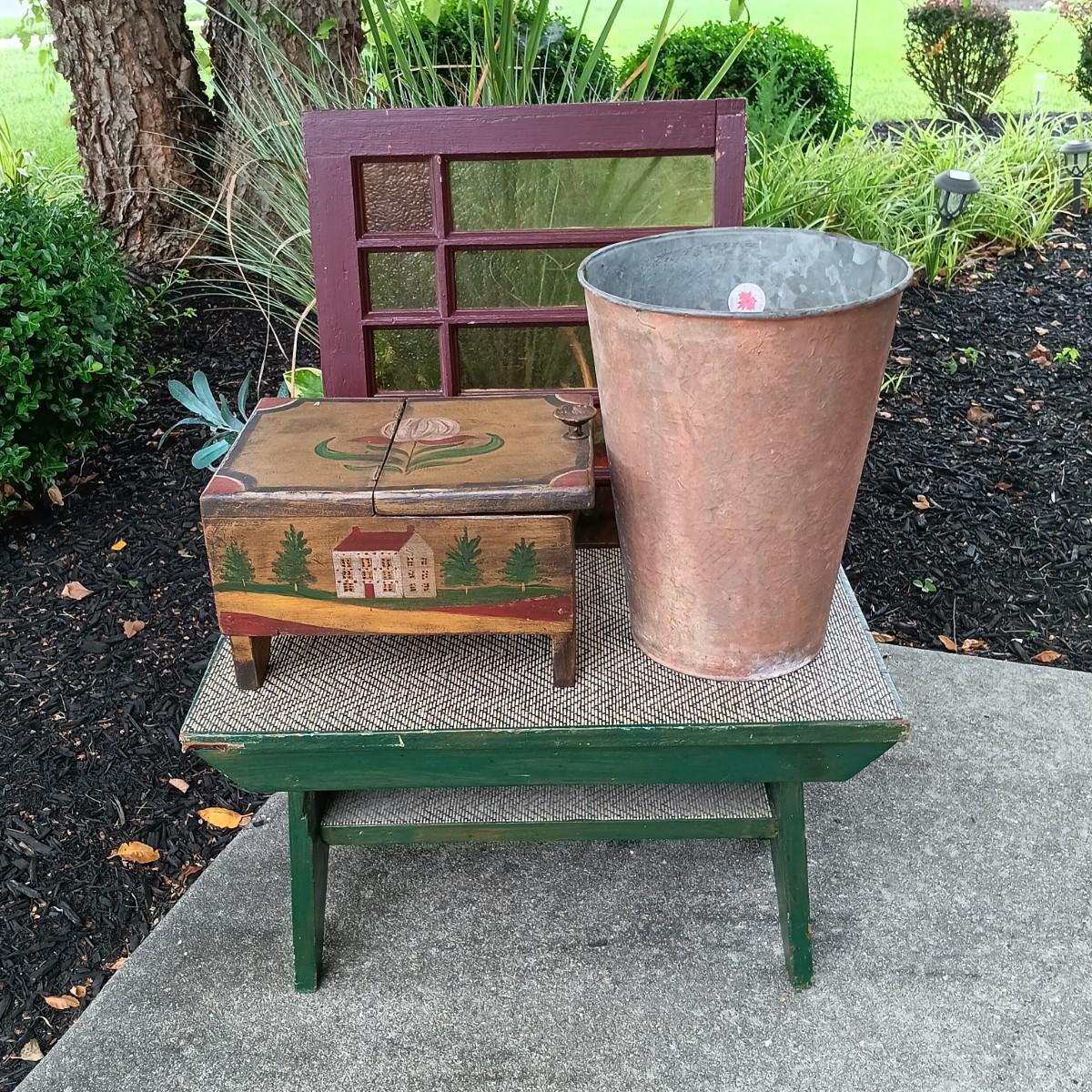 LOT 315: Vintage Metal Pail, Sewing Box, Step Stool and Window