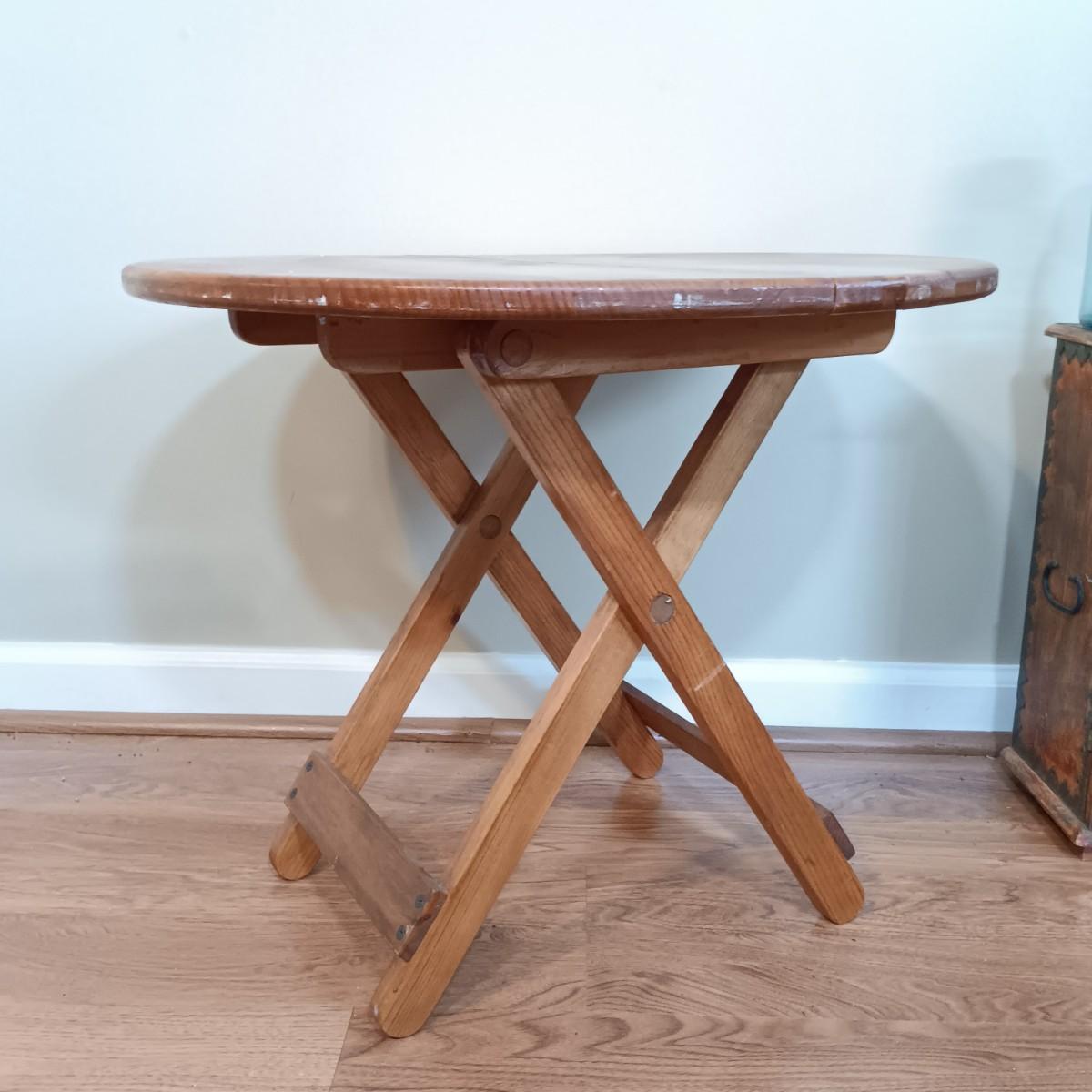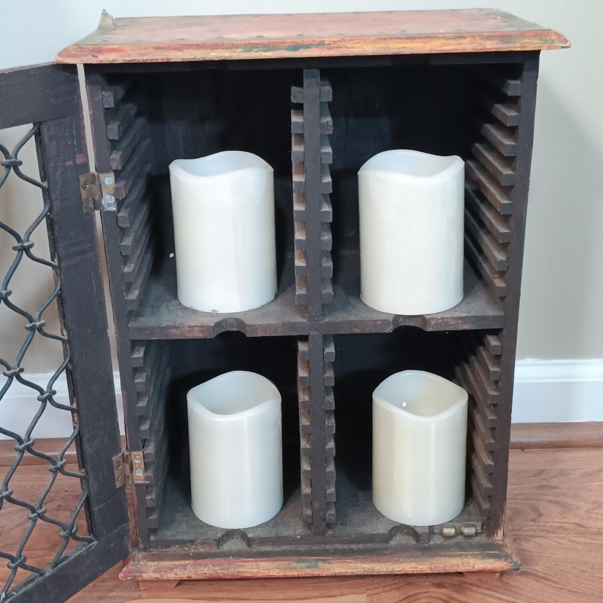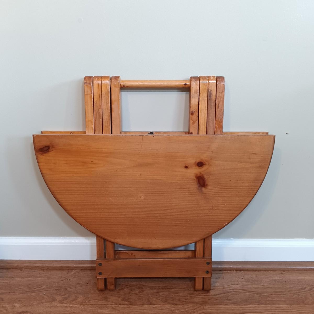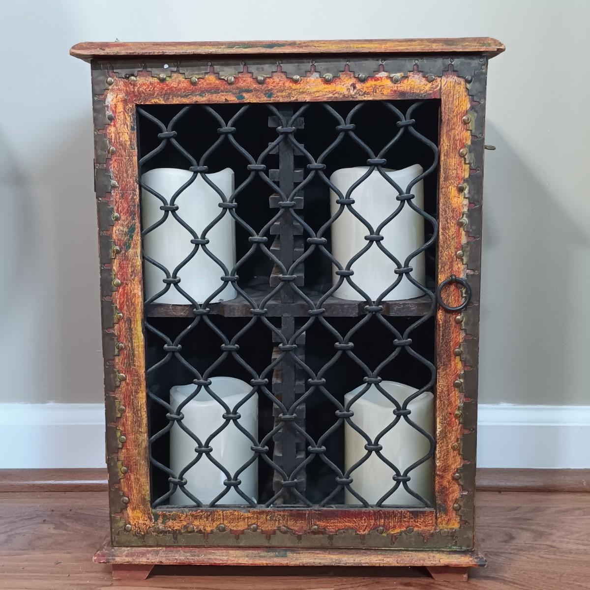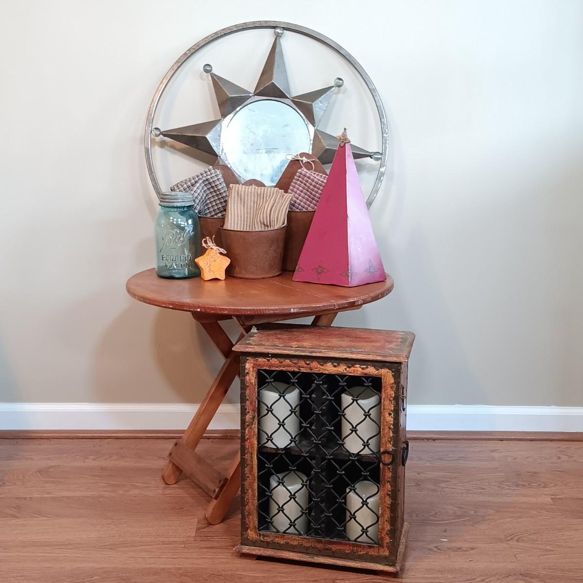LOT 320: Small Wood Cabinet w/ Foldable Side Table, Mirror & More