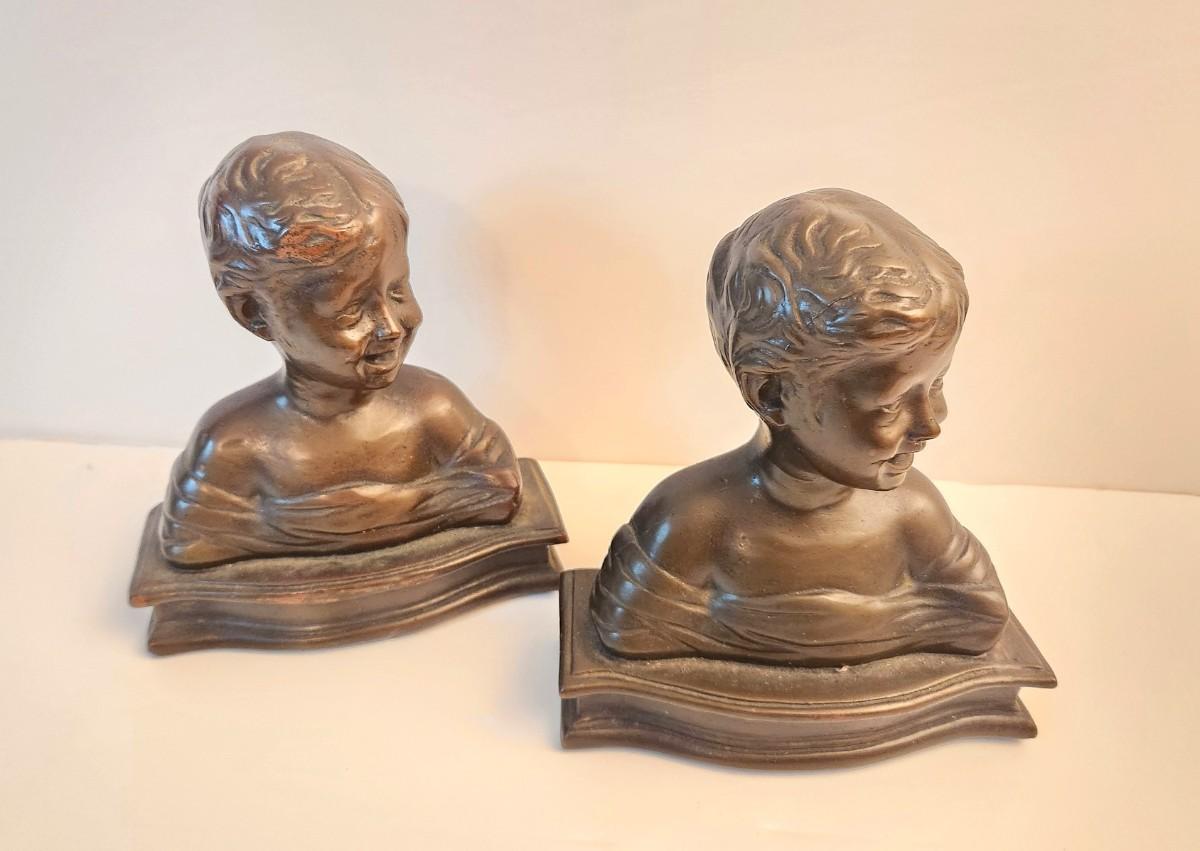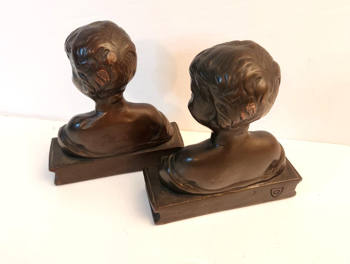 Lot #105D Vintage Armour Bronze "Laughing Boy" Bookends - rare
