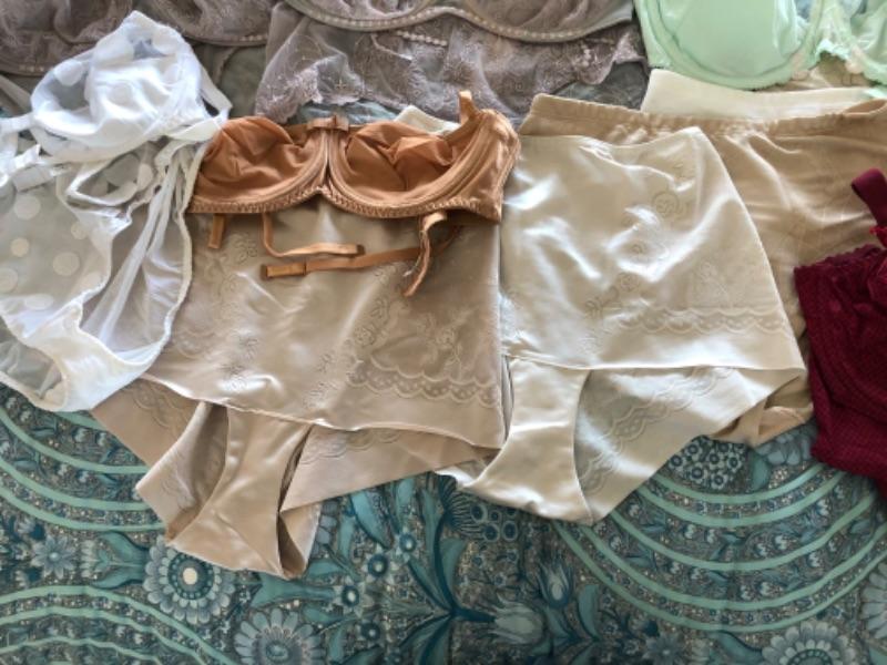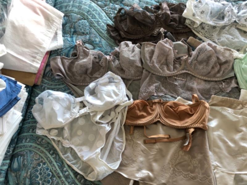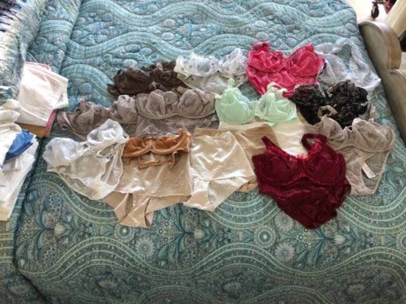 Lot 105U. Nine bra and pantie sets, 1 teddy, 5 briefs, 2 single bras, size UK 38 or US 38 or UK40 or US 40D, panties are XL--$125