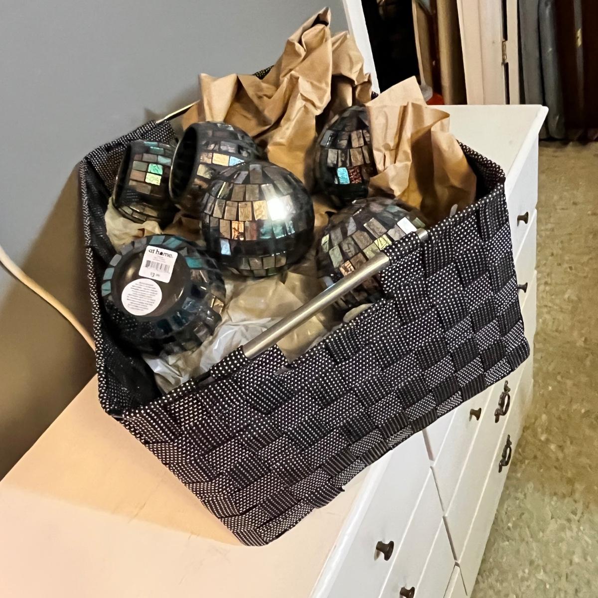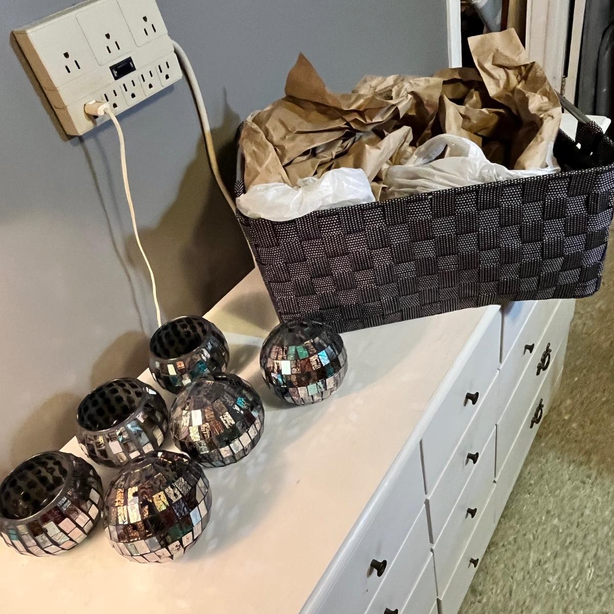 8. Sizes are approximate, you can estimate as our lot number signs are 3.5" long. Also we use an 18" & 36" measuring stick.  We try on certain things to do actual measurements. No guarantees on actual sizes, we try our best!