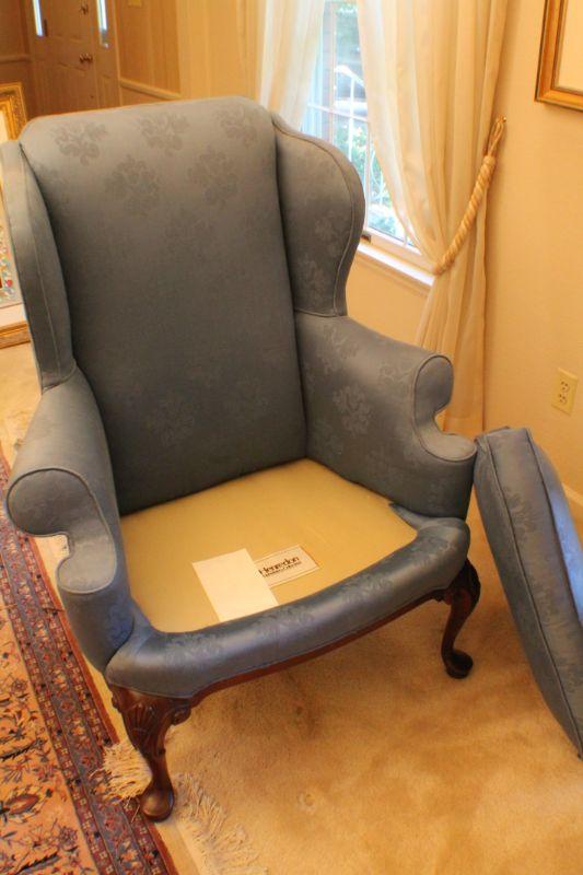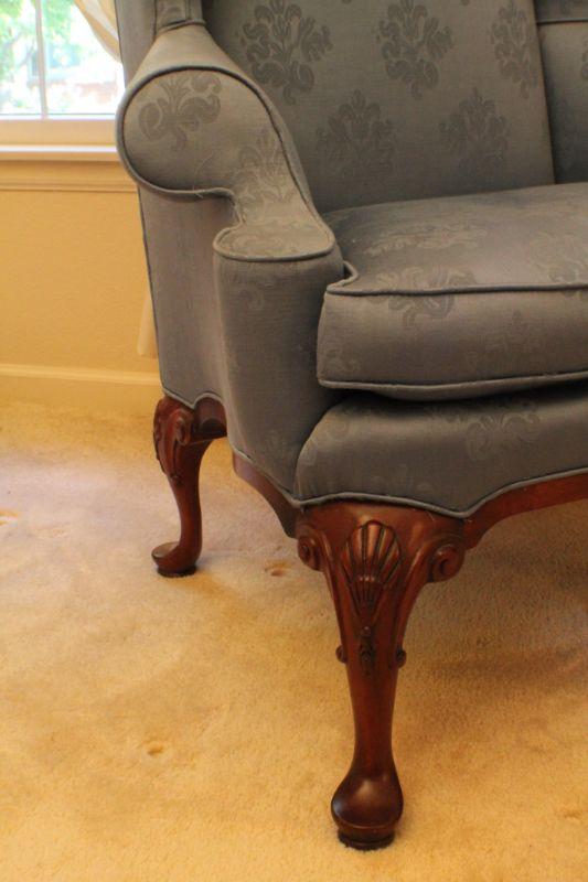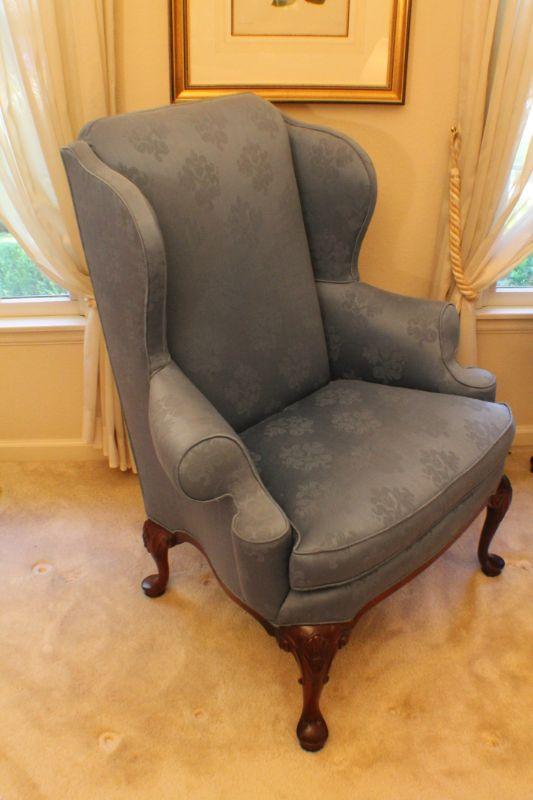LOT #106: Vintage Blue HENREDONâ„¢ Upholstered Chair w/ Claw Feet #2