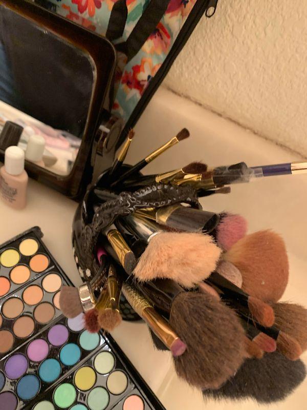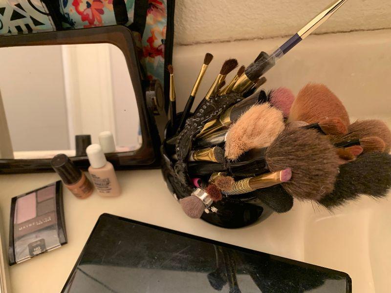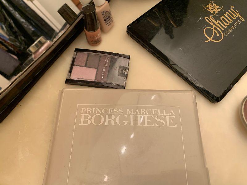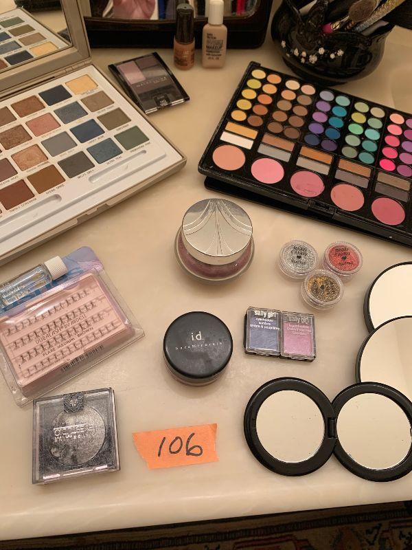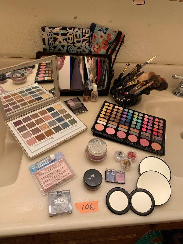 Makeup: 2 eye shadow kits, Borghese, Shany, Brushes approx. 30, mirrors, makeup bags, and more!!