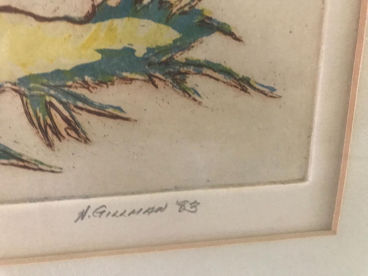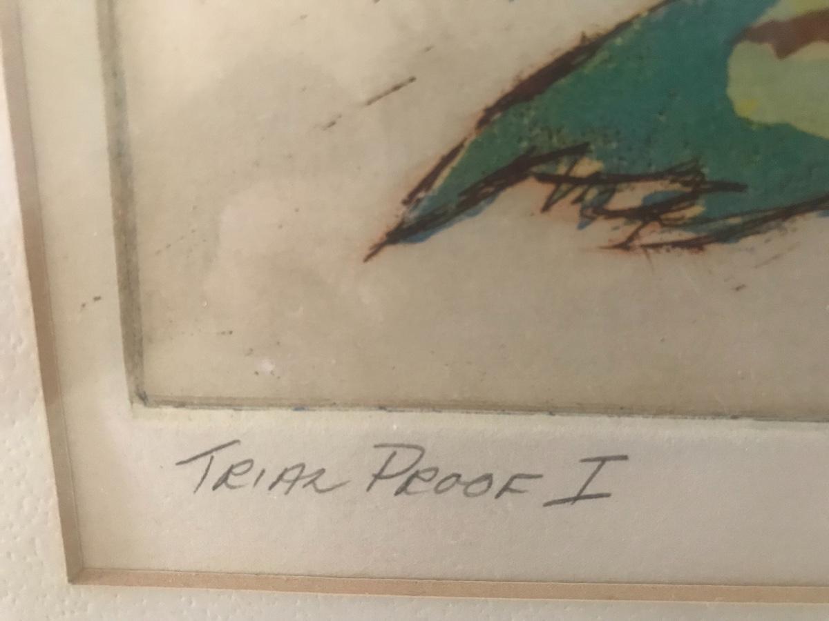Lot 106:  Etching & Aquatint Framed "Trouble" Artwork, Vintage, Artist Signed