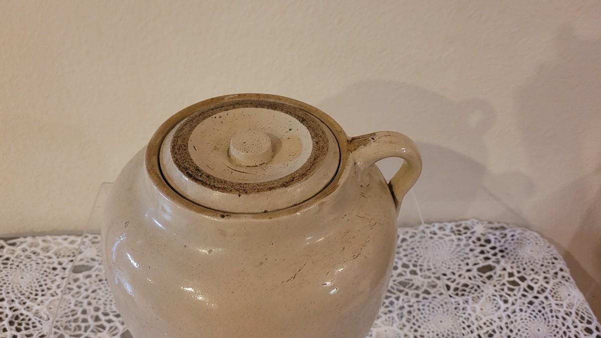 Lot 106: Antique Stoneware Crock with Handle and Lid