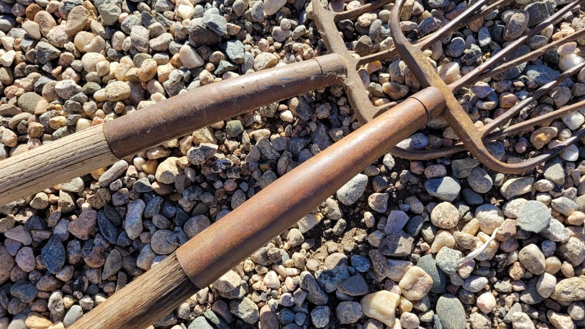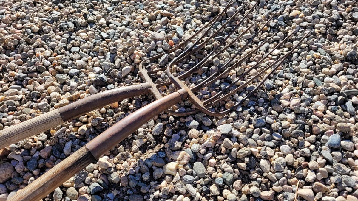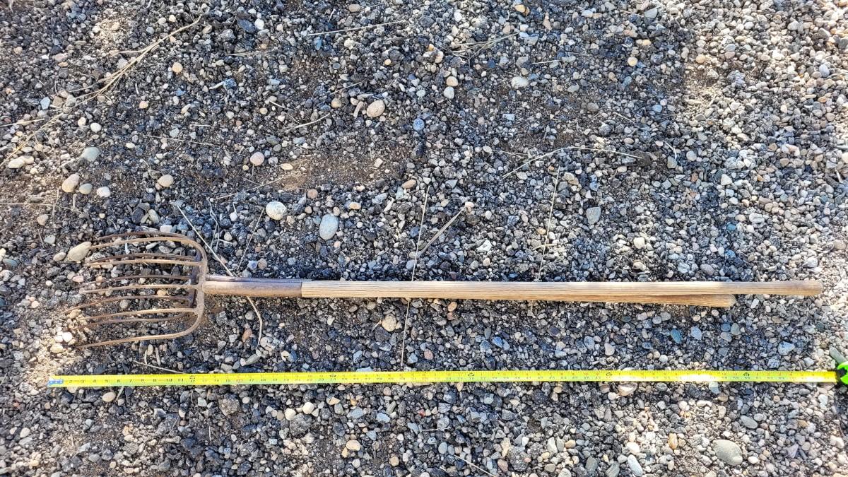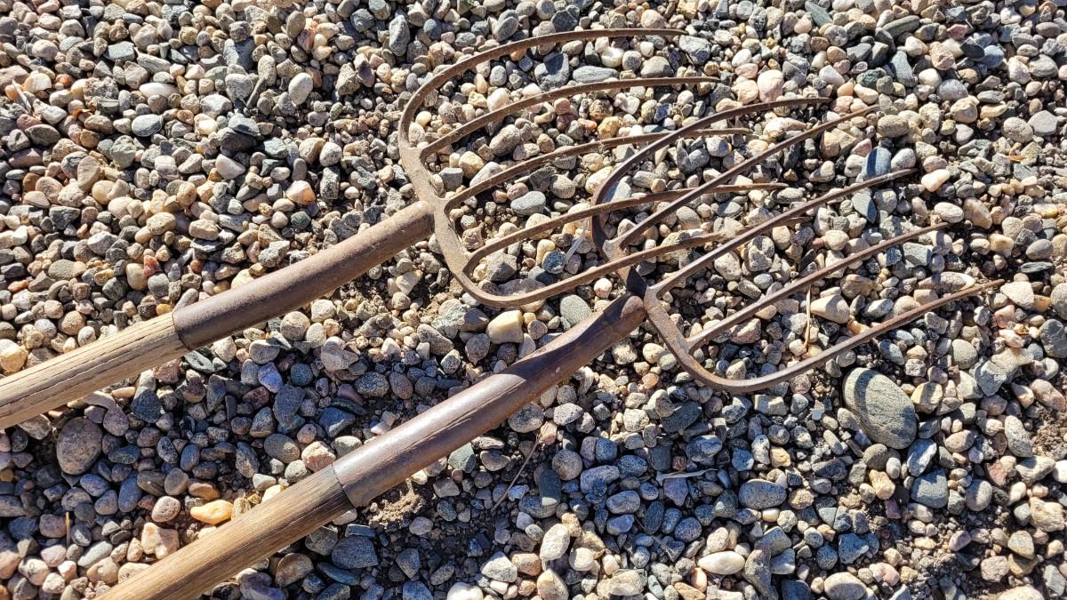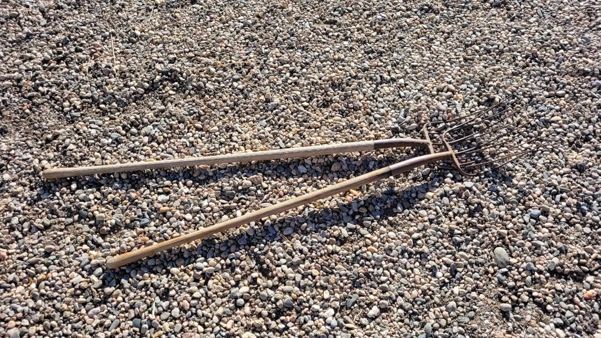 Lot 106: (2) Antique Vintage Wood Handle Pitchforks Halloween Farm and Garden