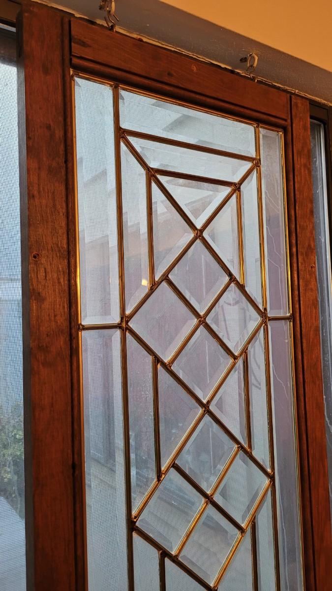 Lot 106: Antique Hanging Lead Beveled Glass Window Panel