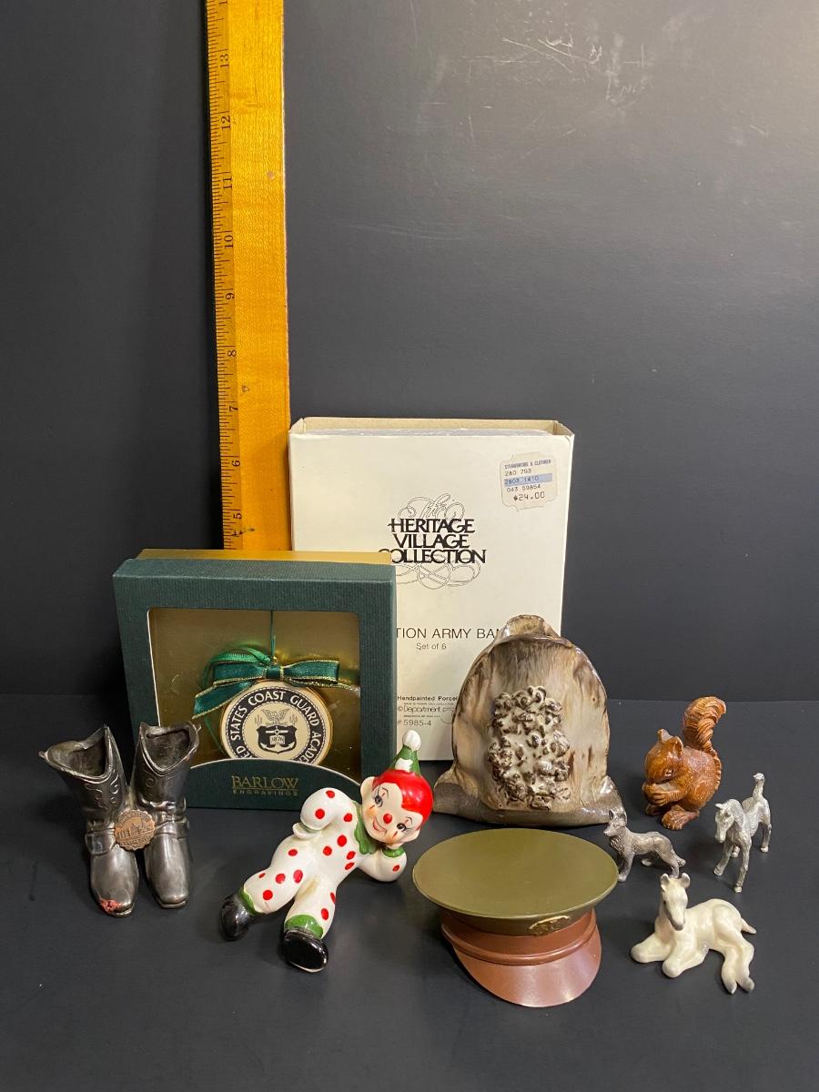 Mixed lot of curated fines. Barlow engravings United States Coast Guard ornament. Numbered handmade Lava Ceramics. Department 56 Salvation Army Band collection. Please see all pictures as they are the best representation of the items. The pictures show condition, measurements if taken, and what is included in the lot. Due to the large amount that we photograph and the time frame, we are not always able to take measurements. All items unless noted, are pre-owned and have been used. If you purchased furniture, you must bring help. We do not allow one person to carry large furniture out on their own. Bring help, tools and a truck for the safety of our client’s homes, and your personal safety. Company policy. Thank you.