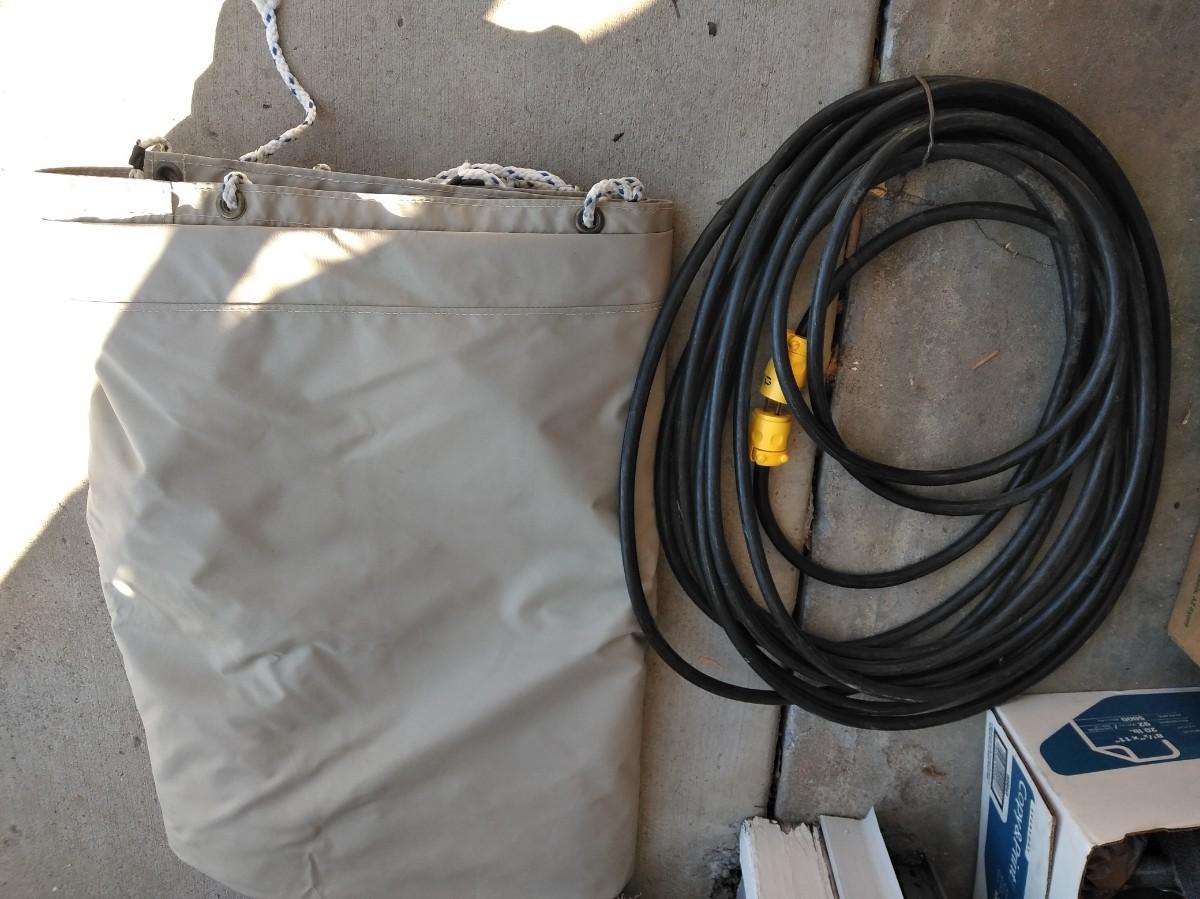 LOT 106 HEAVY-DUTY EXTENSION CORD AND A HEAVY PLASTIC TARP