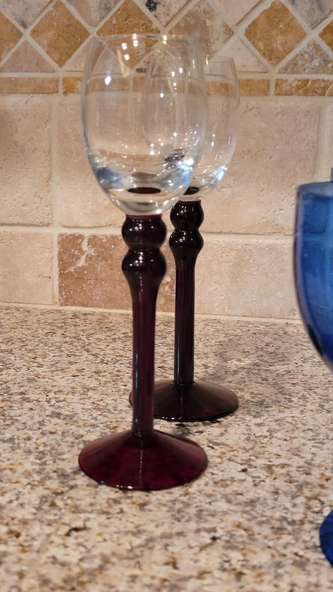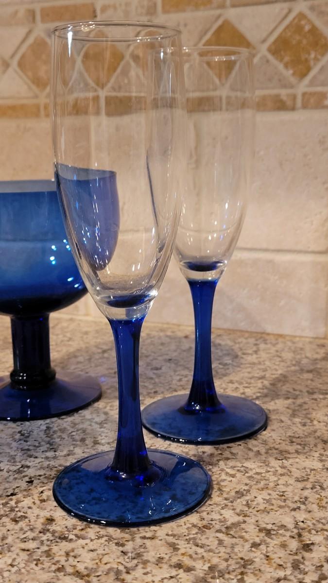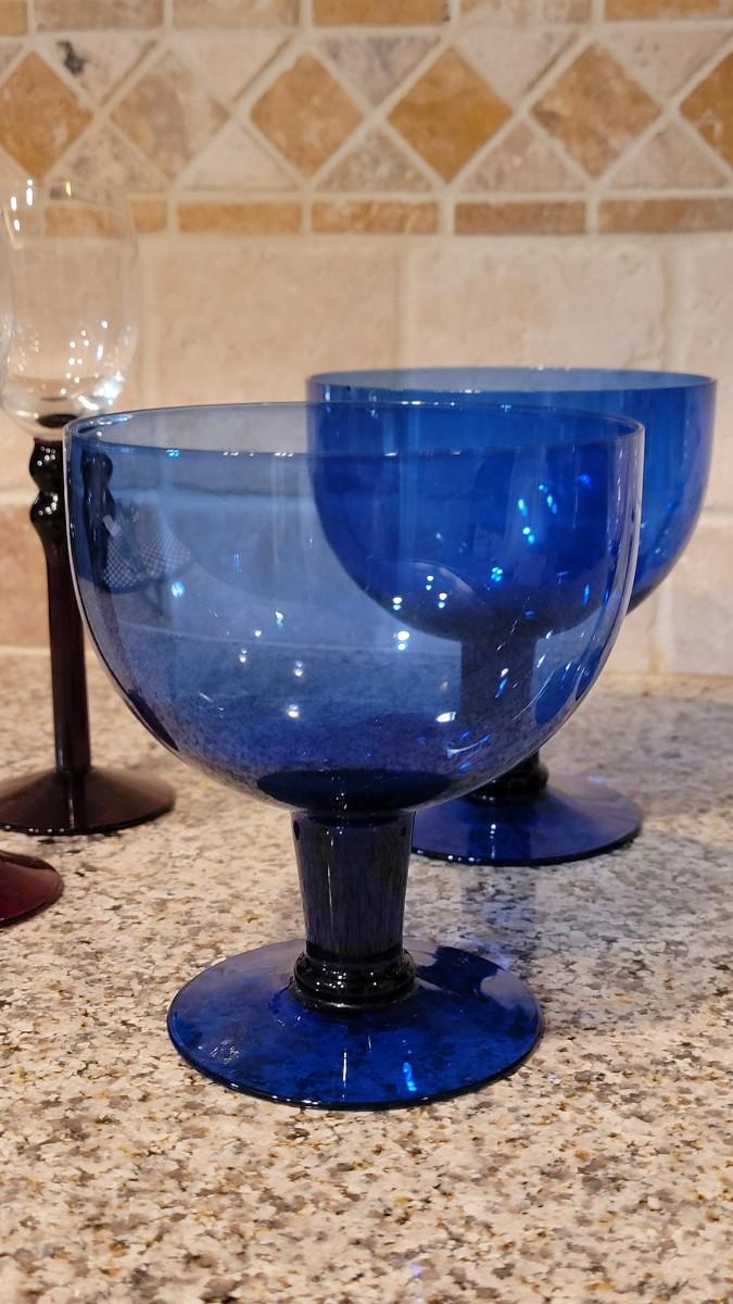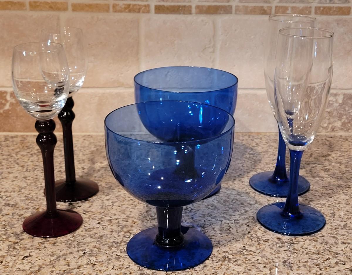 2 Red Stem, 2 Blue Stem, 2 Blue Margarita Glasses