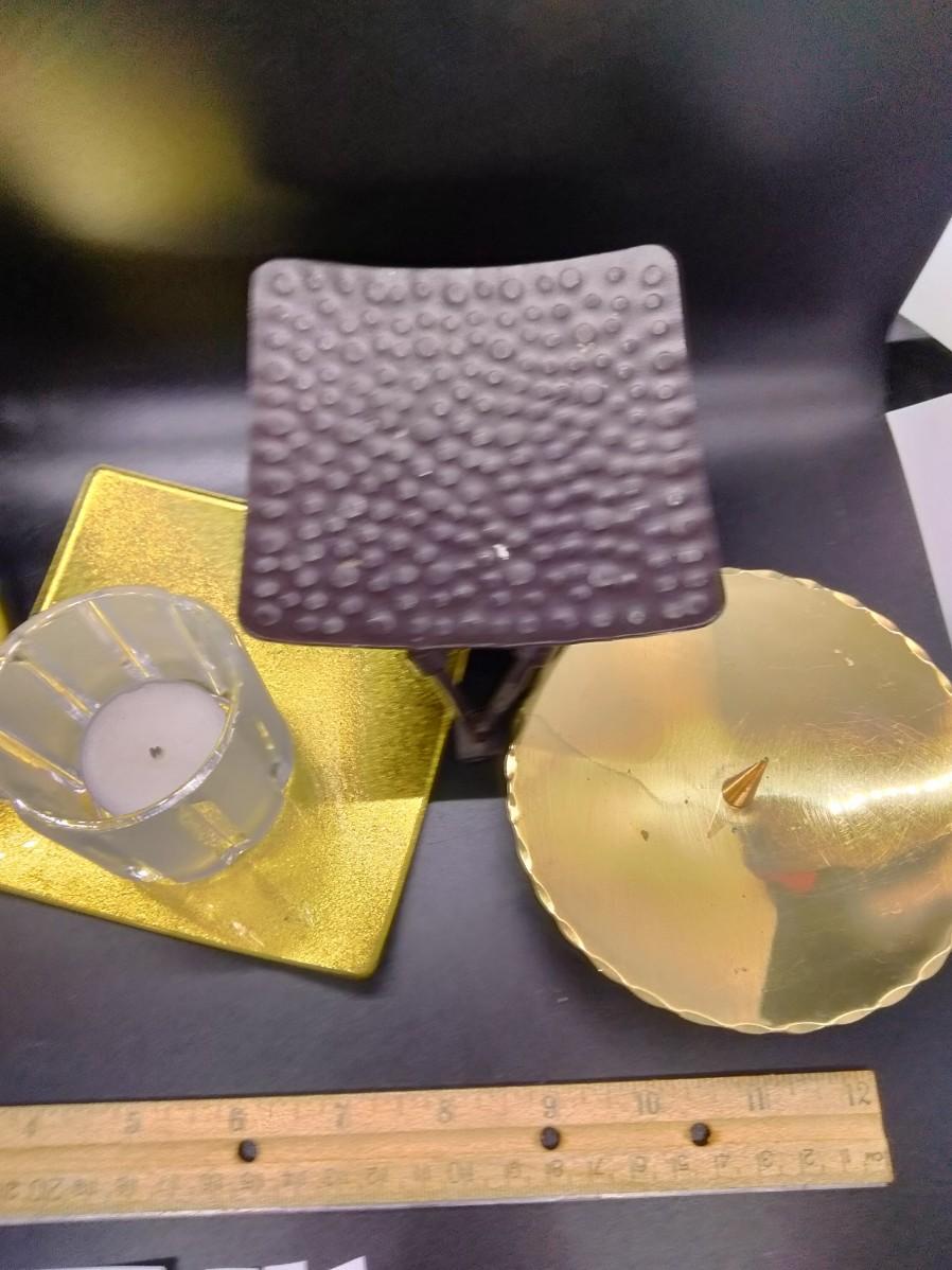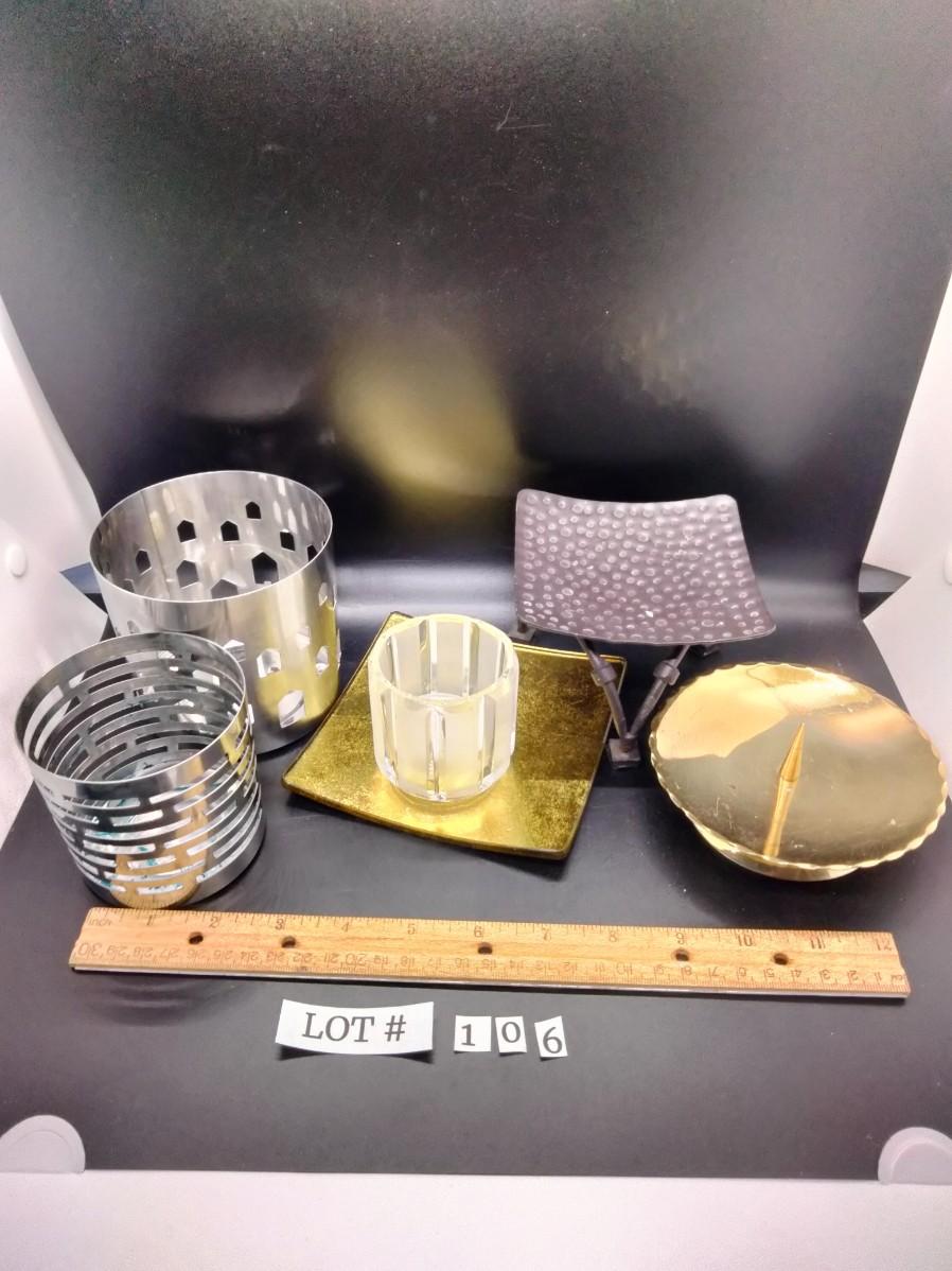 Assorted metal and glass candle holders