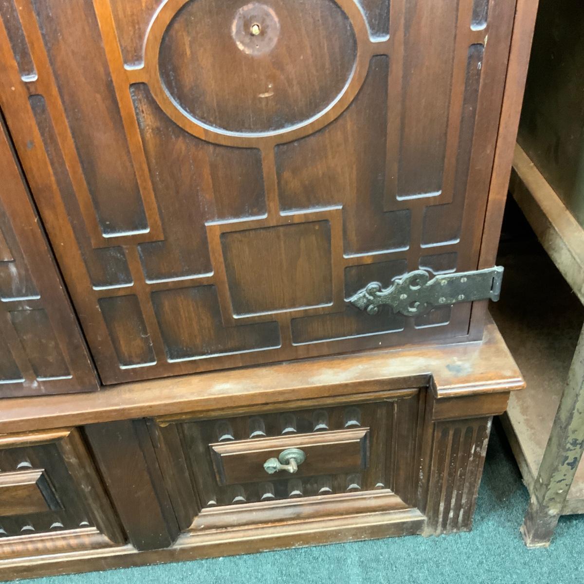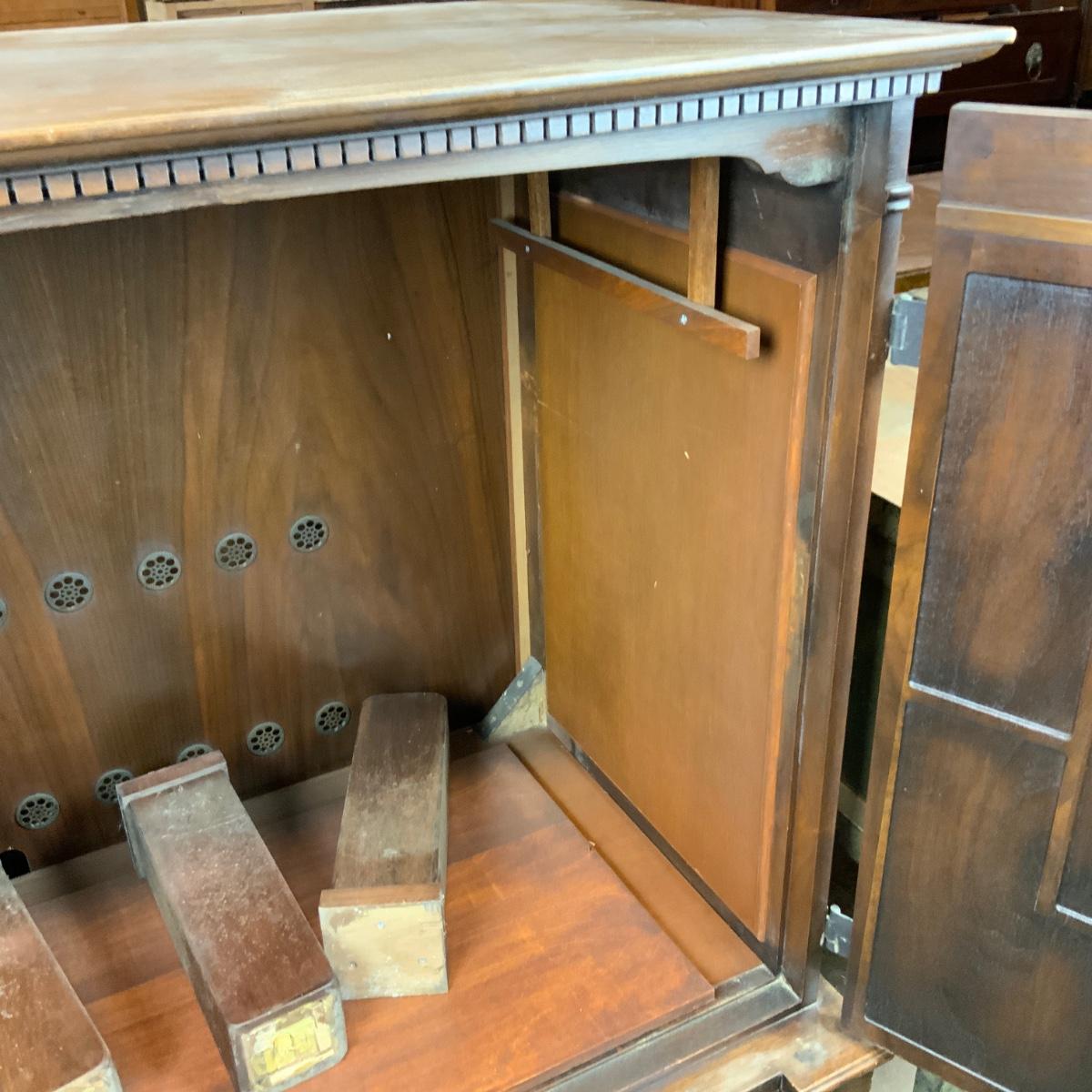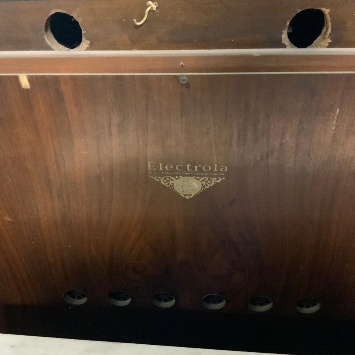 Attractive Electrola Radio Cabinet with excellent design. //::\\ Please see photos for details and condition. No attempt has been made to hide any imperfections. All items listed in this auction are warehouse items, and need to be cleaned. A majority of the items need restoration as well. All items are sold AS IS and WITHOUT GUARANTEE. If you are uncertain about an item, DO NOT BID. Due to the nature of this online auction in-person inspection is HIGHLY recommended. All Sales are FINAL. Pick Up Times are FIRM. Please confirm with your own schedule that you can pick up in the scheduled times listed in the Terms and Conditions. Any questions please message the auctioneer. DO NOT Contact The Harp Gallery.