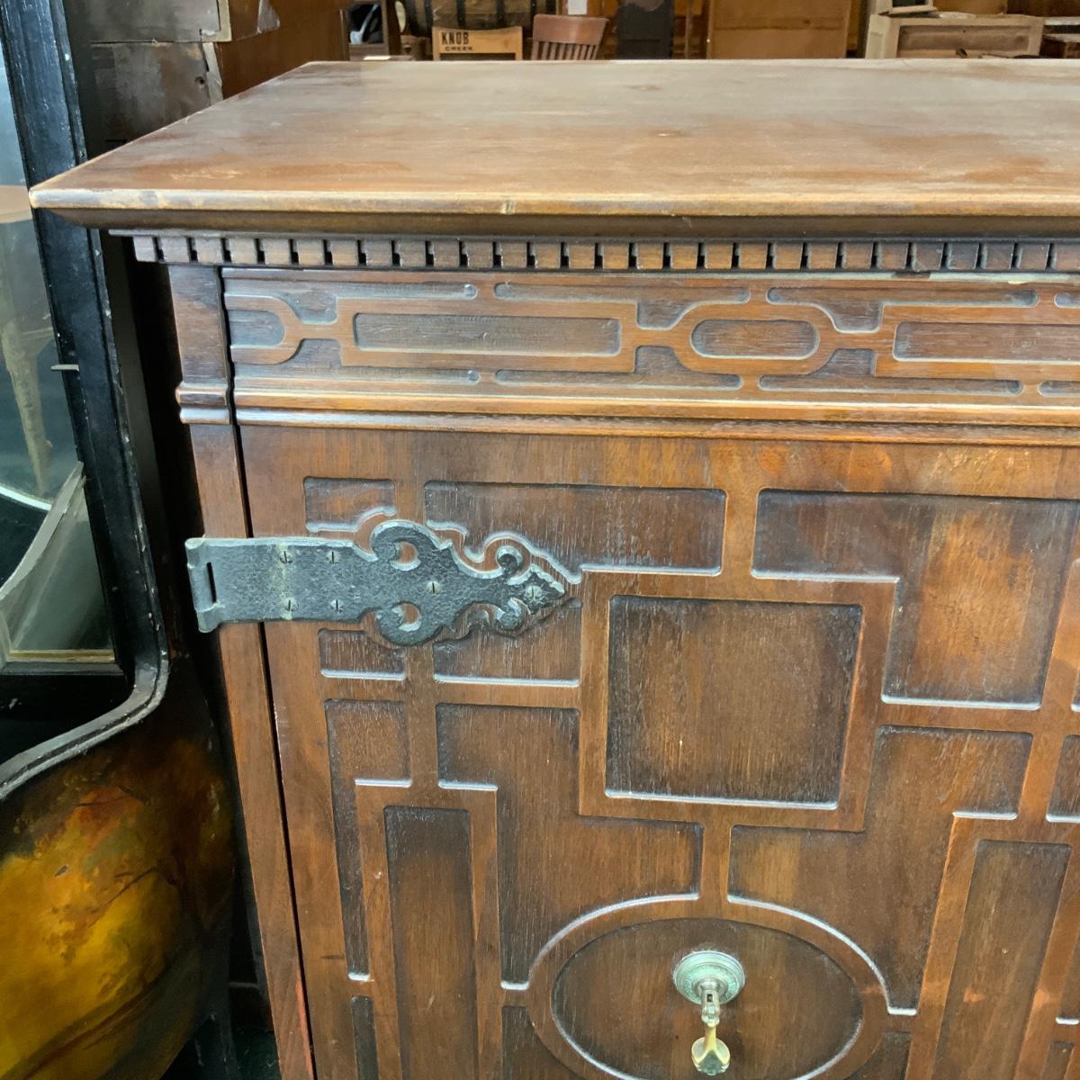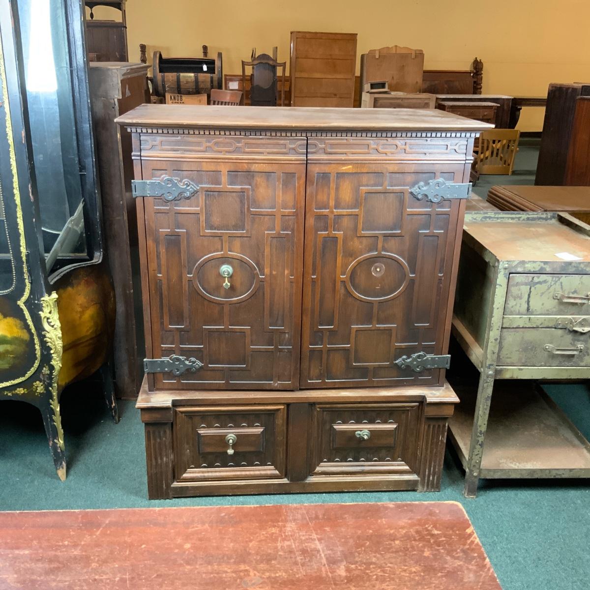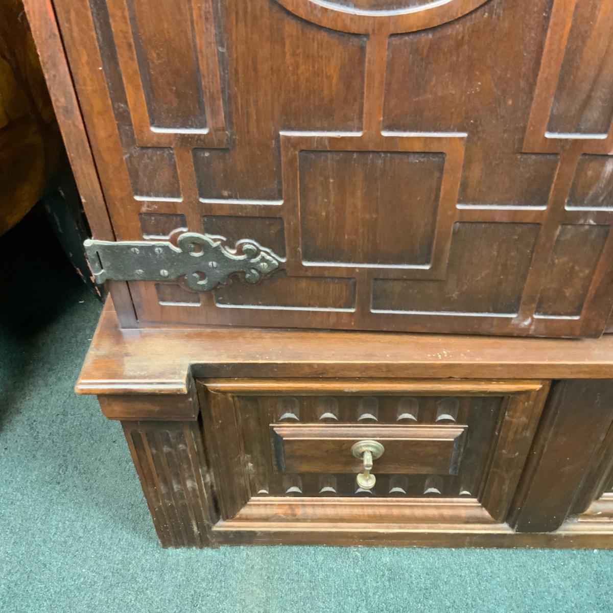 Attractive Electrola Radio Cabinet with excellent design. //::\\ Please see photos for details and condition. No attempt has been made to hide any imperfections. All items listed in this auction are warehouse items, and need to be cleaned. A majority of the items need restoration as well. All items are sold AS IS and WITHOUT GUARANTEE. If you are uncertain about an item, DO NOT BID. Due to the nature of this online auction in-person inspection is HIGHLY recommended. All Sales are FINAL. Pick Up Times are FIRM. Please confirm with your own schedule that you can pick up in the scheduled times listed in the Terms and Conditions. Any questions please message the auctioneer. DO NOT Contact The Harp Gallery.