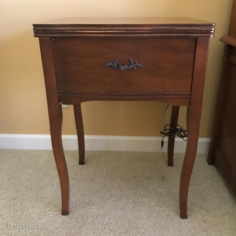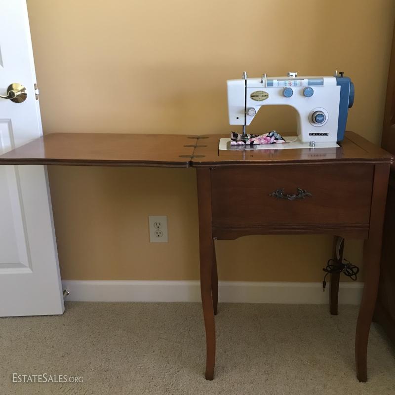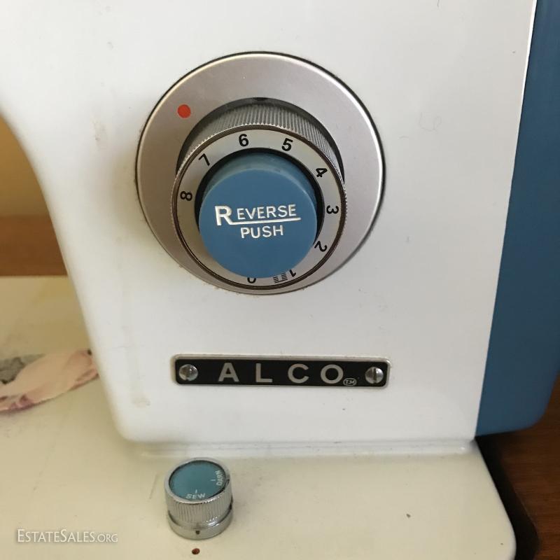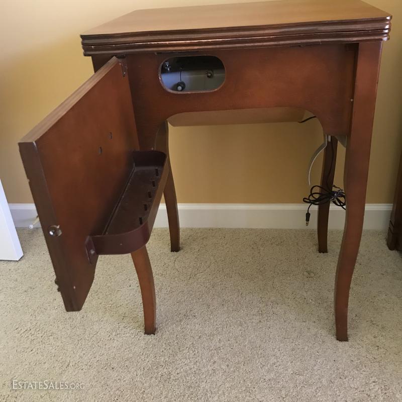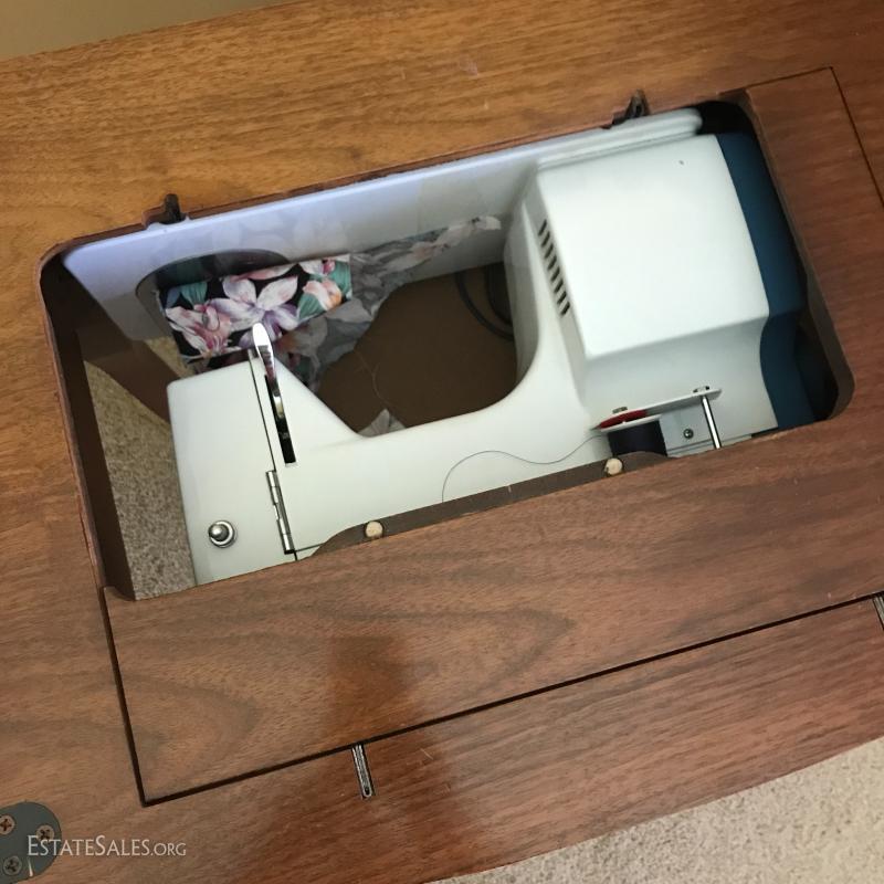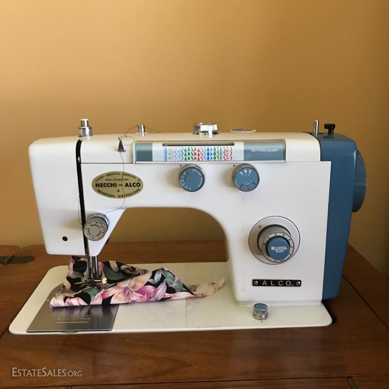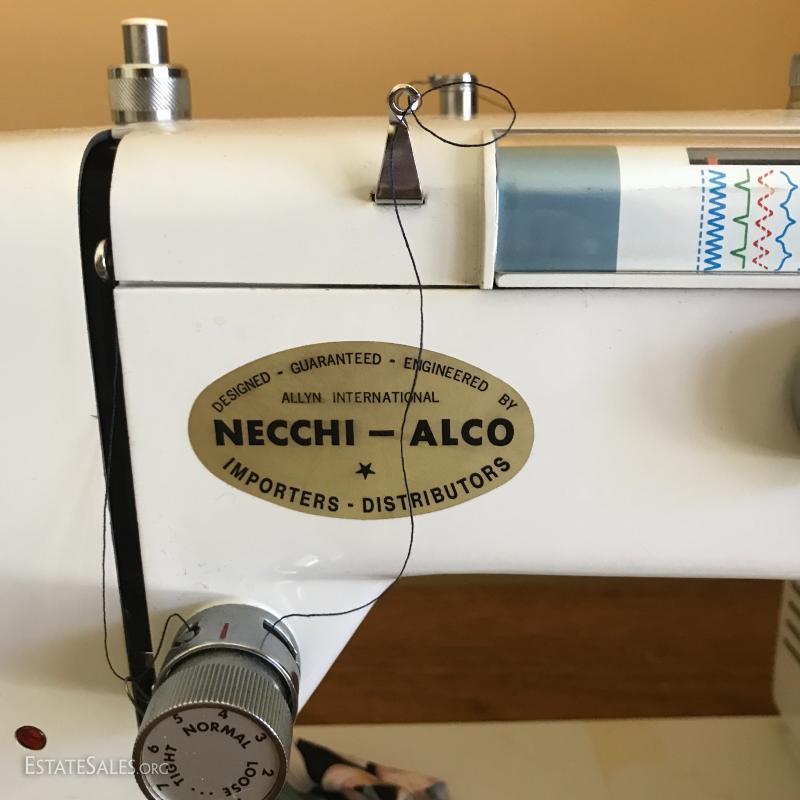 Necchi - Alco, model 6900 sewing machine & wood cabinet with Rotary attachments.